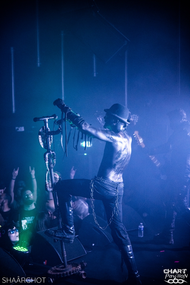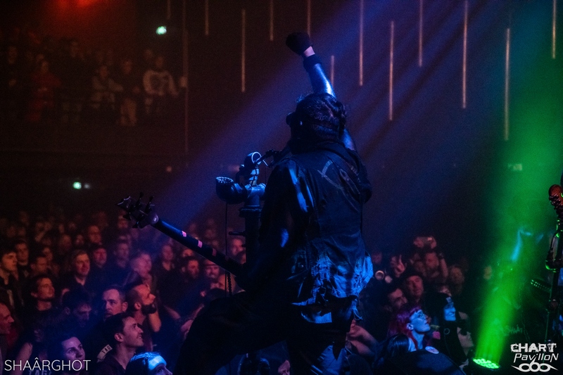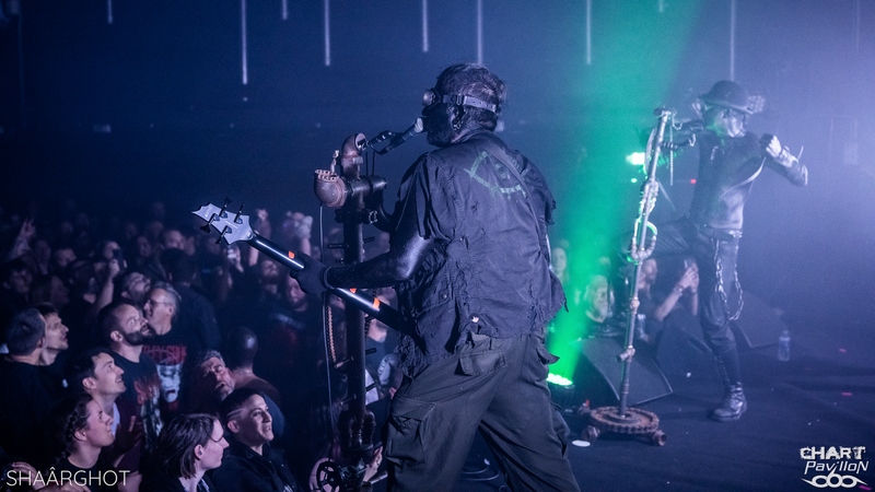 SHAÂRGHOT est de retour à Lyon et on s'en réjouit. Le combo parisien d'indus a fait un sacré bout de chemin depuis son premier album « Vol.I » en 2015. Il faut admettre que l'indus a sa place en France et SHAÂRGHOT a pris l'opportunité d'enfoncer le clou. Oui mais pour se distinguer, sans marcher sur les plate bandes des voisins il faut du travail et SHAÂRGHOT a accompli quelque chose qui à mon sens a tout pour que cela fonctionne auprès du public. A travers sa musique, ses clips et sa mise en scène, la combo a fourni quelque chose de rare. La sauce a pris et on retrouve désormais des fans qui arrivent costumés, dans l'esprit du groupe. C'est quelque chose d'assez peu commun pour être signalé. La « shadow army » est en train de prendre ses positions, ce qui commence à dire long sur l'impact que le groupe a sur les esprits. Et à titre personnel, je mesure ce soir les avancées du groupe que je n'avais pu voir en concert qu'une seule fois dans le bar du Ninkasi Kao en 2018. L'écart est impressionnant. Le groupe était à l'époque franchement intéressant et prometteur. Il est devenu aujourd'hui une vraie tête d'affiche. Tout dans ce concert est à la hauteur. Les effets de lumières sont impeccables. Le groupe se donne à fond et le résultat est là. Il ne manque plus que la sortie d'un prochain album pour SHAÂRGHOT s'impose définitivement comme une valeur sûre de la scène française. Et puisqu'on parle de valeur sure, on fait rapidement le lien avec les LES TAMBOURS DU BRONX qui depuis plus de 35 ans écument les scènes nationales et internationales. On attend là aussi un nouvel album dans un futur très proche qui sera la suite du fameux « W.O.M.P » sorti en 2018. Mais par chance, nous avons droit un bel aperçu ce soir avec pas moins de 7 morceaux. Cela donne un show bien renouvelé par rapport à ce que le groupe nous proposait sur ses dernières tournées tout en retrouvant quelques incontournables comme le medley SEPULTURA « Refuse/Resist, Roots Bloody Roots, Territory », « Mirage Eternel », la reprise de ROB ZOMBIE « Dragula » et bien d'autres choses. Les nouveaux morceaux viennent s'imbriquer dans cet ensemble apportant une nouvelle touche à ce set. On sent que le groupe a profité de son expérience tirée de son set metal pour travailler ses nouvelles compositions. On sent la maturité et le travail qui en résultent même si bien entendu tout cela devra se confirmer sur l'album. Je n'en doute pas étant donné le résultat de ce concert. LES TAMBOURS DU BRONX forment un bloc sans pareil qui crée une belle onde de choc et amènent des personnes que je n'ai pas l'habitude de voir dans le mosh pit. En guise d'apéritif avant la sortie de l'album tout cela est plus que prometteur. On glisse doucement vers la V2 de « W.O.M.P. » et le public de ce concert s'en est bien rendu compte en venant remplir la jauge du Ninkasi Kao pour une soirée d'anthologie pour bien commencer le week-end. On a là deux groupes, deux belles têtes d'affiche qui ce soir n'avaient à nous vendre que la meilleure des soirées et la promesse de très bons concerts à venir en leurs compagnies. |