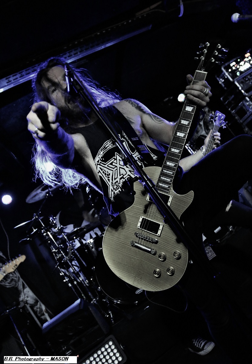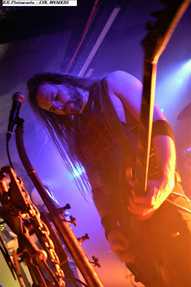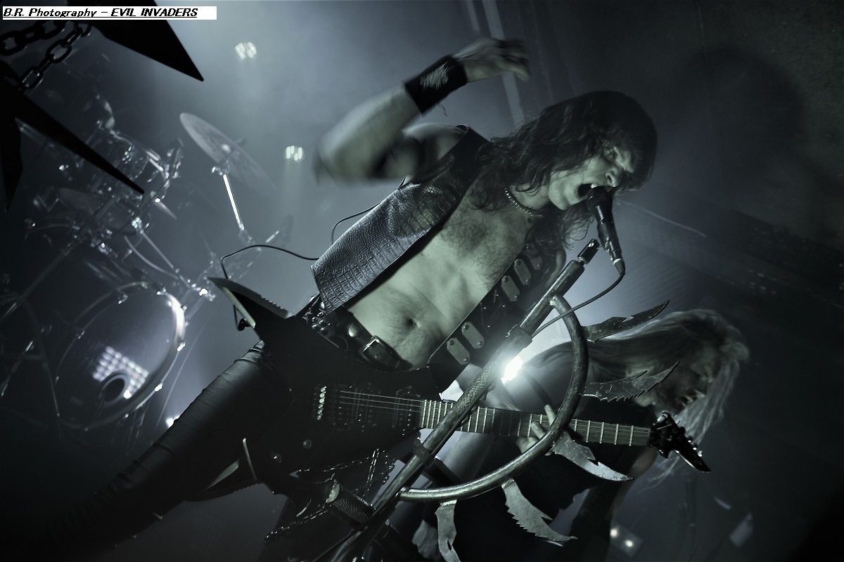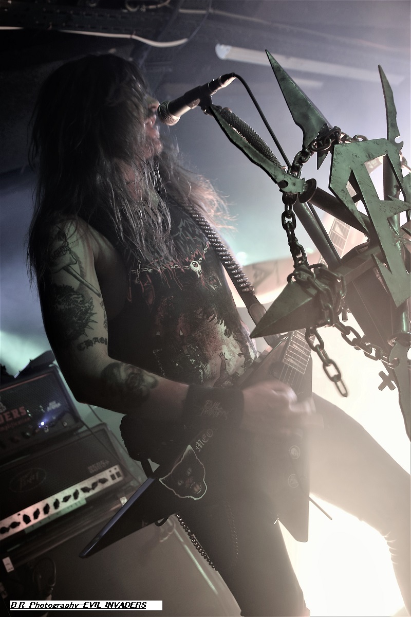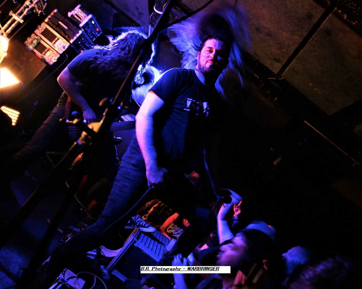 Mais, ce n'est pas possible, l'affiche nous présente un groupe de première partie qui nous colle au plafond dès les premiers titres, aargh ! Cette formation se nomme MASON, un combo de Melbourne en Australie. Mason nous envoie son thrash old-school qui se situe entre les Allemands de Kreator et les ricains de Testament, idéal pour nous mettre illico dans l'ambiance de la soirée qui s'annonce bien agitée. Avec deux albums sous leurs bras, « Warhead » (2013) et Impervious » (2017), plus un troisième à venir en souscription, les kangourous (voyez-les sauter sur scène) ont de la ressource, à suivre donc ! Les Belges de SCHIZOPHRENIA se présentent ensuite à nous et le moins que l'on puisse dire, c'est qu'ils ont la frite (facile celle-là). Avec eux nous naviguons dans une tempête thrash/death. Ils nous offrent notamment en live les titres de leur album de 2022 'Recollection of the Insane » et, en Février de cette année, ils n'ont pu s’empêcher de se faire plaisir avec l'enregistrement de « Chants of The Abyss », album de reprises de leurs influences (Slayer, Morbid Angel, Judas Priest, Misfits, Exodus et GBH). Et ce soir c'est au public de Lyon qu'ils font plaisir avec un set qui déchire dans tous les sens du terme, quelle claque ! Second groupe Belge de la soirée, et pas des moindres, voici maintenant EVIL INVADERS qui émerge des fumigènes et des lights aveuglants avec un décorum scénique métallique en diable. Présenté par la chronique comme l'un des meilleurs groupes de speed/heavy/thrash qui va sûrement assurer la relève des « dinosaures » de la Bay Area, voyons voir. Et preuve en est faite ce soir avec une prestation tout simplement énorme, nous ne savons plus où donner de la tête et où diriger nos yeux, quant aux conduits auditifs on n’en parle pas, c'est du costaud en puissance et qualité. Ca « riffe » de tous les côtés, ça vous enfume dans le bon sens du terme et leur set va provoquer le défoulement intense dans la fosse. Avec déjà un EP et trois albums nos Belges préférés sont déjà placé la barre bien haute dans le style. Et en live, je ne vous raconte pas, après tout vous n'aviez qu'à être là ce soir là pour vous en faire une idée précise, dans la chaleur et la sueur du Rock n'Eat qui n'en revient toujours pas ! Mais ne partez pas car maintenant les thrashers « ricains » de WARBRINGER vont tout bonnement retourner la salle de concert à l'aide d'un show d'une rare intensité, brutal évidemment, sans concession, du pur thrash à la sauce Californienne bien épicée comme du tabasco. Et effectivement, ça tabasse dès le départ des hostilités malgré quelques mid-tempo bien placés. Et l'on en prend plein la « g...le » vous m'avez comprit. C'est que nos amis des USA savent varier les plaisirs en y introduisant des mélodies vicieuses ici ou là à déguster comme ,un vieux bourbon de contrebande. Alors, depuis sa formation en 2004 ce groupe n'à fait que s'améliorer au travers de rythmiques insensées mais néanmoins techniques, et donc ce soir ce fus géant tout simplement. Géant, c'est donc le qualificatif de cette soirée qui nous a complètement retourné la cervelle (et le cou). Résultat des courses, un coup de cœur est a attribuer à ce concert c'est sans appel. Merci à tous, organisateurs, Rock n'Eat et public bien sûr ! |