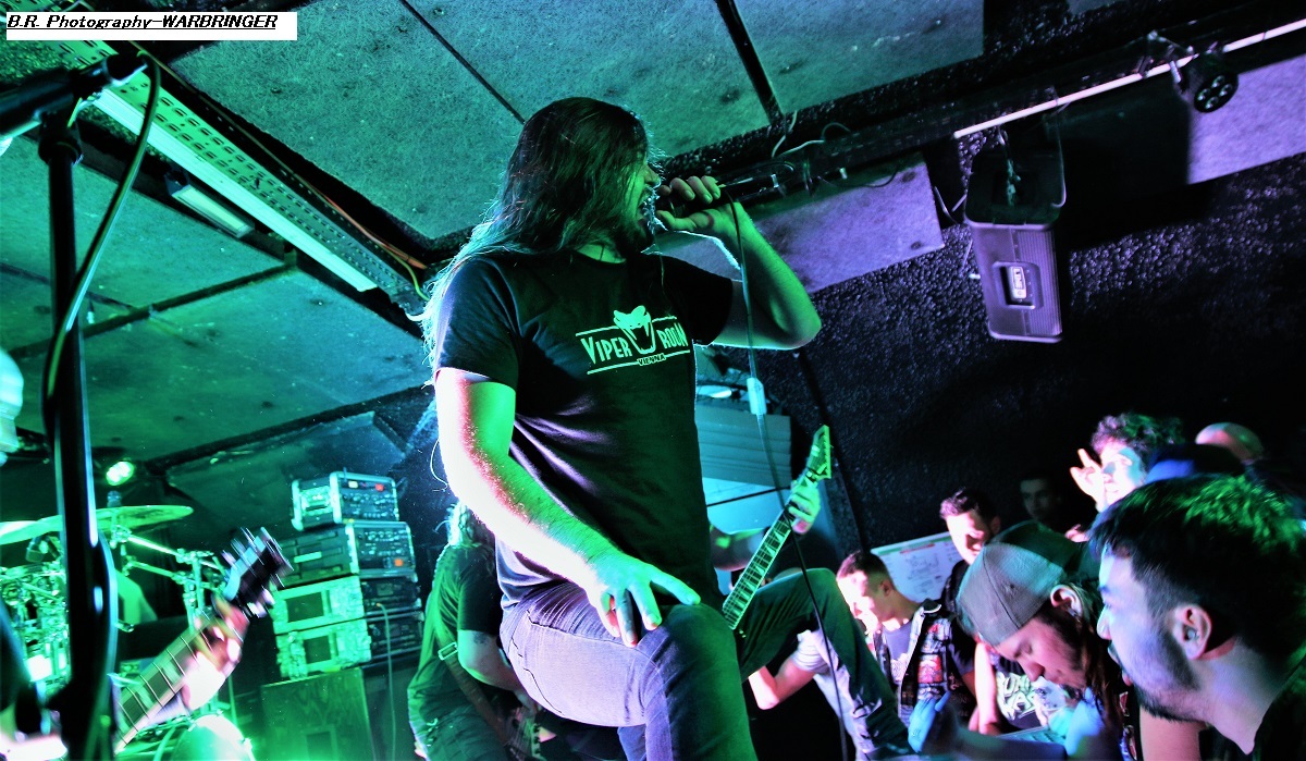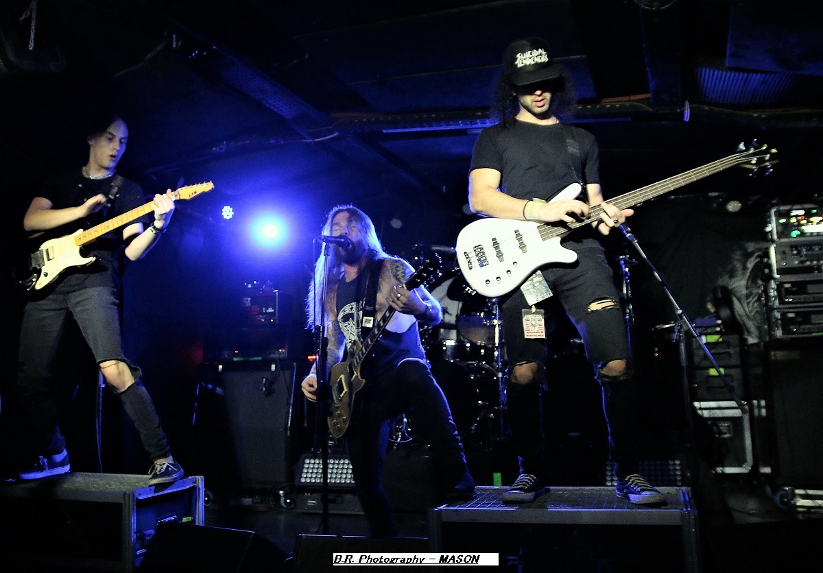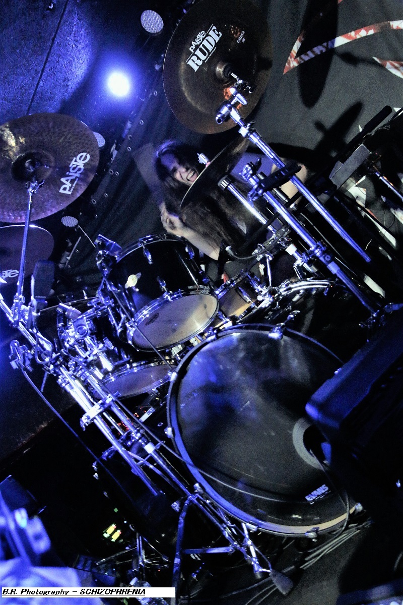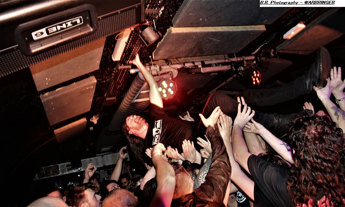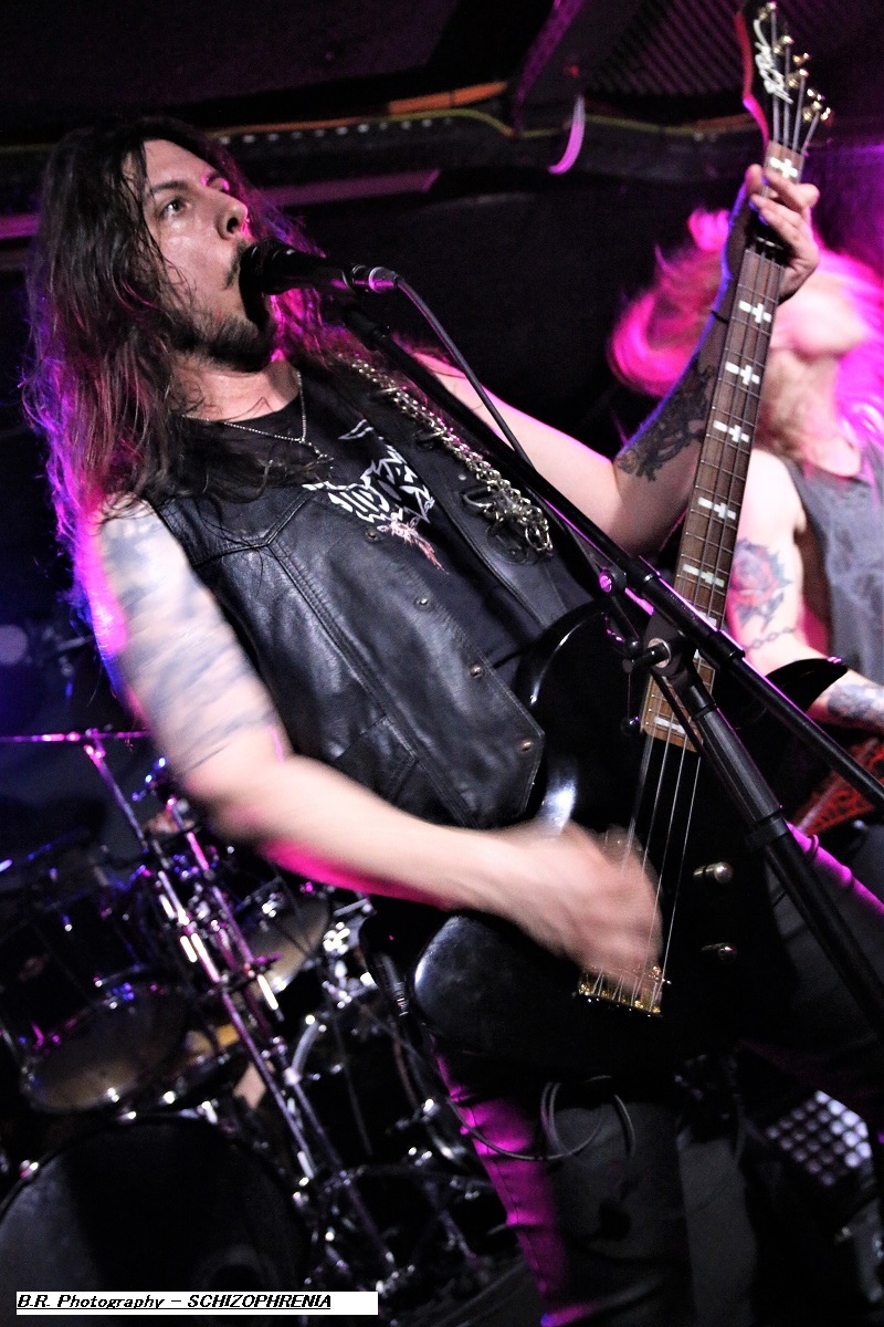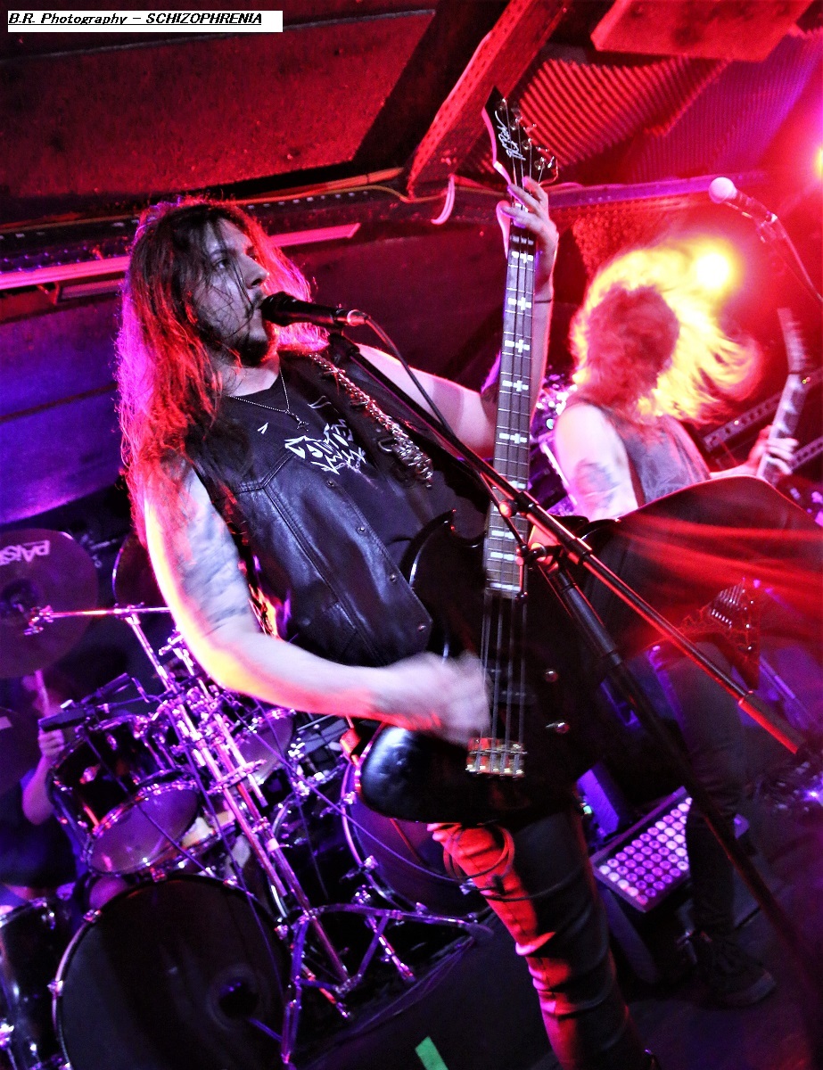 Mais, ce n'est pas possible, l'affiche nous présente un groupe de première partie qui nous colle au plafond dès les premiers titres, aargh ! Cette formation se nomme MASON, un combo de Melbourne en Australie. Mason nous envoie son thrash old-school qui se situe entre les Allemands de Kreator et les ricains de Testament, idéal pour nous mettre illico dans l'ambiance de la soirée qui s'annonce bien agitée. Avec deux albums sous leurs bras, « Warhead » (2013) et Impervious » (2017), plus un troisième à venir en souscription, les kangourous (voyez-les sauter sur scène) ont de la ressource, à suivre donc ! Les Belges de SCHIZOPHRENIA se présentent ensuite à nous et le moins que l'on puisse dire, c'est qu'ils ont la frite (facile celle-là). Avec eux nous naviguons dans une tempête thrash/death. Ils nous offrent notamment en live les titres de leur album de 2022 'Recollection of the Insane » et, en Février de cette année, ils n'ont pu s’empêcher de se faire plaisir avec l'enregistrement de « Chants of The Abyss », album de reprises de leurs influences (Slayer, Morbid Angel, Judas Priest, Misfits, Exodus et GBH). Et ce soir c'est au public de Lyon qu'ils font plaisir avec un set qui déchire dans tous les sens du terme, quelle claque ! Second groupe Belge de la soirée, et pas des moindres, voici maintenant EVIL INVADERS qui émerge des fumigènes et des lights aveuglants avec un décorum scénique métallique en diable. Présenté par la chronique comme l'un des meilleurs groupes de speed/heavy/thrash qui va sûrement assurer la relève des « dinosaures » de la Bay Area, voyons voir. Et preuve en est faite ce soir avec une prestation tout simplement énorme, nous ne savons plus où donner de la tête et où diriger nos yeux, quant aux conduits auditifs on n’en parle pas, c'est du costaud en puissance et qualité. Ca « riffe » de tous les côtés, ça vous enfume dans le bon sens du terme et leur set va provoquer le défoulement intense dans la fosse. Avec déjà un EP et trois albums nos Belges préférés sont déjà placé la barre bien haute dans le style. Et en live, je ne vous raconte pas, après tout vous n'aviez qu'à être là ce soir là pour vous en faire une idée précise, dans la chaleur et la sueur du Rock n'Eat qui n'en revient toujours pas ! Mais ne partez pas car maintenant les thrashers « ricains » de WARBRINGER vont tout bonnement retourner la salle de concert à l'aide d'un show d'une rare intensité, brutal évidemment, sans concession, du pur thrash à la sauce Californienne bien épicée comme du tabasco. Et effectivement, ça tabasse dès le départ des hostilités malgré quelques mid-tempo bien placés. Et l'on en prend plein la « g...le » vous m'avez comprit. C'est que nos amis des USA savent varier les plaisirs en y introduisant des mélodies vicieuses ici ou là à déguster comme ,un vieux bourbon de contrebande. Alors, depuis sa formation en 2004 ce groupe n'à fait que s'améliorer au travers de rythmiques insensées mais néanmoins techniques, et donc ce soir ce fus géant tout simplement. Géant, c'est donc le qualificatif de cette soirée qui nous a complètement retourné la cervelle (et le cou). Résultat des courses, un coup de cœur est a attribuer à ce concert c'est sans appel. Merci à tous, organisateurs, Rock n'Eat et public bien sûr ! |