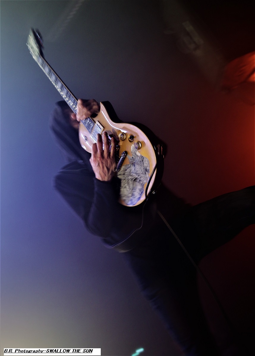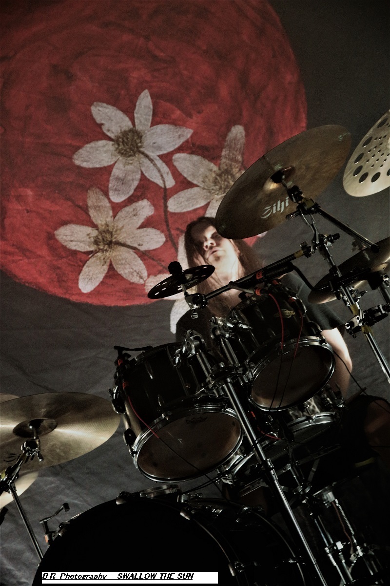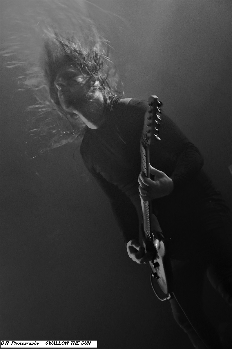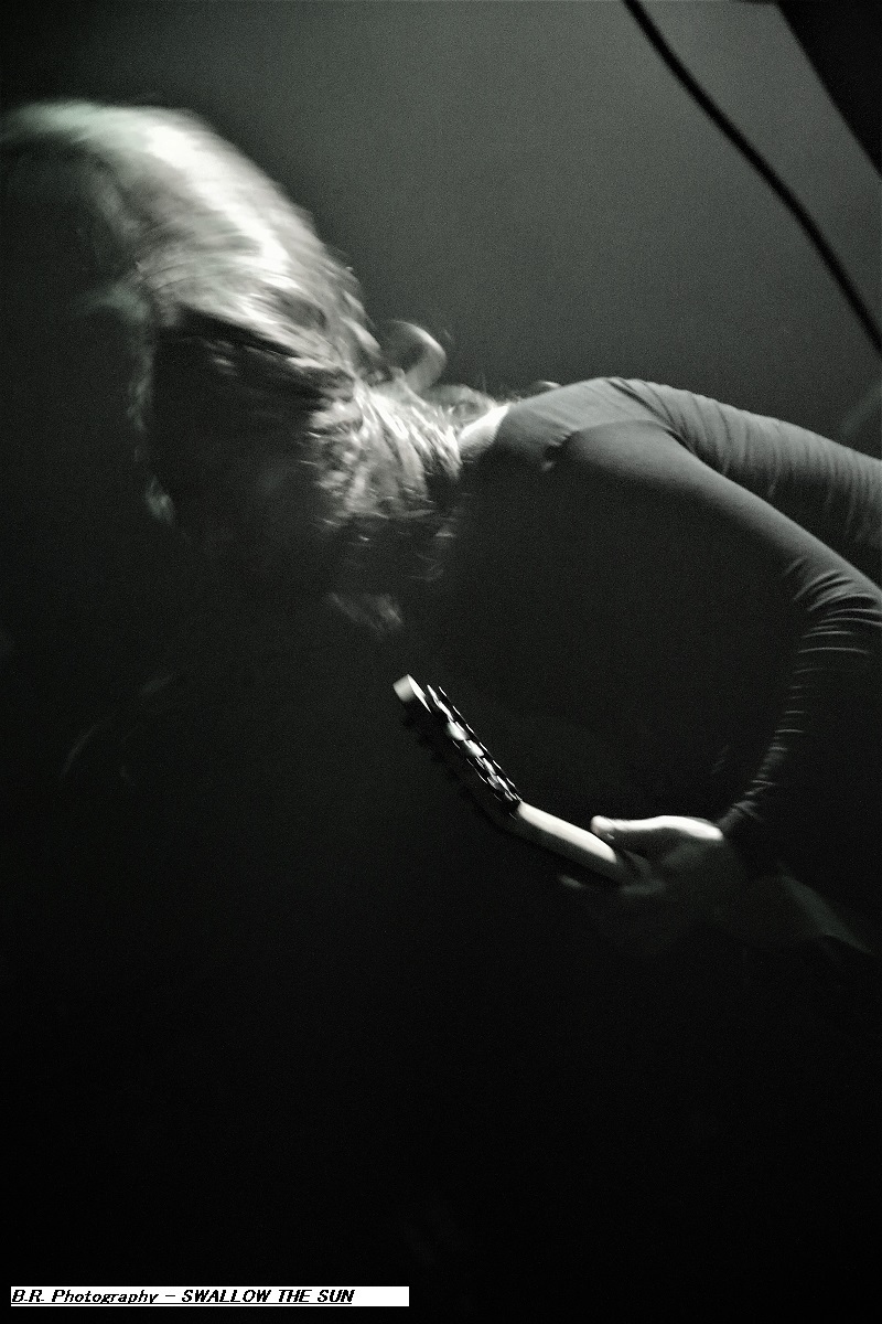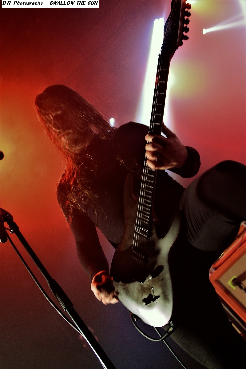 Ce sont les Romains de SHORES OF NULL qui grimpent sur scène en premier dès 19heures 30 afin de nous inoculer dans la tête leur doom gothique à l'aide de titres issus de leur déjà imposante discographie dont leur dernier album de 2023 intitulé « The Loss of Beauty ». Leur musique se veut variée et se trouve un peu éloignée du doom pur et dur. Ici la rythmique est souvent puissante avec un David Straccione qui mène la danse entre chant clair et growlé. Ambiance gothique en fait lorgnant parfois vers le black. Bref, le groupe vaut le détour surtout en live, on aime. Les Suédois d'AVATARIUM prennent la suite devant nous et avec eux le doom se transforme souvent en rock, voire en blues sans se dénaturer pour autant. Les impressionnants « tricotages » guitaristiques, avec le soutien de claviers, laissent quand même la part belle à la chanteuse qui possède une voix sublime, remarquable et remarquée, une chanteuse qui aurait facilement sa place dans une carrière blues et soul. Une Jennie-Ann Smith qui n'hésite pas à user de sa guitare acoustique entre des parties carrément heavy-metal voire black. Bravo pour les mélodies accrocheuses, les rythmes inattendus pour un doom vraiment varié je le répète. Alors, avez-vous aimé leur prestation ? Si oui écoutez chez vous tranquillement leur dernier album en date « Death Where is your Sting » afin de répondre à ma question ! Tout devient plus sombre dans tous les sens du terme avec la venue sur les planches de SWALLOW THE SUN et ses musiciens encapuchonnés. Dans cette lumière blafarde, les Finlandais sont venus afin de nous présenter « Moonflowers » leur dernière œuvre discographique faisant suite à de nombreux enregistrements effectués depuis leur première démo de 2023 « Out of this Gloomy Light ». Alors, pas de joyeusetés au menu musical, ici ce n'est que tristesse et mélancolie dans une noirceur épaisse à couper au couteau, mais ça vous le saviez déjà ! Une lourdeur imposante nous tombe dessus comme une chape de plomb. Mais une certaine rage sous-jacente et des explosions soudaines viennent perturber nos cerveaux pré-digérés Et immanquablement au travers de ce doom majestueux nous ressentons par moment l’essai de vieille mélopées stoner/sludge et même black-metal qui s'infiltrent dans cette lourdeur malade imposée par ce groupe venu du froid Nordique. Swallow The Sun représente donc un certain « must » pour les inconditionnels du doom noir comme de l'encre, contrat remplit ce soir ! Merci don à SLH Productions pour nous avoir proposé ce plateau de choix, merci aux trois formations en lice, et merci bien sûr à notre « vieux » CCO Jean-Pieere Lachaise, amen ! |