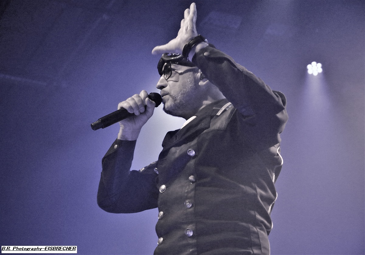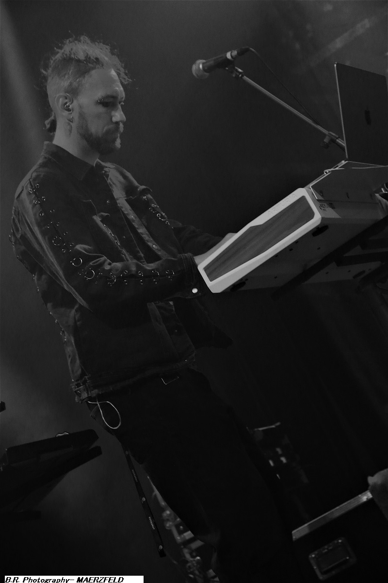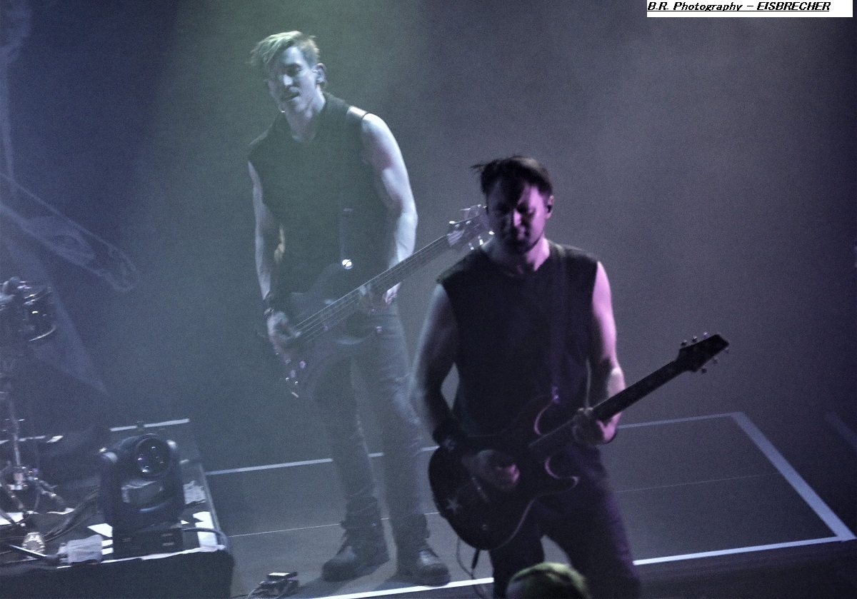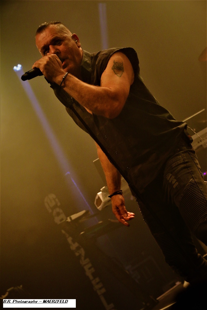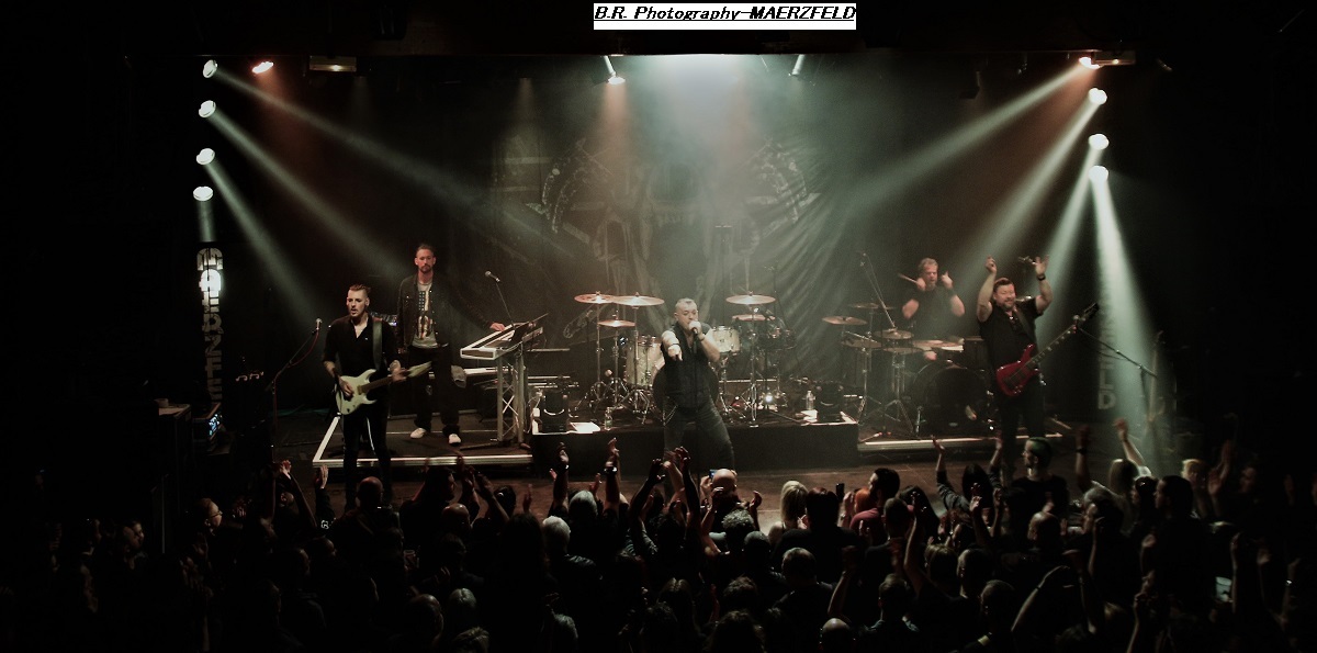 MAERZFELD lance en premier les débats de cette soirée qui s'annonce bien. Le groupe défend en live son nouvel album intitulé « Alles Anders » qui fait suite à « Zorn » paru en 2019. Pas de surprise avec ces rockeurs Allemands qui tiennent la scène en pros du metal indus avec le frontman Heli qui dirige le tout entre mid-tempos et envois musclés avec ce côté martial bien senti.. Maerzfeld marque les esprits depuis sa création en 2009 en digne héritier d'un certain Rammstein. Alors au final nous avons dégusté un bon set de 45 minutes bien apprécié par le public présent et nous avons bien aimé leurs riffs et leurs rythmiques sans concession accompagnant des textes inspirés du quotidien. C'est au tour maintenant d'apprécier le tant attendu combo teuton EISBRECHER qui depuis 2003 joui d'une grosse popularité en Europe et même aux Etats-Unis. Leur tournée « Eis Over Europe 20 th Anniversaire » reportée trois fois (covid oblige) nous,propose en live des titres de leur 8ème album intitulé « Liebe Macht Monster », mais pas que. Eisbrecher est donc une formation Allemande bien connue au sein de la vague « Neue Deutsche Art », formation fondée par des anciens de Megaherz, voilà pour les présentations. Et ce soir sur scène ici à Lyon, ça donne quoi ? Eh bien, avec notamment un leader charismatique (et très bavard,et bout en train NDLR) au travers de lights parfois glacés on nous envoie du lourd, du plombé, du metal indus dans toute sa splendeur quoi ! L'atmosphère créée par le combo est épaisse donc palpable, mais aussi percutante que ce soit au niveau de l'éclairage et au niveau du son métallurgique en diable. Inutile de vous préciser que les fans inconditionnels qui remplissent la salle sont aux anges se mouvant dans ce déluge sonore binaire qui vous glace parfois le sang. Bref cette démonstration de metal indus à l'allemande vibrera encore longtemps dans nos cages à miel c'est certain. Merci Eisbrecher vous revenez quand vous voulez ! Remercions également Maerzfeld dont la musique a marqué les esprits et merci à SLH Productions pour cette soirée hors du temps et de l'espace dans ce bon vieux CCO qui va déménager...plus loin prochainement. |