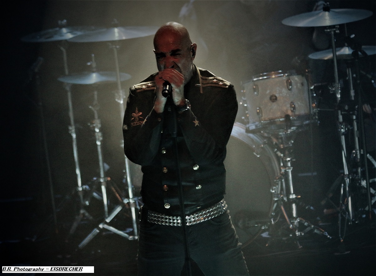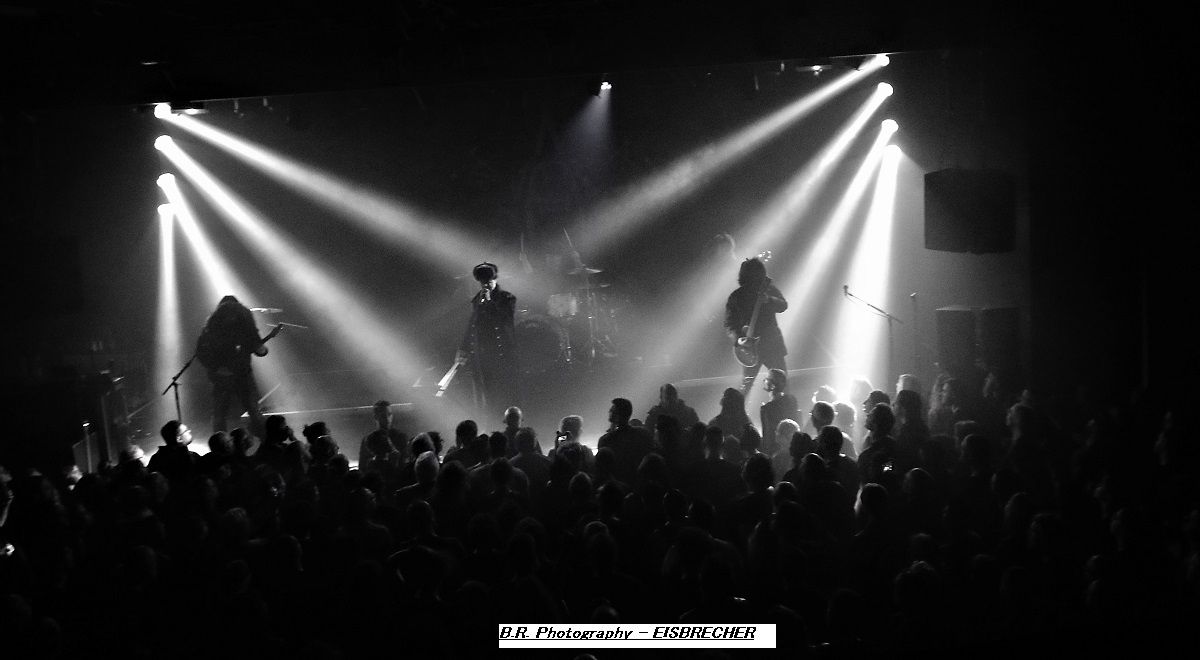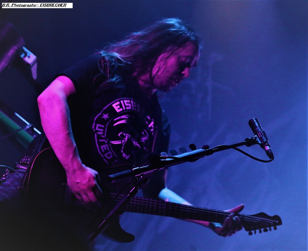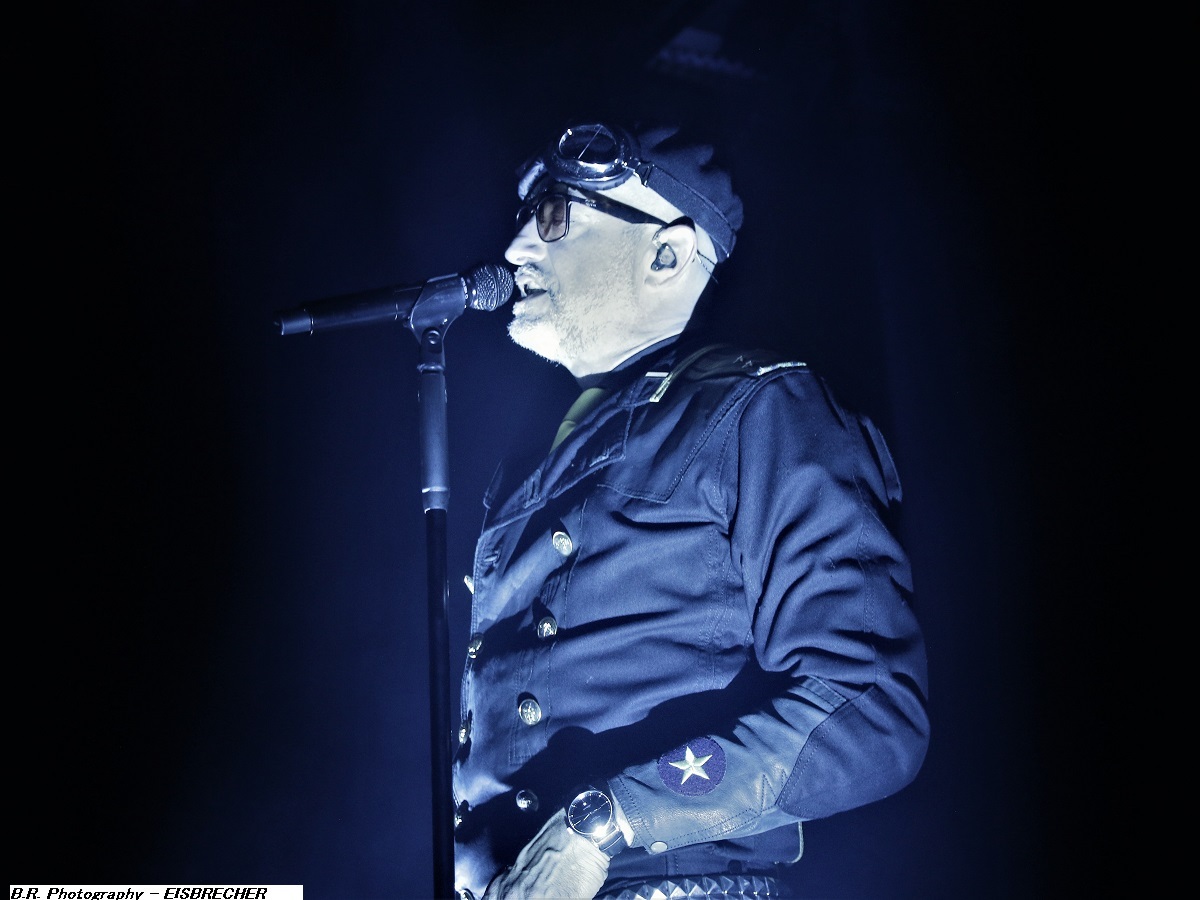 MAERZFELD lance en premier les débats de cette soirée qui s'annonce bien. Le groupe défend en live son nouvel album intitulé « Alles Anders » qui fait suite à « Zorn » paru en 2019. Pas de surprise avec ces rockeurs Allemands qui tiennent la scène en pros du metal indus avec le frontman Heli qui dirige le tout entre mid-tempos et envois musclés avec ce côté martial bien senti.. Maerzfeld marque les esprits depuis sa création en 2009 en digne héritier d'un certain Rammstein. Alors au final nous avons dégusté un bon set de 45 minutes bien apprécié par le public présent et nous avons bien aimé leurs riffs et leurs rythmiques sans concession accompagnant des textes inspirés du quotidien. C'est au tour maintenant d'apprécier le tant attendu combo teuton EISBRECHER qui depuis 2003 joui d'une grosse popularité en Europe et même aux Etats-Unis. Leur tournée « Eis Over Europe 20 th Anniversaire » reportée trois fois (covid oblige) nous,propose en live des titres de leur 8ème album intitulé « Liebe Macht Monster », mais pas que. Eisbrecher est donc une formation Allemande bien connue au sein de la vague « Neue Deutsche Art », formation fondée par des anciens de Megaherz, voilà pour les présentations. Et ce soir sur scène ici à Lyon, ça donne quoi ? Eh bien, avec notamment un leader charismatique (et très bavard,et bout en train NDLR) au travers de lights parfois glacés on nous envoie du lourd, du plombé, du metal indus dans toute sa splendeur quoi ! L'atmosphère créée par le combo est épaisse donc palpable, mais aussi percutante que ce soit au niveau de l'éclairage et au niveau du son métallurgique en diable. Inutile de vous préciser que les fans inconditionnels qui remplissent la salle sont aux anges se mouvant dans ce déluge sonore binaire qui vous glace parfois le sang. Bref cette démonstration de metal indus à l'allemande vibrera encore longtemps dans nos cages à miel c'est certain. Merci Eisbrecher vous revenez quand vous voulez ! Remercions également Maerzfeld dont la musique a marqué les esprits et merci à SLH Productions pour cette soirée hors du temps et de l'espace dans ce bon vieux CCO qui va déménager...plus loin prochainement. |