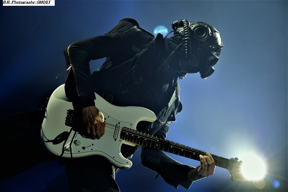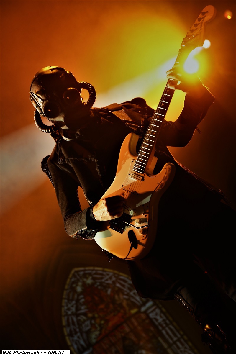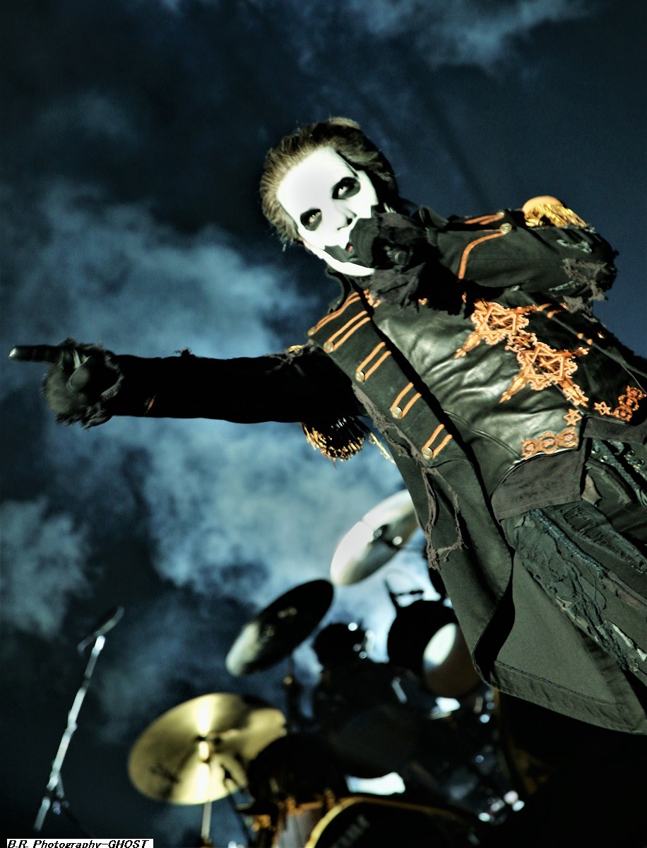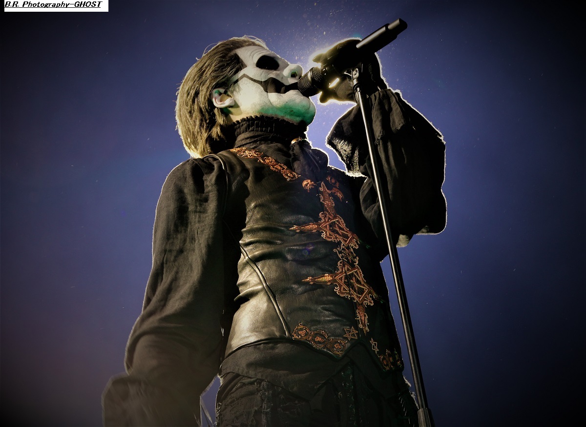 Et c'est un peu avant 20 heures que le concert/spectacle débute avec le quatuor de Vancouver Spiritbox et sa chanteuse Courtney LaPlante quelque peu survoltée sur scène. Ici ce ne sont pas les growls de Jinger pour la gente féminine du metal mais des voix claires que l'on supporte (ou pas) Alors, metalcore/pop ou pop/metalcore, à vous de choisir car il y a quand même du bon parmi le moins bon. En tous cas Spiritbox ne laisse pas indifférent, affaire à suivre donc ! Les dernières minutes d'attente avant 21 heures, l'heure fatidique où le rideau du théâtre de GHOST doit tomber, sont ponctuées par des cris stridents venant de la fosse, aie, vite mes bouchons d'oreilles ! Et le rideau tombe découvrant une scène impressionnante bardée de lights avec l'apparition du maître de cérémonie entouré de ses « nameless ghouls ». C'est donc parti pour presque 2 heures d'une cérémonie de l'église du diable avec pour débuter le titre « Kaisarion » et en milieu de set le fameux « Jesus He Knows Me » (reprise de Genesis). Oui, une reprise tirée du tout récent EP « Phantomime » où Tobias se fait plaisir en exorcisant ses vieux démons de jeunesse. Bien sûr nous aurons droit à des titres du dernier album en date « Impera » qui justifie la tournée actuelle du groupe. La machine infernale est bien huilée entre passages hard/heavy et sucrerie plus pop. Pop, le mot est lâché et le débat entre métalleux de tous poil est lui aussi lancé. En ce qui me concerne je retiens la grandiloquence de la mise en scène avec ses décors et le « dress code » des musiciens qui évoluent dans un show à l'américaine. Alors, Ghost c'est du macabre ? Yes, mais avec un côté « soft » que le groupe ne connaissait pas à ses débuts où il était classé plutôt doom/acide/occulte entre par exemple Black Sabbath et St-Vitus, vous voyez ! Nous allons donc dire que niveau spectacle on en prend plein les mirettes et plein les oreilles, avec juste ce qu'il faut pour faire frissonner un public aux anges (au diable pardon) A vous de juger, mais je suis sûr que tout le monde ici présent ce soir est reparti heureux à la fin du show, et c'est tant mieux ! Merci donc aux organisateurs de la tournée et merci à Eldorado pour le pass photo accordé à Pavillon666, belle soirée en tous cas ! SET-LIST : Kaisarion,Rats, Faith, Spillways, Cirice, Hunter's Moon, Jesus He Knows Me, Rituak, Call Me Little Sunshine, Con Clavi Con Dio, Watcher in the Sky, Year Zero, He is, Miasma, Mary on a Cross, Mummy Dust, Respite on the Spitafileds, Kiss the Go-Goat, Dance Macabre, Square Hammer. |