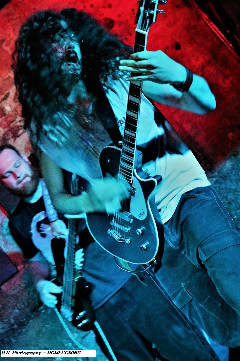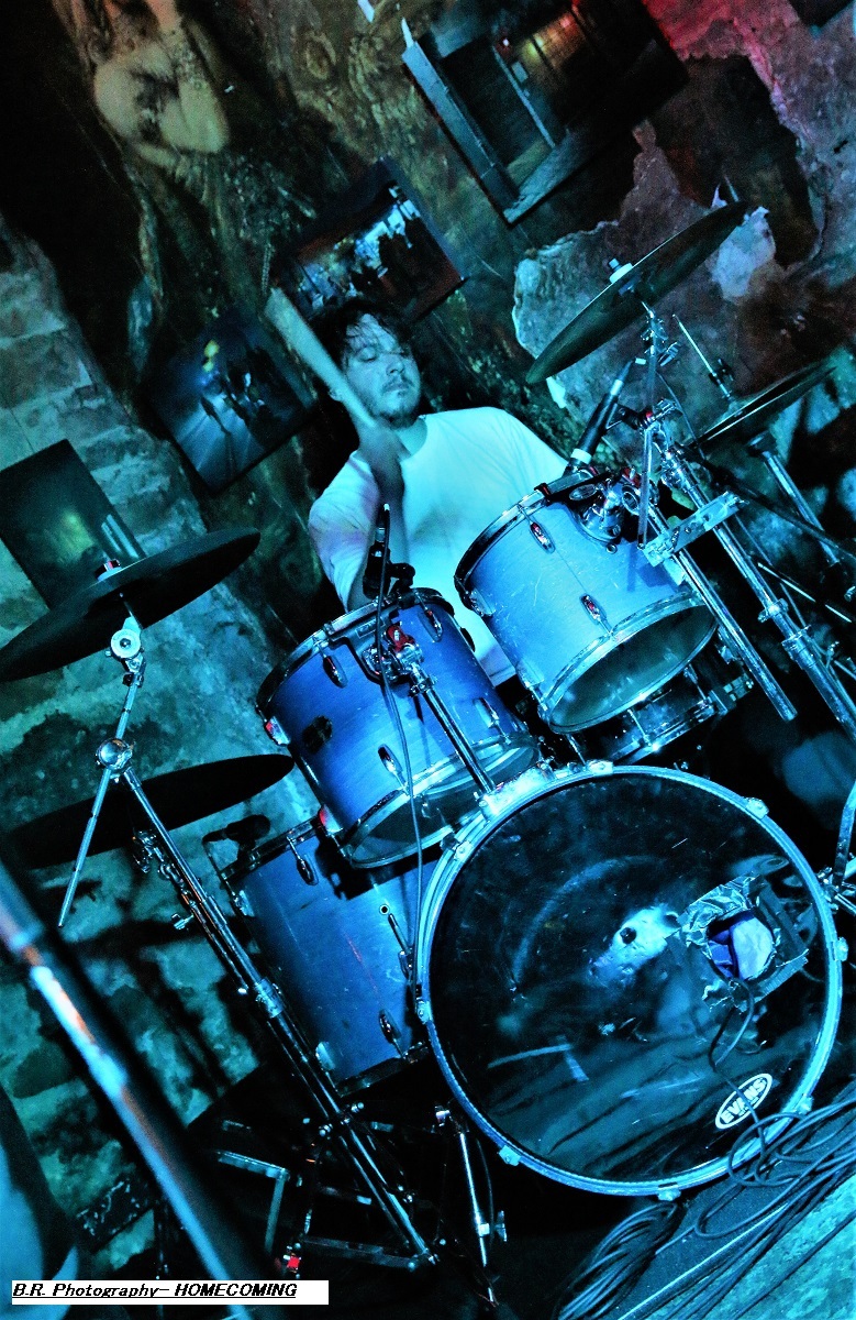 Alors attention, ça démarre fort avec le jeune trio de rock alternatif flirtant avec le metal, j'ai nommé BORDERLINE et ses titres phares « Jump » et « Gravity 6 », La batterie puissante et bien mise en avant donne le « la » pour des riffs percutants et le chanteur s'envoie en l'air régulièrement avec basse, ou sans ! L'énergie de tous les instants et le groove sont imparables, inutile de résister avec Borderline vous avez des fourmis dans les jambes. Du coup le pit entre en mouvements et ce jusqu'à la fin du set, jump ! Bravo les gars, un avenir prometteur se dessine devant vous, continuez comme ça ! A peine le temps de s'hydrater et de prendre l'air devant le bar que nos amis de Lutèce HOMECOMING branchent leurs instruments et envoient le son. Leur son, car en effet le quatuor sait varier les plaisirs dans un registre metal assez alambiqué et surprenant. Ici l'on crée des atmosphères différentes pour chaque composition. Vous croyez au départ emprunter la voie du prog, mais soudain les musiciens brouillent les pistes en nous balançant dans les cages à miel des envois binaires puissants biberonnés au rock n'roll. Ces envois qui nous déstabilisent mais qui nous aident à rentrer dans leur jeu aux tricotages guitaristiques de qualité. De retour d'une tournée dans les pays de l'Est afin de faire la promotion de leur album « LP 01 », Homecoming est donc venu pour la première fois à Lyon et ce fus bien car leur post-quelque chose sort du lot et nous l'avons apprécié à sa juste valeur, amen ! Merci au Farmer, merci aux deux formations en lice, la soirée fut donc chaude (re) dans tous les sens du terme ! |