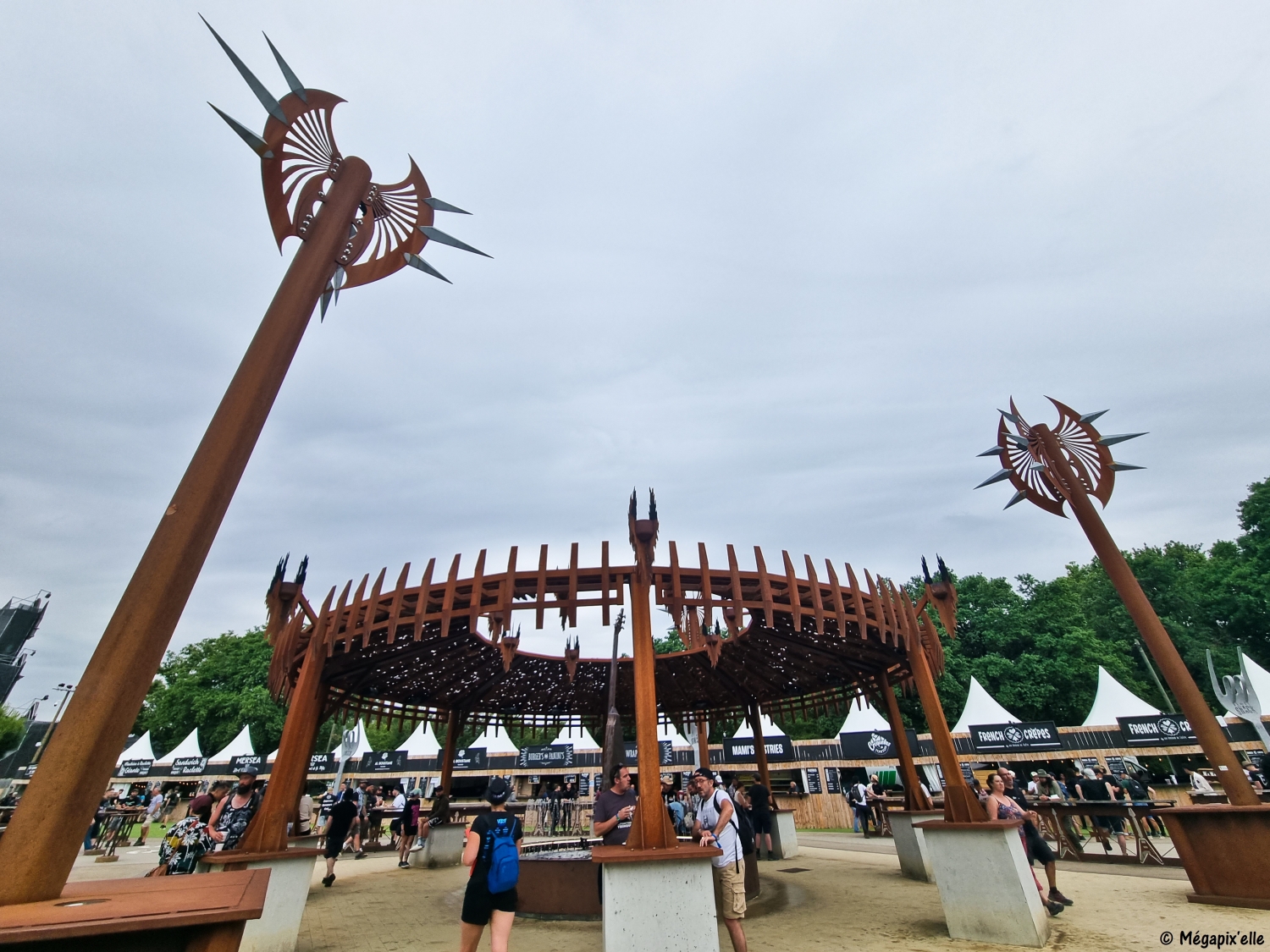 Alors, oui, c’est comparable à un parc d’attraction sur le thème du métal et c’est cool, ça nous permet d’avoir plein de choses à voir quand on va d’une scène à l’autre ou quand on va se restaurer ou boire et pisser après, c’est très sympa, en fait, l’immersion est totale, le cerveau déconnecte complètement. Et non, le Hellfest n’est pas un festival élitiste de musique extrême de toute façon, ce n’est dit ni n’écrit nulle part, c’est populaire, voilà !