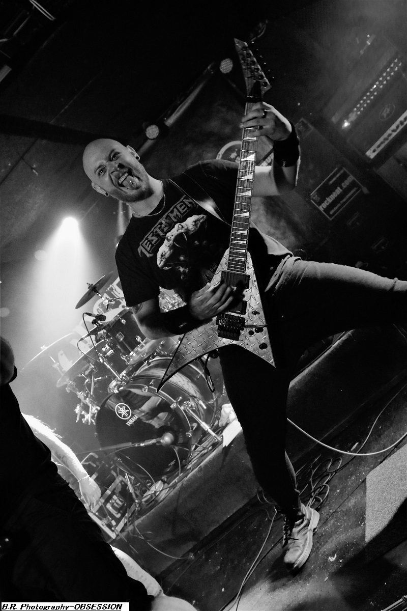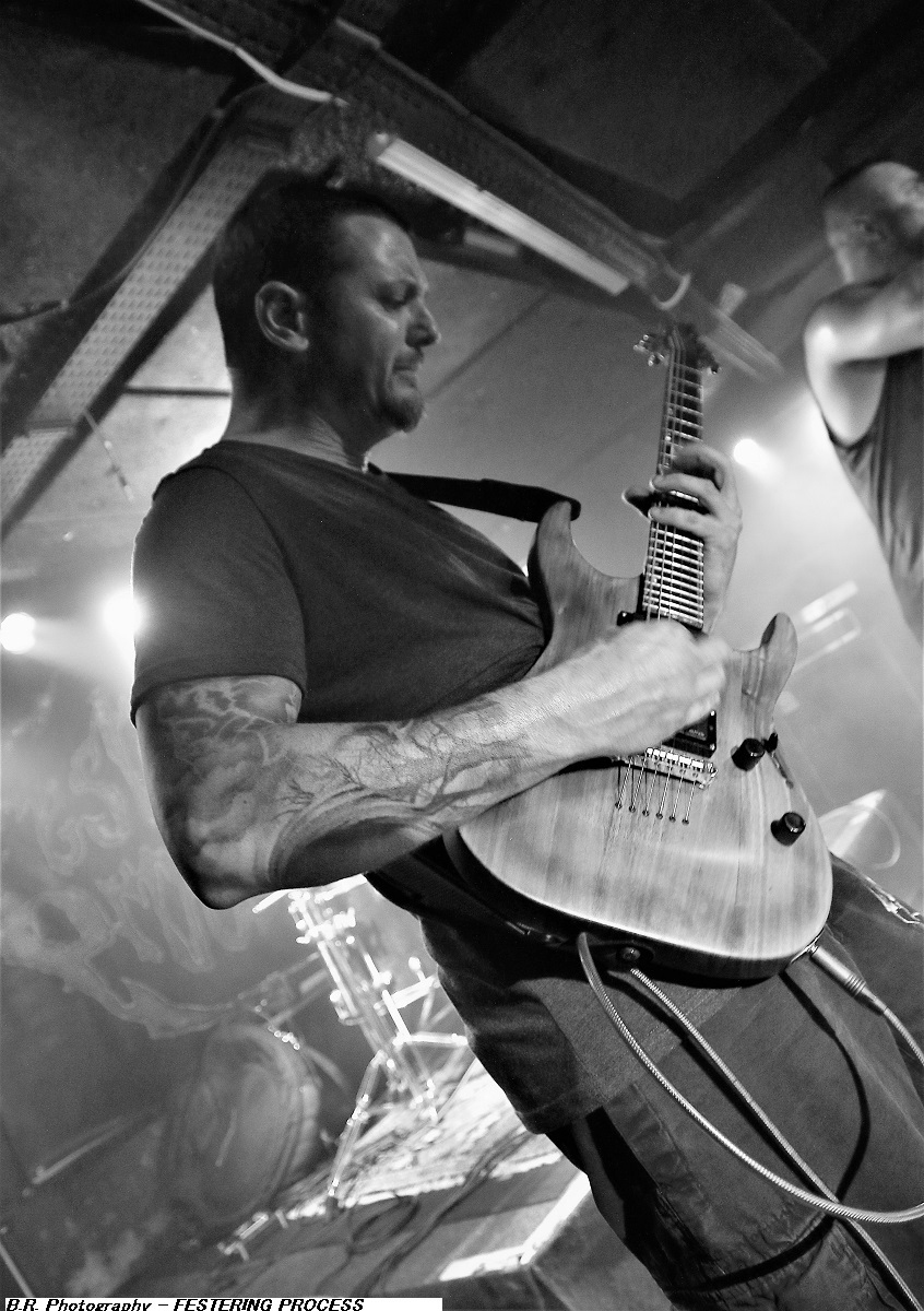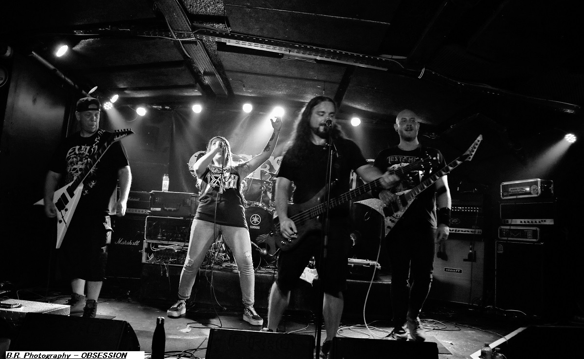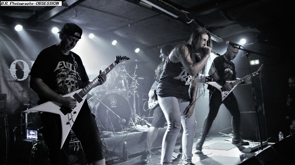 Tout a bien commencé avec les Francs-Comtois d'OBSESSION qui reviennent démolir les scènes de par chez nous avec un line-up remodelé bien senti où Lisa bien dans ses « growls' et Cédric bien dans ses fûts nous ont prouvé qu'il y a une vie après la mort. Un Obsession qui revient donc plus fort que jamais et qui ce soir nous a donné une « kecla dans la chetron » comme dirait mon ami le keupon fou. Excellente prestation donc devant un public aux anges (au diable pardon) et nous avons apprécié leur set incroyablement puissant et « riffu » amen ! Les haut-savoyards de SHAYTAN ont oublié de nous rapporter le reblochon de chez eux, mais ils ne sont pas venus à Lyon ce, soir pour enfiler des perles. Nouveau batteur qui démolit ses « drums », carré et puissant, chanteur bassiste très démonstratif, bien présent dans la noirceur d'un death/black caverneux, guitaristes à l'aise pour créer des climats sournois et vicieux, bref quelle belle équipe qui a donné le meilleur d'elle-même ce soir pour une set-list bien choisie et convaincante, on aime. Alors que dire ? Tout simplement vous revenez quand vous voulez afin de nous faire bouillir la matière grise, re-amen ! Les Isérois de FESTERING PROCESS nous présentaient ce soir leur nouveau « méfait », un EP intitulé « Folkgore » ah bon ! Second EP donc pour ce quatuor qui navigue sur les eaux troubles et putrides sortie de l'abattoir d'à côté. Alors en live ce soir on nous colle au plafond d'entrée de jeu avec du lourd ponctué de breaks inattendus et de démarrages et envolées décapants dans notre cervelle. D'ailleurs comme dirait mon ami Julien de Benighted, ily y a peut-être de la cervelle contre les murs, à vérifier ! Festering Process avec brutalité et technicité ne nous fais pas de cadeau et ce soir en guest sur un titre nous avons eu droit aux « gruicks » de Diégo hurleur chez Deadfuck. Du tout bon donc dans une ambiance caniculaire comme cette semaine à Lyon. Festering Process nous a encore une fois concubinaire et ce groupe devrait aller de plus en plus loin dans le style, si style il y a, re-re-amen ! Belle soirée agitée dans un Rock n'Eat qui démarre la nouvelle saison avec ce concert qui fait du bien à nous métalleux invétérés. Alors merci à tous pour ce moment hors du temps ! |