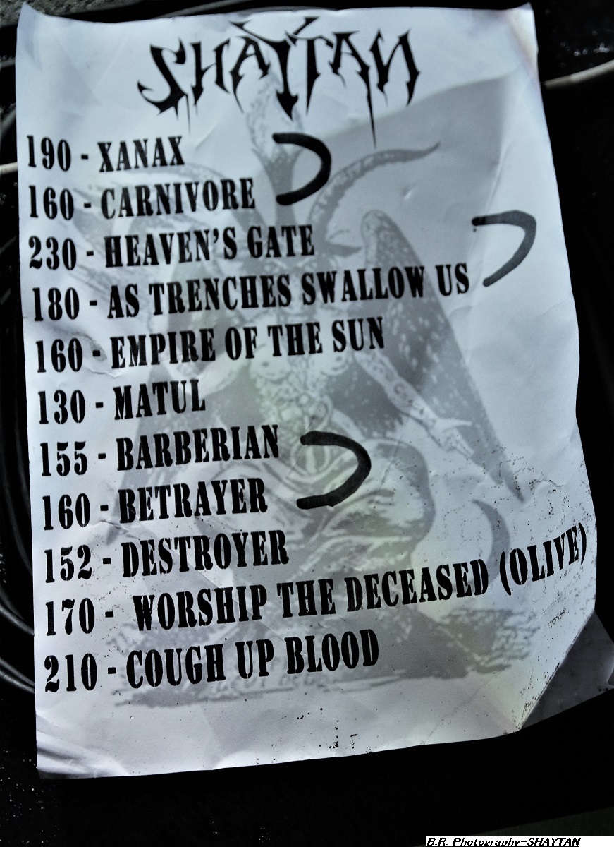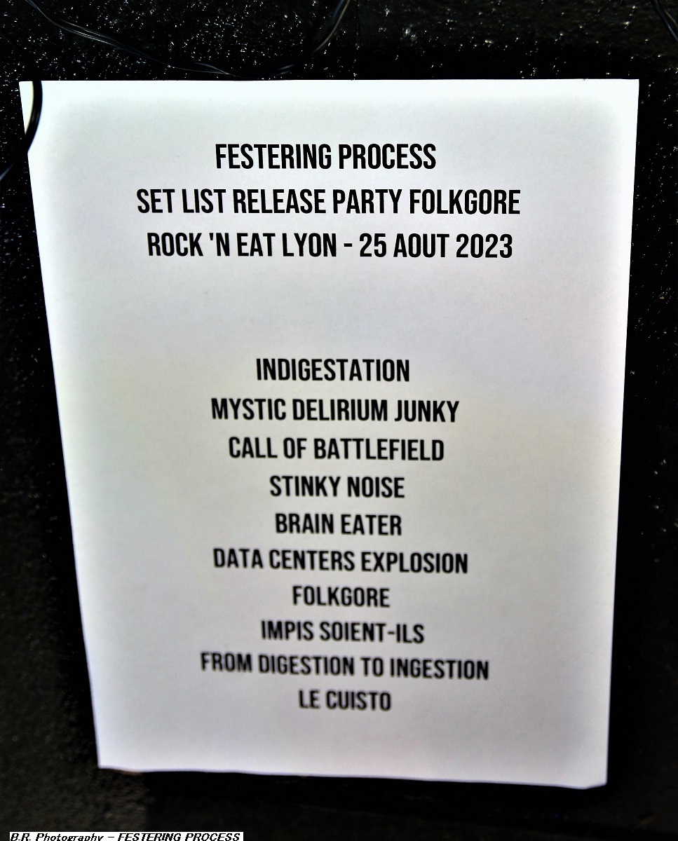 Aargh ! Quelle rentrée mes amis au Rock n'Eat de Lyon avec sur les planches ce vendredi 25 Août 2023 du brutal de chez brutal. Nous avons dégusté dans tous les sens du terme avec du TDG, traduisez du thrahs/death, du death/black et du grind/death gore proposé par FESTERING PROCESS, SHAYTAN et OBSESSION, combos qui ne font pas dans la dentelle vous l'aurez compris.