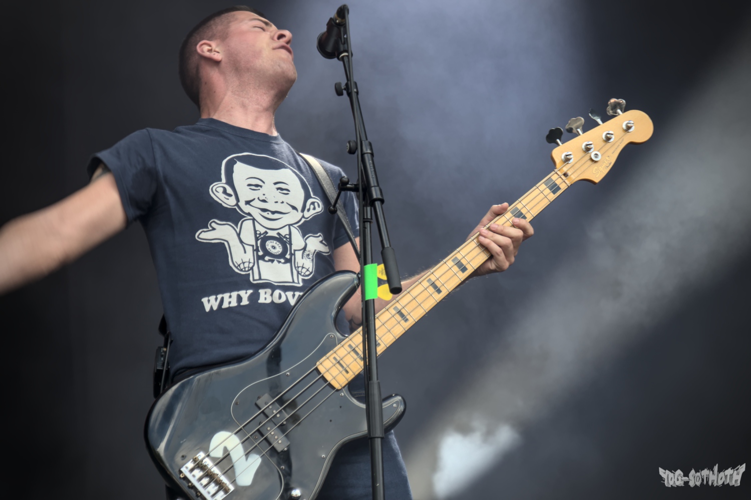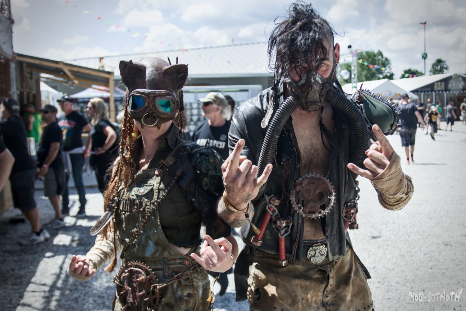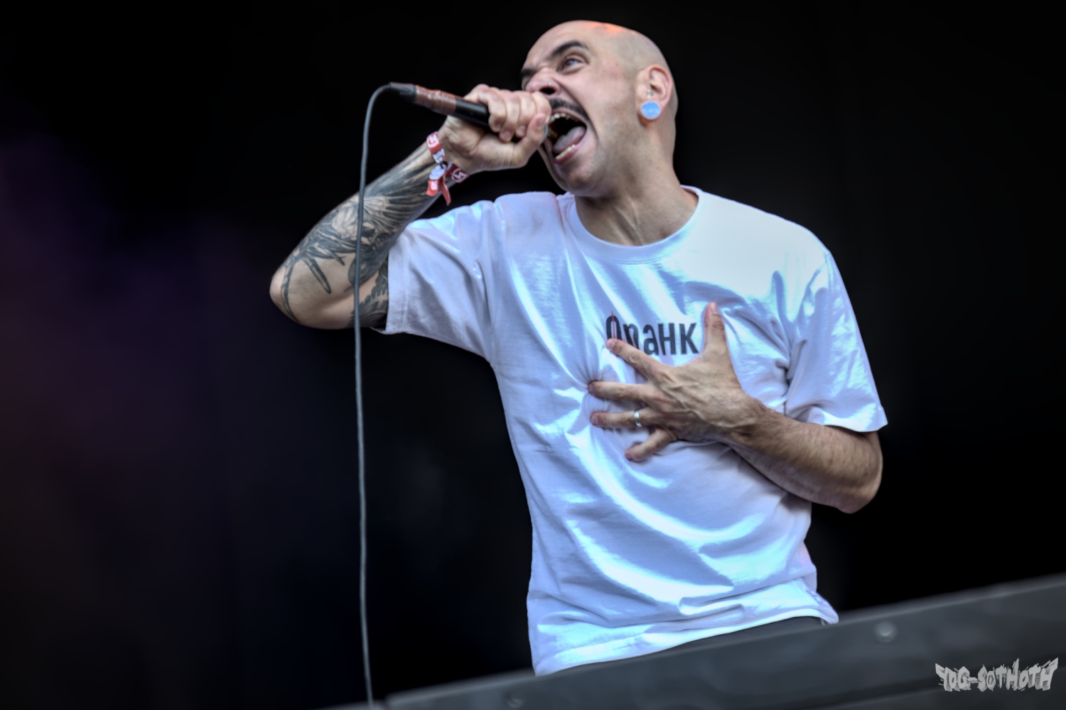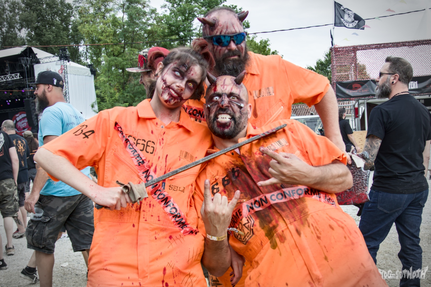 11h30 : Ce sont les Lyonnais de Buy Jupiter qui montent sur scène les premiers en cette fin de matinée, bien décidés à réveiller le public déjà présent. Créé en 2012 ce groupe distille un death métal progressif légèrement teinté de punkcore, un son vraiment particulier qui n’appartient qu’a eux. Le public accroche d’entrée, PY le frontman fait à lui seul le show escaladant les enceintes, les piliers de scène, il n’hésite pas à franchir les crash barrières et descendre pour évoluer directement dans le pit au milieu des mosheurs ravis. Le bassiste, le batteur et les deux guitaristes s’en donnent également à cœur joie pour nous livrer un set intense de 30mn à vous ronger le cortex préfrontal. 12h30 : Beyon The Styx formation de Tour frappe fort dès le premier titre. Les gaillards ne sont pas venus pour ramasser des pâquerettes mais plutôt pour nous foutre une bonne branlée à grand coups de rythmiques assassines et de vocal corrosif, ils nous balancent un métal hardcore plutôt groovy extrêmement efficace et ravageur, le chanteur est vraiment habité par sa musique et ses paroles. Leur set finira par faire émerger les plus comateux ! 13h30 : Changement complet de décor avec Krav Boca, un collectif d’artistes français, grec et marocain formé à Toulouse en 2014. Ils nous présentent un spectacle complet avec deux performeurs sur une musique plutôt orientée Punk Rap Métal hyper rythmé et festif, on en prend plein les yeux et les oreilles, tout cela n’est pas sans évoquer les shows de Punish Yourself, Ludwig Von 88 sur fond de Moscow Death Brigade. Un excellent moment et une très belle découverte. 14h40 : C’est au tour de Grade 2. Originaires L'île de Wight, les trois musiciens évoluent dans un style old-school mixant le punk Oï et Punk Rock Californien. Efficace et rythmé leur instru frénétique et leur compos variées vont entraîner le public dans des pogos et slams effrénés ça remue dans le pit, ça jump, un véritable tourbillon à tel point que le set passe à la vitesse de l’éclair. Dommage, on en aurait bien repris encore ! 15h50 : On reste dans le punk mais cette fois du punk celtique avec les Canadiens de The Real McKenzies qui mettent instantanément la fièvre au pit, une ambiance de fête s’installe et tout le monde se met à danser au son de la cornemuse et des riffs de guitare. Même si Paul McKenzie, fondateur et chanteur du groupe semble un peu fatigué derrière ses lunettes jaunes, il envoie le bois pendant tout le show pour la plus grande joie des festivaliers et slammeurs en liesse ! 17h00 Place au Hard rock Sudiste maintenant avec les fameux américains de Nashville Pussy. Le groupe se compose de Blaine Cartwright au chant et à la guitare, sa femme Ruyters Suys à la guitare, de l’excellente bassiste Bonnie Buitrago, ils sont accompagnés par un nouveau batteur, enfin nouveau dans le groupe depuis cette tournée européenne car il s’agit du talentueux Dusty Watson (Dick Dale, Agent Orange, Sonics, Supersuckers, Lita Ford, Rhino Bucket, Concrete Blonde, The Bellrays… et des bien d'autres) il connaît d’ailleurs très bien Bonnie Buitrago puissent qu’ils ont joué ensemble il y a bien longtemps dans son ancien groupe Bloodhook. C’est parti pour 45 mn d’un show incendiaire qui ne nous laisse pas une minute de répit, les titres se suivent à la vitesse d’un cheval au galop.Derrière les riffs ravageurs de Ruyter, la voix rauque et puissante de Blaine, les lignes de basse ensorcelées de Bonny et les rythmes effrénés de Dusty on ressent une véritable symbiose entre les 4 musiciens qui fait mouche à tous les titres et nous entraîne dans un véritable tornade de rock'n'roll fun, crasseux et bien burné. 18h15 Ce n’est pas aux sons des trompettes que les Walls of Jericho investissent la scène mais sous les acclamations du public prêt à faire tomber les murs. La charismatique frontwoman Candace Kucsulain donne d’entrée le tempo et c’est parti pour la boucherie, on se prend un TGV complet dans la tronche. Les titres s'enchaînent, tous plus puissants les uns les autres et c’est à présent un énorme nuage de poussière qui s’élève depuis le pit sous les pas des mosheurs. Candace arpente la scène de long en large tout en interagissant avec le public conquit, sa voix dévastatrice colle parfaitement au hardcore punk violent et énergique qu’envoie le groupe, les morceaux percutent à chaque fois. Ce sera certainement pour moi un des meilleurs moments de la journée. ------------------------------------------------------------------------------------------------------- MOONSPELL Le groupe portugais que j’ai eu l’occasion et le plaisir de suivre plusieurs fois est heureux de se produire au SYLAK. Cela se voit. Fondé en 1989, à l’origine groupe de metal gothique, parfois proche du black metal, plus souvent du death metal, avec Fernando Ribeiro au chant, leader de la formation, MOONSPELL aura conquis le public de Saint-Maurice. Le spectacle n’était pas que sur scène, mais aussi dans la fosse, on ne comptait pas les pogos et autres slams. L’intervention des Portugais aura duré 50 minutes (seulement !) Les Islandais de SOLSTAFIR sont moins connus. On les a vus en mars dernier au Ninkasi Kao de Lyon et même dans les cloîtres de Brou à Bourg-en-Bresse il y a plusieurs années. Ils évoluent dans un univers assez sombre, le chanteur est reconnaissable à sa voix légèrement rauque. Le public, intéressé mais pas déchaîné, aura, pour certains, découvert un groupe du Nord assez particulier mais plein de qualités et d’originalités. Une tournée en Allemagne est prévue pour l’automne qui s’annonce. Nous aurons maintenant, durant une heure, le plaisir de voir ou revoir l’un de mes groupes favoris, à savoir les Brésiliens de SEPULTURA. Je les ai vus cinq ou six fois, en France et en Allemagne. Fondé par les frères Cavalera en 1984, SEPULTURA est 