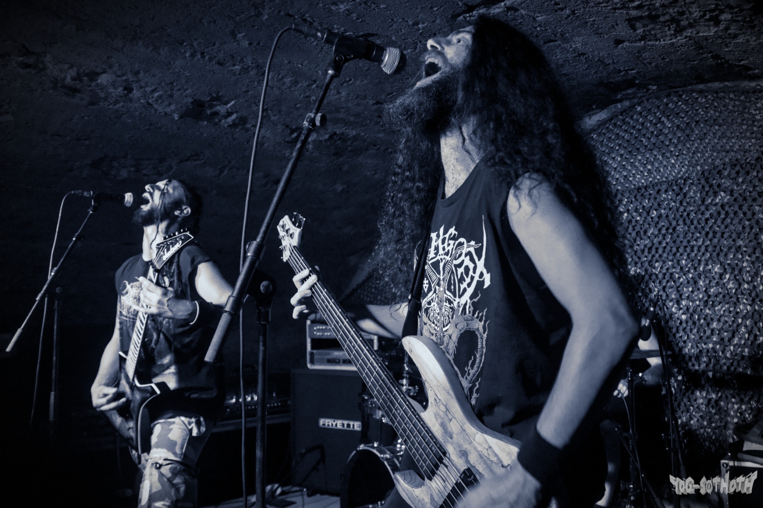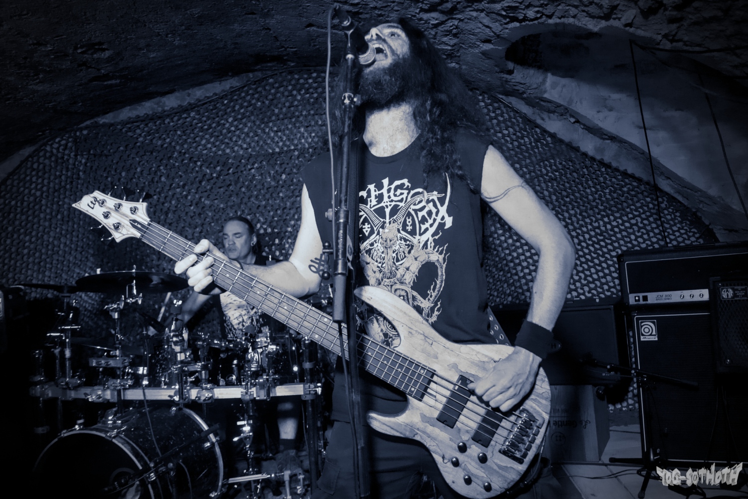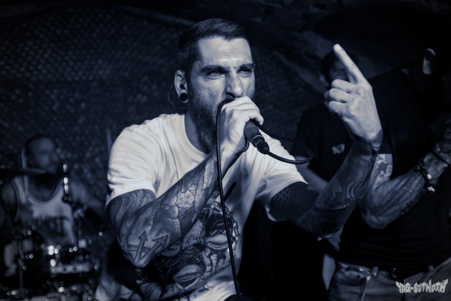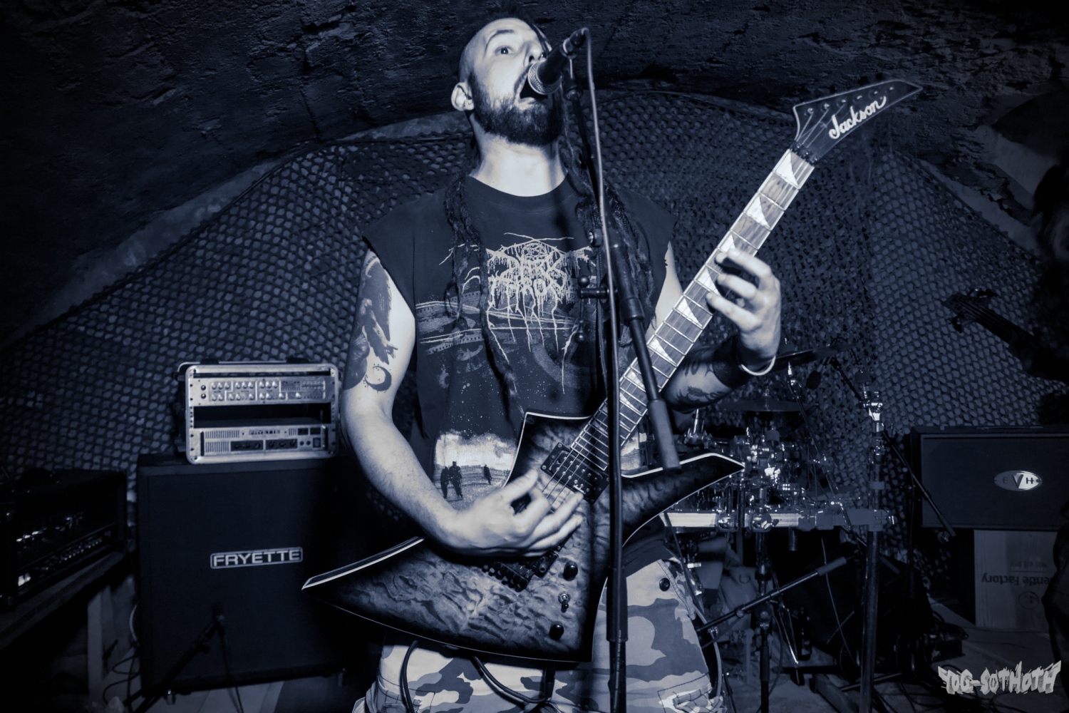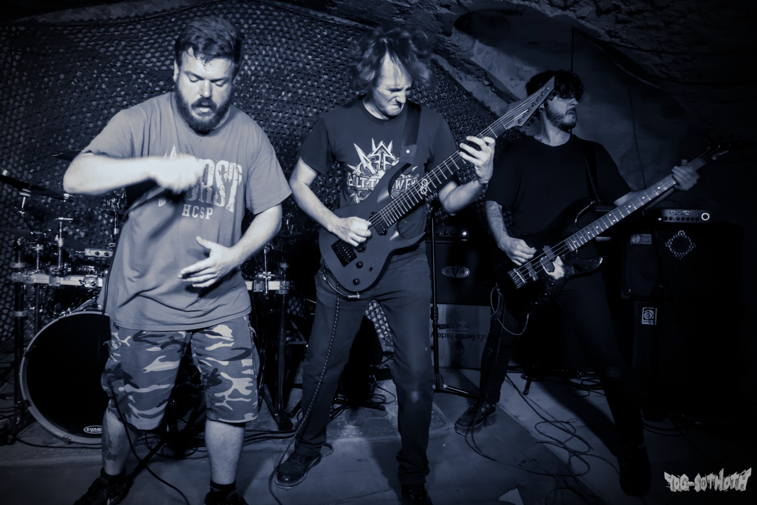 Public festif, ambiance familiale, assiette de diots patates à tomber, boissons houblonnées en abondance tout est réuni pour une soirée réussie. Il est juste 19h30 quand les Bacon Fury arrivent sur scène, pour ouvrir ce festival. C’est un groupe formé il y a peu par une bande de potes. Ils vont très vite dépoussiérer la noise cave area avec leur brutal death métal ravageur, le public un peu timide au début se laisse vite prendre au jeu et ça commence à remuer grave dans la cave ! Leur set m’a semblé un peu court et m’a complètement convaincu, à suivre de très près donc ! Après un cour changement de plateau c’est aux Screenback d’investir la cave. Ces Isérois jouent ce soir à domicile si on peut dire. Formés en 2019, ils évoluent dans style néo métal plutôt axé 90, d’ailleurs on retrouve dans leur compos des inspirations de groupes tel que Pleymo Smash It Combo, Mass Hysteria et bien d’autres. Son duo de chanteurs alternant entre growl et chant clair et ses textes écrits en français confèrent à ce groupe toute son identité. Ce soir pour leur premier concert en compagnie de leur nouveau bassiste Flo ils vont nous livrer un set carré et persuasif qui ne laissera personne indifférent ! Place maintenant à Sharked que l’on ne présente plus. Ils vont mettre le feu aux poudres avec leur brutal thrash death des enfers. TomRoger et ses compères ne vont pas faiblir de tout le set. L’abbé Sm dans une forme olympique va donner la voix à faire trembler les murs de la cave et Hervé leur nouveau bassiste va nous détruire les neurones. Nous aurons également le privilège de découvrir en exclusivité 3 morceaux issus de leur nouvel Ep dont la sortie est imminente. Un excellent moment qui en a fait transpirer plus d’un ! La fièvre va encore monter de quelques degrés à présent avec le trio Grenoblois de Wardogs. Ils vont nous botter le cul pendant 45mn avec leur death black punk groovy à souhait. Ça slame ça pogote, ça mosh dans tous les sens, les cervicales craquent, aucun répit, le public ravi se défoule à fond et en redemande. Énorme coup dur pour Festering Process qui a fait la release party la semaine dernière au Rock N Eat pour la sortie de leur nouvel EP Folkgore, leur chanteur vient de tomber malade et n’est absolument pas en mesure d’assurer le set ce soir. C’est donc Boris qui le remplacera au pied levé. Leur brutal death- grind technique extrêmement rythmé va finir de nous ruiner le cerveau et va clôturer cette soirée en beauté. Cette onzième édition fut donc des plus brutales dans la Noise Cave Area une ambiance hors du commun ! Un immense merci aux organisateurs Norbert et Tom Roger pour leur accueil, leur sympathie et l’ensemble de ce festival, mais également à tous les bénévoles qui assurent le côté technique et intendance en ayant toujours le sourire. Merci également aux groupes présents qui ont tout donné pour nous ce soir et merci au public venu mettre le feu en masse ! |