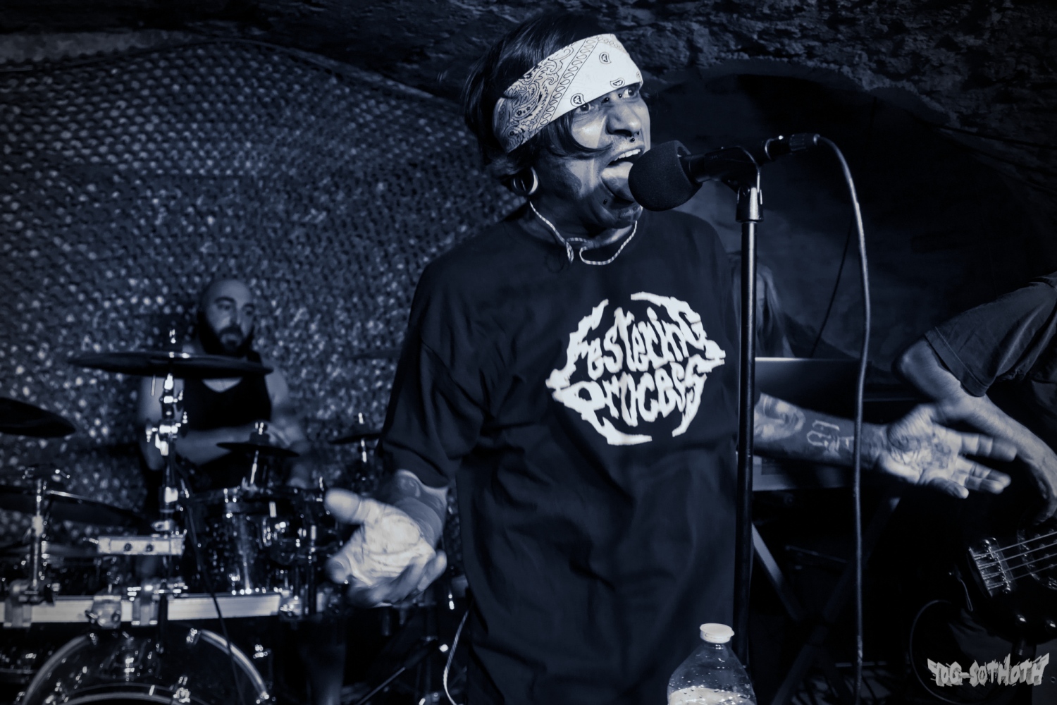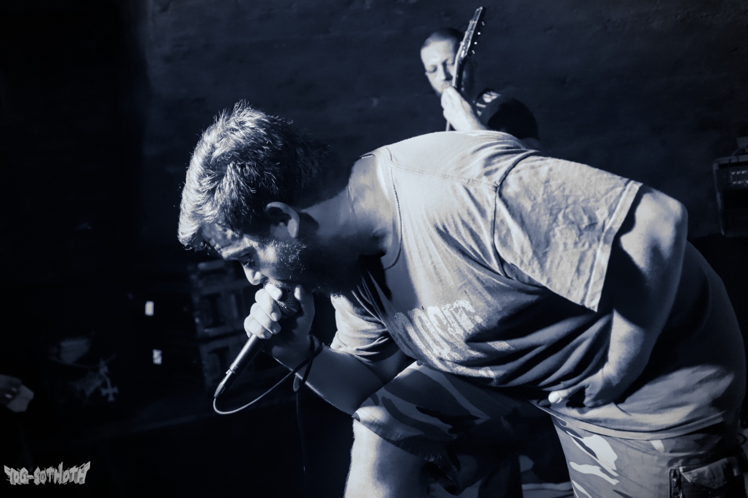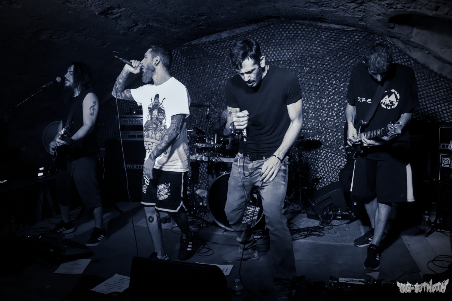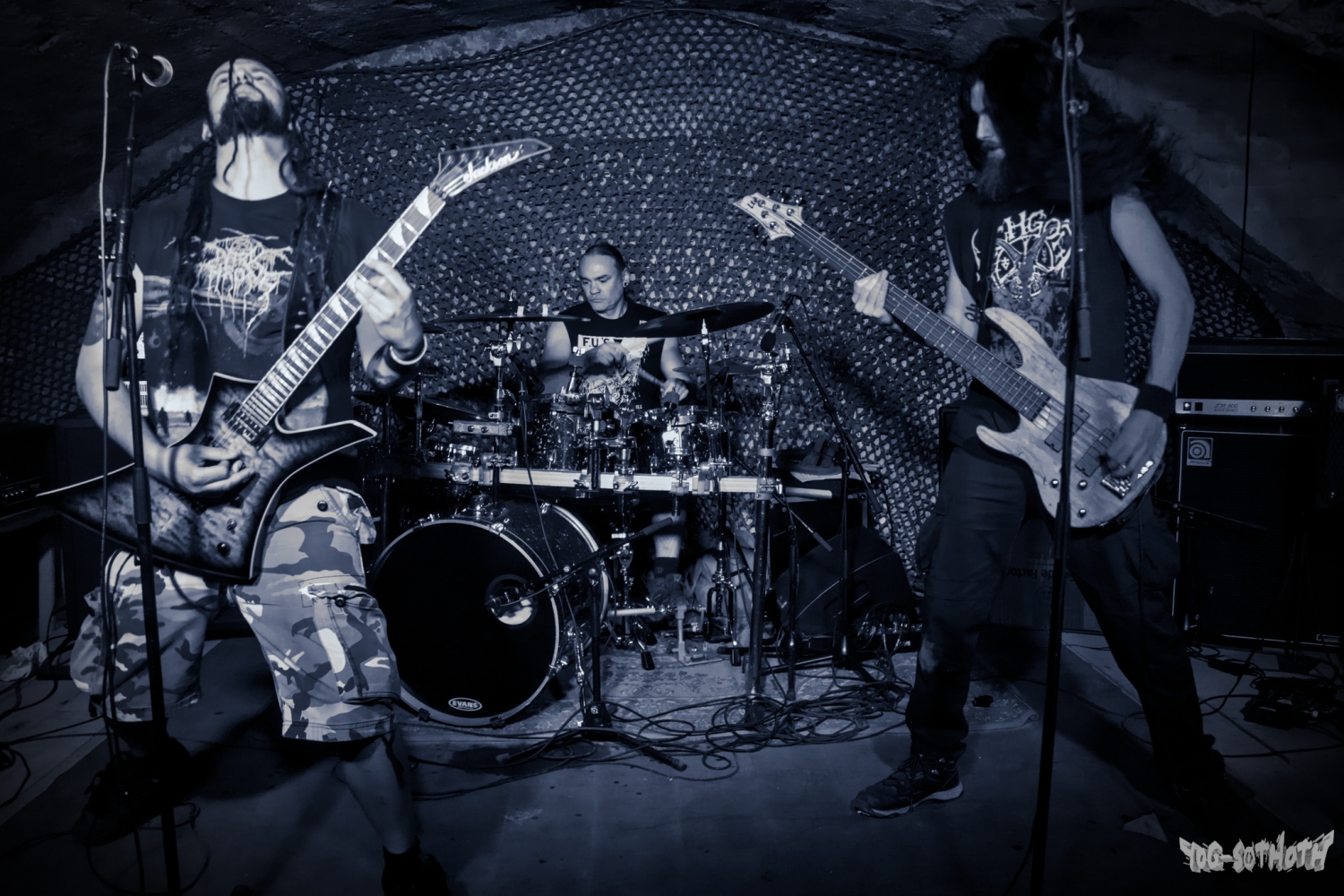 Public festif, ambiance familiale, assiette de diots patates à tomber, boissons houblonnées en abondance tout est réuni pour une soirée réussie. Il est juste 19h30 quand les Bacon Fury arrivent sur scène, pour ouvrir ce festival. C’est un groupe formé il y a peu par une bande de potes. Ils vont très vite dépoussiérer la noise cave area avec leur brutal death métal ravageur, le public un peu timide au début se laisse vite prendre au jeu et ça commence à remuer grave dans la cave ! Leur set m’a semblé un peu court et m’a complètement convaincu, à suivre de très près donc ! Après un cour changement de plateau c’est aux Screenback d’investir la cave. Ces Isérois jouent ce soir à domicile si on peut dire. Formés en 2019, ils évoluent dans style néo métal plutôt axé 90, d’ailleurs on retrouve dans leur compos des inspirations de groupes tel que Pleymo Smash It Combo, Mass Hysteria et bien d’autres. Son duo de chanteurs alternant entre growl et chant clair et ses textes écrits en français confèrent à ce groupe toute son identité. Ce soir pour leur premier concert en compagnie de leur nouveau bassiste Flo ils vont nous livrer un set carré et persuasif qui ne laissera personne indifférent ! Place maintenant à Sharked que l’on ne présente plus. Ils vont mettre le feu aux poudres avec leur brutal thrash death des enfers. TomRoger et ses compères ne vont pas faiblir de tout le set. L’abbé Sm dans une forme olympique va donner la voix à faire trembler les murs de la cave et Hervé leur nouveau bassiste va nous détruire les neurones. Nous aurons également le privilège de découvrir en exclusivité 3 morceaux issus de leur nouvel Ep dont la sortie est imminente. Un excellent moment qui en a fait transpirer plus d’un ! La fièvre va encore monter de quelques degrés à présent avec le trio Grenoblois de Wardogs. Ils vont nous botter le cul pendant 45mn avec leur death black punk groovy à souhait. Ça slame ça pogote, ça mosh dans tous les sens, les cervicales craquent, aucun répit, le public ravi se défoule à fond et en redemande. Énorme coup dur pour Festering Process qui a fait la release party la semaine dernière au Rock N Eat pour la sortie de leur nouvel EP Folkgore, leur chanteur vient de tomber malade et n’est absolument pas en mesure d’assurer le set ce soir. C’est donc Boris qui le remplacera au pied levé. Leur brutal death- grind technique extrêmement rythmé va finir de nous ruiner le cerveau et va clôturer cette soirée en beauté. Cette onzième édition fut donc des plus brutales dans la Noise Cave Area une ambiance hors du commun ! Un immense merci aux organisateurs Norbert et Tom Roger pour leur accueil, leur sympathie et l’ensemble de ce festival, mais également à tous les bénévoles qui assurent le côté technique et intendance en ayant toujours le sourire. Merci également aux groupes présents qui ont tout donné pour nous ce soir et merci au public venu mettre le feu en masse ! |