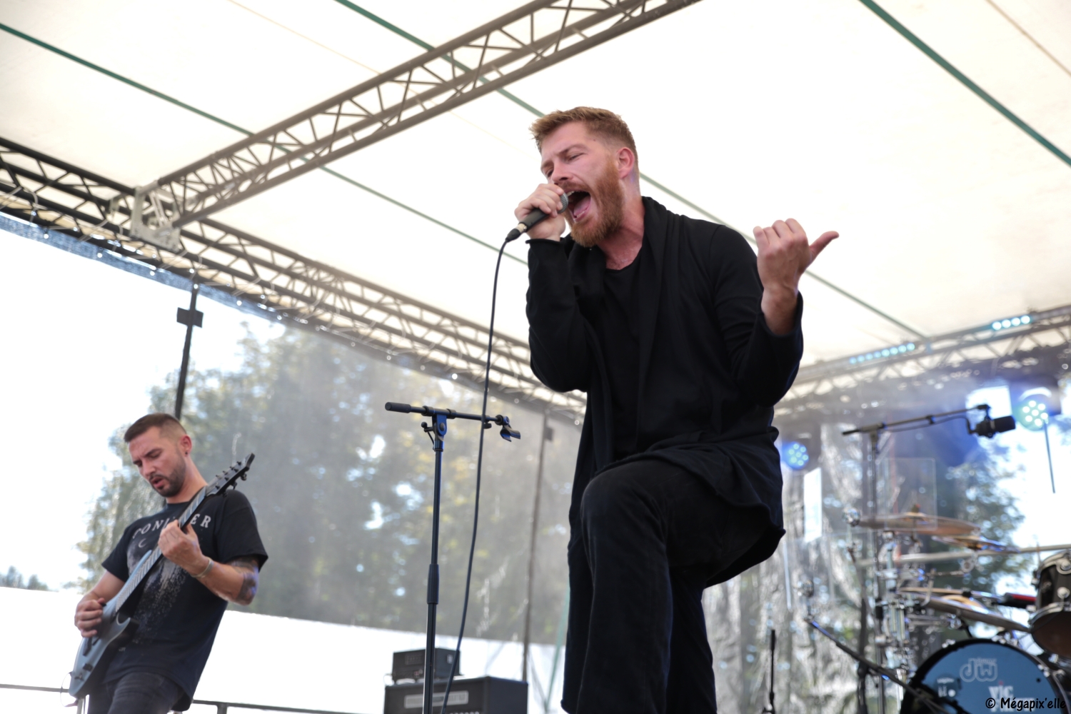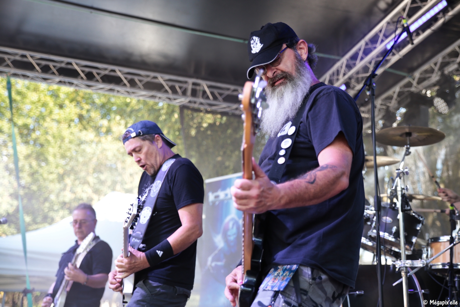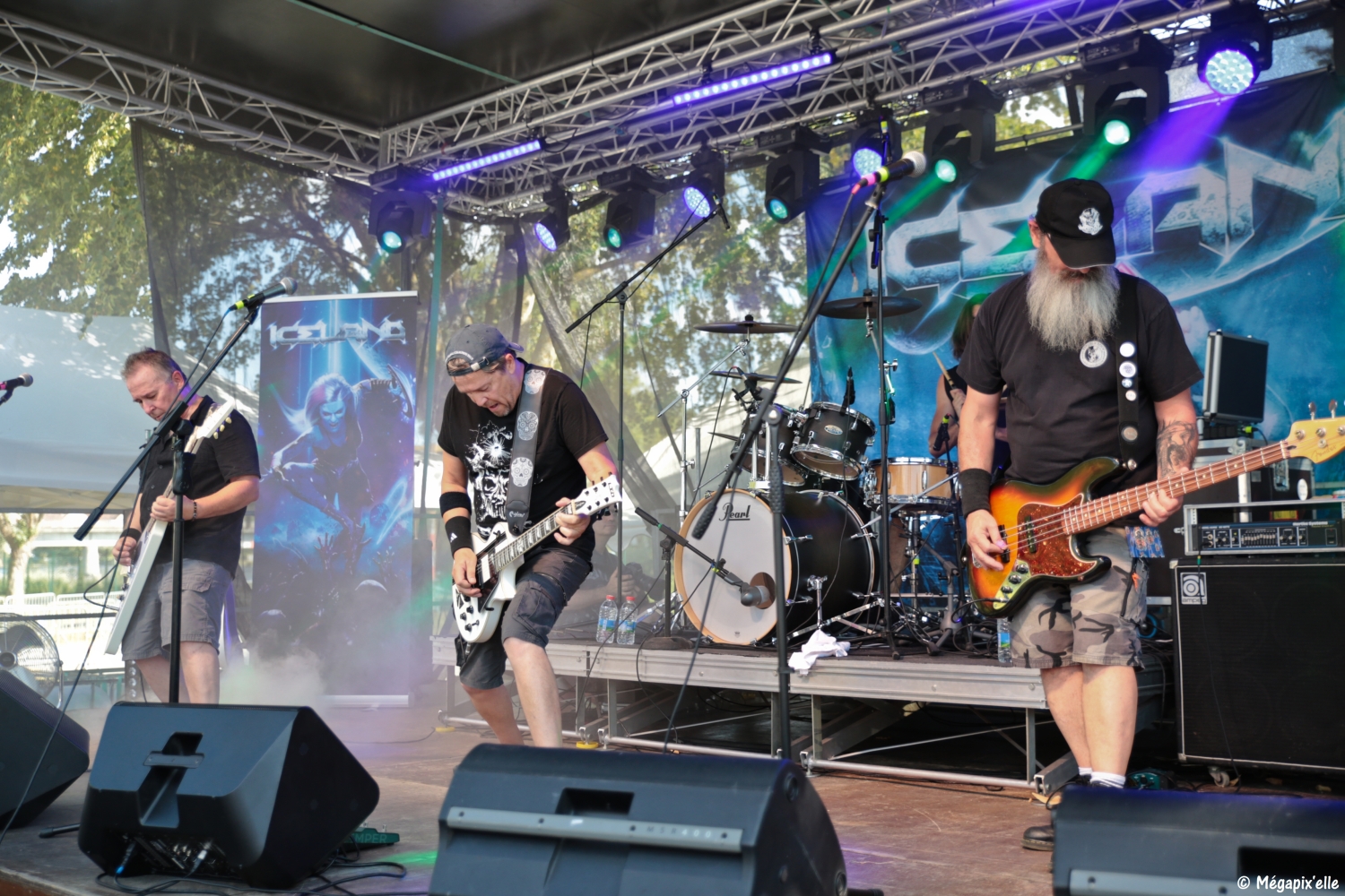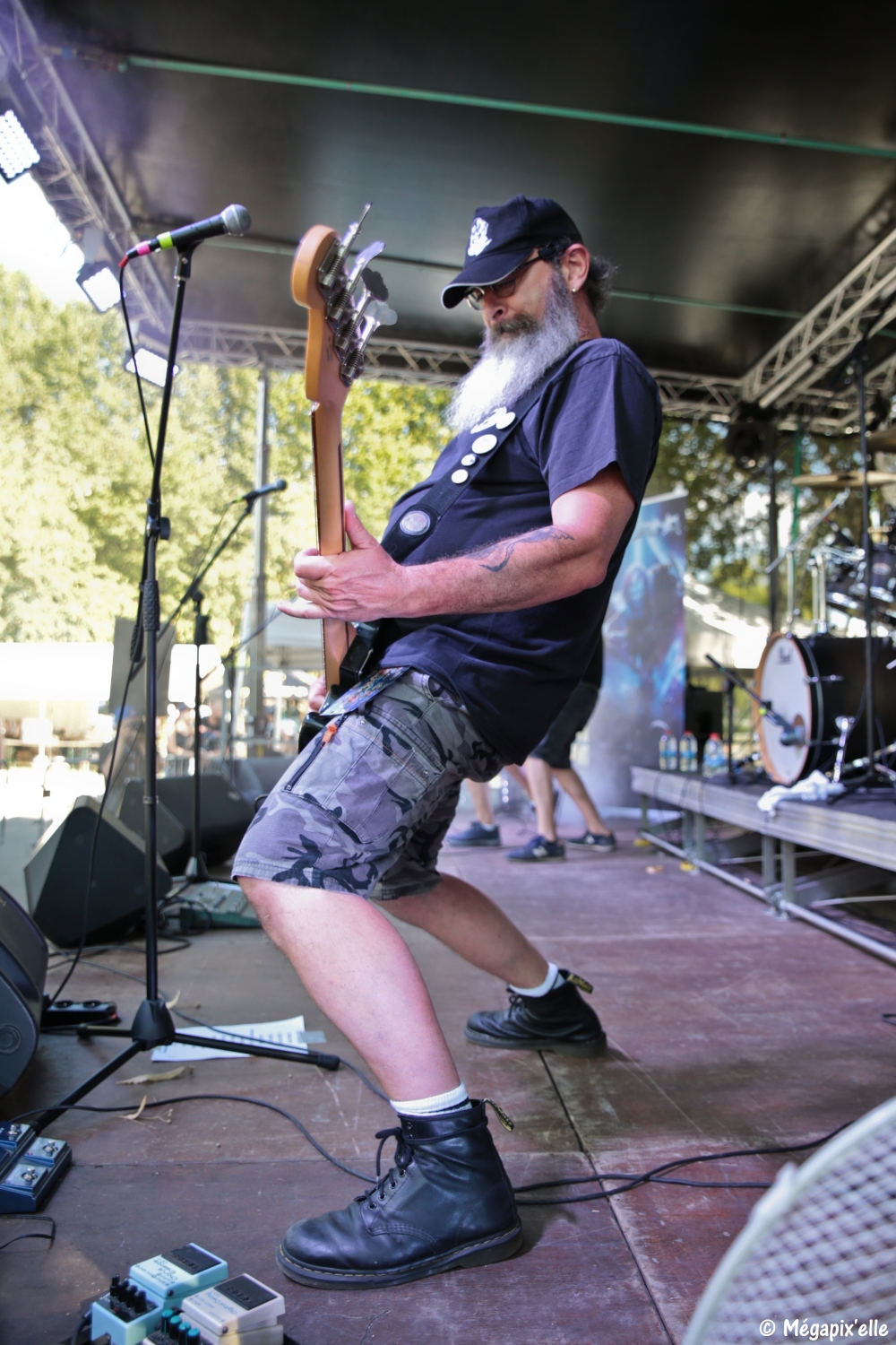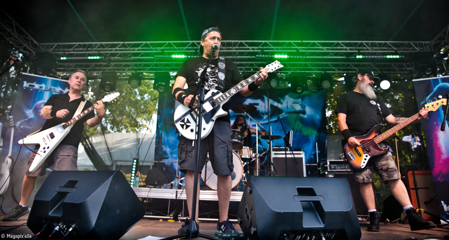 Organisé par une équipe familiale et extrêmement bon enfant, ce Fertois Metal Fest est une vraie bouffée d’air et sans doute un rappel de ce que doit être un festival bien organisé et à taille humaine. Deux scènes disposées à 90° l’une de l’autre pour des enchaînements rapides, parfait ! Bref, coté organisation et malgré une chaleur écrasante, nous avons passé un excellent moment. Musicalement, l’affiche avait de la gueule et était très variée. À noter que nous ne pouvions assister qu’a la première journée. STRUGGLEHEAD Un groupe qui porte bien son nom… Un ampli qui déconne, une corde de cassée, les Strugglehead (galériens) ont eu leur lot d’embûches, cela n’a pas altéré leur performance. Un rock poilu et bien gras mené par un trio communicatif qui a facilement acquis l’adhésion du public. MARCH OF SCYLLA Ah !! Le groupe de metalcore incontournable de tout festival. Qu’en est-il ? Implacables, les musiciens sont très efficaces et les compos sont tendues à l’extrême, c’est brut, carré et prenant. Je ne me suis pas ennuyé. Mon seul regret viendra des lignes de chants trop souvent sur la même tonalité, les rendant un peu lassantes. En revanche, scéniquement, c’est bien en place. ICELAND De vieux loups qui thrashent et qui collent des mandales aux minots ? C’est Iceland. Quel pied, merci les gars, c’est carré, bien composé et efficace, well done !! GOHRGONE Une valeur sûre du Death (deathcore ?), Gohrgone à roulé sur le Fertois, le réveillant à grand coup de circle pit et wall of death. Les petits gars étaient en grande forme et j’ai vraiment apprécié cette énergie, cette violence et malgré tout cette bonne humeur. Un groupe à voir absolument. LES PROJETS D'ATHÉNA Quel dommage de jouer si tôt, j’ai l’impression qu’on aurait pu avoir un spectacle encore plus dantesque !! Les Projets d’Athéna, c’est un concept. Le groupe est composé d’Antoine, alias « le technologue », guitariste et ingénieur technicien multifonction du projet ; Audrey, la chanteuse et hôte de la déesse Athéna ; et de l’imposant « Droïdrummer » HADES-06, le batteur du groupe. Oui, un robot, j’adore ! Le trio crée un univers cyberpunk brutal et poétique qui se rapproche plus d’une performance artistique que d’un concert, mais qui m’a ébloui. Une esthétique soignée et détaillée qui aurait mérité de jouer de nuit pour être plus immersif. BLASPHEME Voilà pourquoi il faut aller dans de petits festivals, pour ce faire cueillir par un groupe comme Blasphème. Moi, le Heavy, ce n’est pas trop mon truc, mais … Et bah, j’ai été conquis. Quelle présence, quelles compos magnifiques et quelles voix des deux chanteurs, c’est impressionnant (vraiment, je n’en rajoute pas.). Les gars ne sont plus les perdreaux de l’année, mais ils ont toujours 20 ans dans les veines. De nombreux fans étaient présents et reprenaient en cœur les tubes de Blasphème donnant une belle ambiance au set. PORNO GRAPHIC MESSTAH La claque du Fertois ! Rien à redire en fait, c’était parfait de bout en bout. Des maquillages, des tenues et un décor étudiées et réfléchies, un chanteur charismatique, un show bien écrit et des compos catchys, c’est bon, j’ai bien résumé ? En plus, on a eu de jolies filles venues jouer avec le feu pendant le set. Vous voulez des détails ? Il fallait être présent. Musicalement, c’est du metal indus bien foutu à la Nine Inch Nails ou Rob Zombie. LAST TEMPTATION Je suis un peu le cul entre deux chaises avec Last Temptation. C’est un vrai groupe ou un truc à la Steel Panthers ? Je me suis demandé tout le concert si les gars nous faisaient un petit spectacle ou si… ils étaient bourrés ou les deux !! Musicalement, on est sur du bon gros hard rock à la Black Sabbath bien riffé et emmené par un chanteur virtuose qui s’agite comme Steven Tyler, du tout bon. Mais l’attitude, faut choisir les gars, déconne assumée ou le sérieux, là, je ne savais pas. J’ajouterai que j’avais l’impression que le gratteux Pierre Scheithauer, (ex-Stream, Belladonna, Killing Machine ou encore Temple Of Brutality) me semblait largué hyper souvent et ne jouait pas avec les autres. Malgré cela, il en ressort un plutôt bon moment, car la section rythmique (Fabio Alessandrini et Franz OA Wise) est incroyable de groove et de punch et que Loup Malevil au chant est impérial, donc, à revoir sûrement. Conclusion : Le Fertois Metal Fest est tout ce que l’on attend de ce genre d’événement, carré, pro mais familial dans une ambiance festive et bon enfant. Encore Merci pour les invits, on reviendra sûrement. Big Up à Yoann l’Ogre gentil et Grand Stratéguerre du Fertois. Pour des raisons de confidentialité YouTube a besoin de votre autorisation pour charger. Pour plus de détails, veuillez consulter nos Politique de confidentialité. |