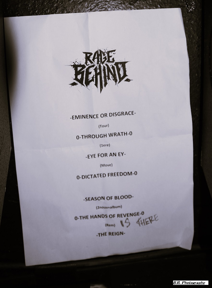 Il est un peu plus de 20 heures lorsque les masques arrivent sur scène, ceux des membres de RAGE BEHIND, combo Frenchie qui en veut. Son secret, un mélange de thrash/groove/nu-metal qui nous rappelle un certain Slipknot.