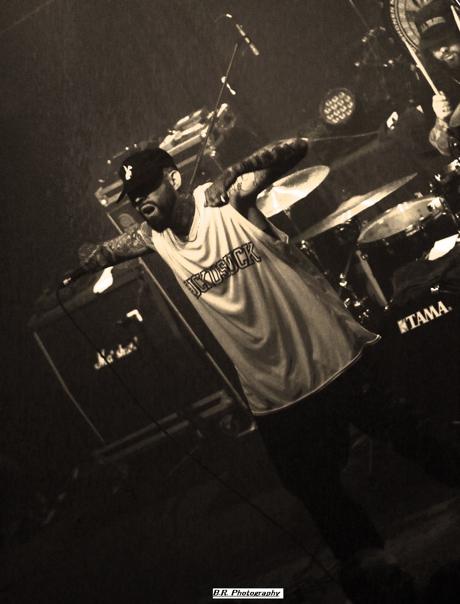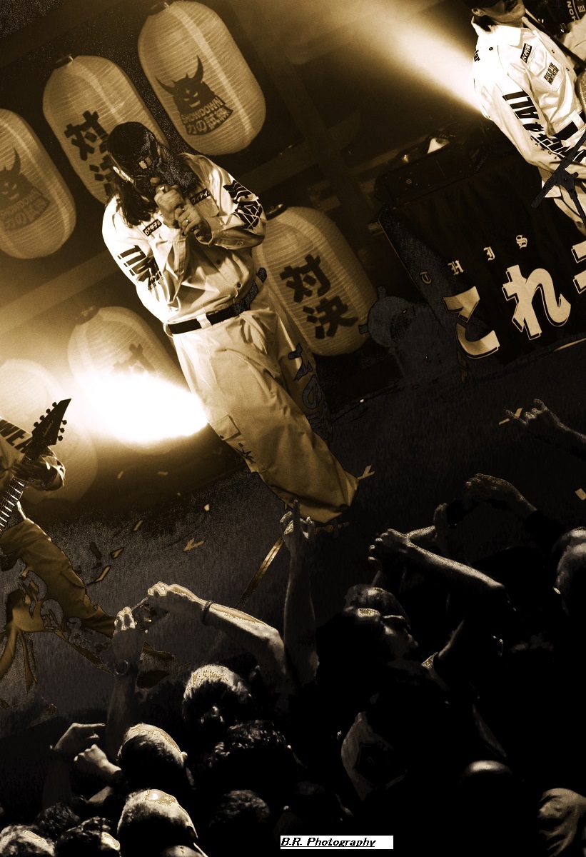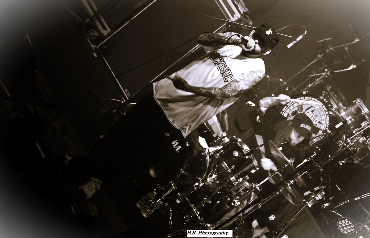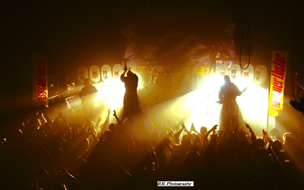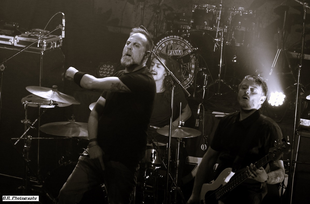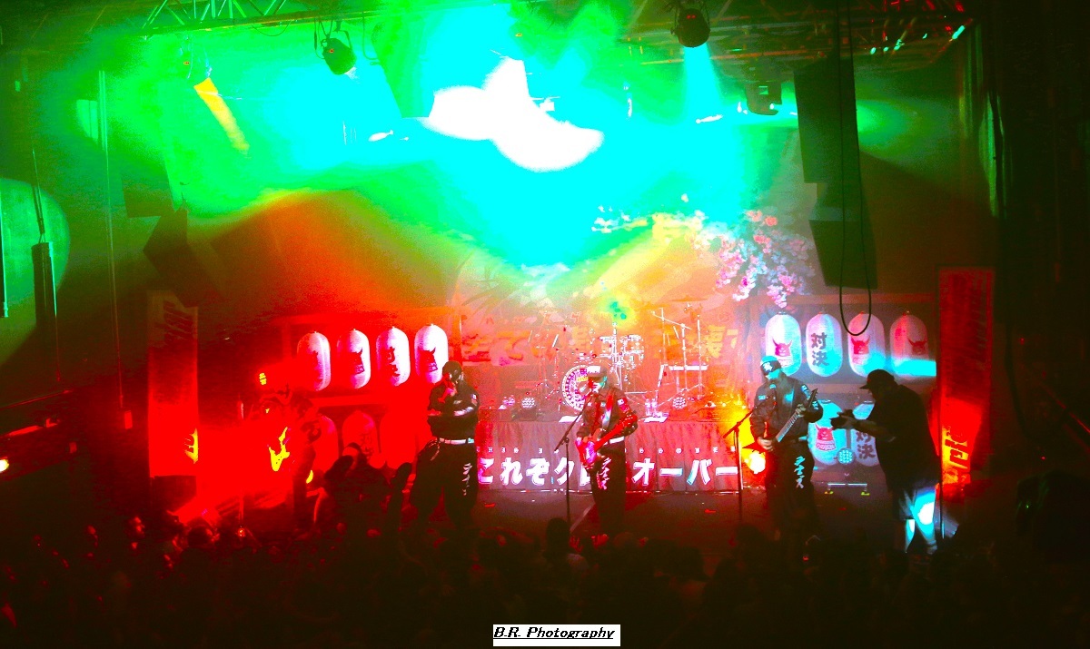 Les Lyonnais de DRIVE NORTH ont la lourde tâche d'ouvrir les débats ce soir. Mais pas de problème ils s'en sortent très bien, car ces musiciens, ayant déjà opéré dans d'autres formations, connaissent la musique, le hardcore pur et dur quoi ! Avec un premier EP sous leurs bras ils tournent de partout où on les demande nuitamment en donnant une prestation remarquée au dernier Sylak, vous vous en souvenez ? Non, et bien ce soir en live ils ont la même énergie, la même passion, ils ont le diable au « core » et leur set de 30 minutes sera court mais intense comme l'on dit dans ces cas-là ! Nos Australiens préférés DEEZ NUTS ne sont pas venus ici ce soir à Lyon pour chercher de l'or dans le Rhône mais pour mettre dans leur poche (de kangourous, mdr) les coreux de tous poils comme ils le font depuis l'an 2007. Et leur dernier album en date « You Got Me Fucked Up » nous renvoie à un univers festif que les Australiens avaient mis en berne depuis quelque temps notamment après le décès de leur bassiste Sean Kennedy en 2021. Dorénavant et en trio, Deez Nuts nous revient en force et ce soir ils ont tout donné, la gentillesse en prime aussi ! Avec l'arrivée sur scène de RISE OF THE NORTH STAR, la tension monte d'un cran soudainement dans un Kao remplit jusqu'à la gueule. Après les avoir vu en live dimanche 8 octobre dernier au bord du Lac d'Annecy, comme dit en intro, j'étais curieux de voir, et le set, et l'ambiance pour Lyon. Et bien mes amis ce fut énorme tout simplement avec un public qui a retourné la salle de concert Lyonnaise ce vendredi 13 octobre, jour de chance s'il en est ! Avec leur dernier « méfait » intitulé « Showdown » nos chantres du hardcore/metal inspirés par la culture Nippone nous ont explosé la vue et les conduits auditifs tout simplement. Le Ninkasi Kao n'en revient toujours pas en voyant tous ces jumps, ces headbangs et ces mosh-parts incroyablement lourds et plombés dans leur univers Shonen, aargh ! Je me répète mais ce « Showdown » de Lyon fut l'égal de celui d'Annecy, incroyable tout simplement et à nouveau ce coup de cœur en ce qui me concerne, un choc frontal imparable donc ! Ne me reste qu'à remercier Médiatone Lyon pour m'avoir permis de participer à la soirée tant attendue. Je remercie bien entendu les trois formations de cette soirée pas comme les autres ! |