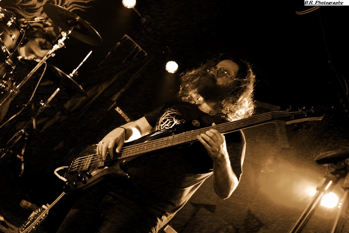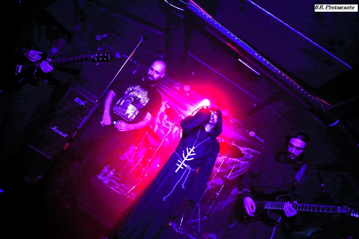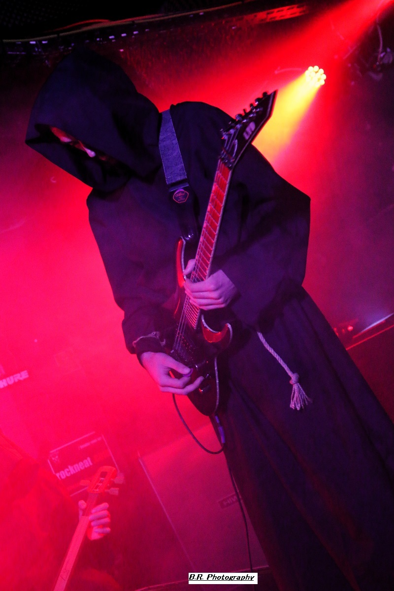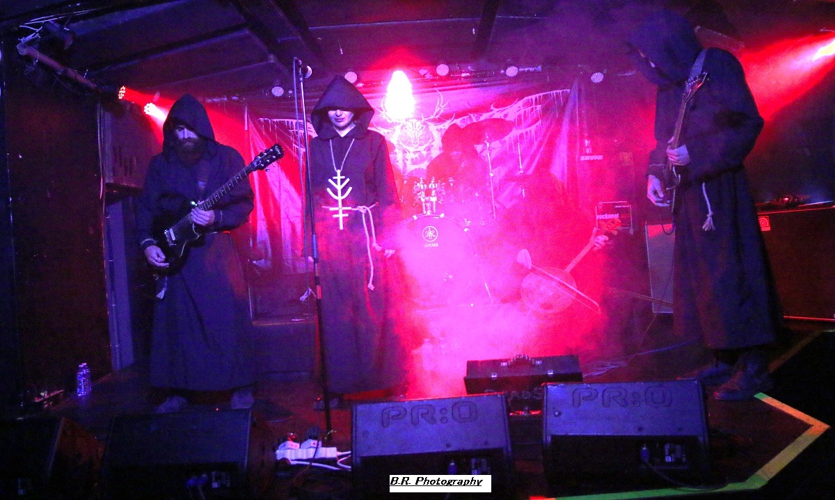 Pour son premier concert, le sextet Lyonnais GATES OF BETHULIA a donné le meilleur de lui-même dans le registre choisi de « blackenned post-metal ». Avec deux chanteuses en duo ou en duel, la formation veut créer un univers musical bien personnel. Et malgré quelques approximations d'un début on leur souhaite bonne route avec encore du travail à effectuer, mais je pense qu'ils en ont la capacité, groupe à suivre. XATHRITES, groupe formé en 2005 à Bagdad, a traversé l'Europe et arrive ce soir dans notre Rock n'Eat amputé quand même de leur guitariste Iraquien (problème de visa). Mais en trio Xathrites se donne à fond dans son black metal atmosphérique aux envies dépressives. Pour exemple ce titre « Hope is a Mental Illness », vous m'avez compris ! La chanteuse du groupe suivant, Askeesi viendra apporter son énergie remarquée sur un titre pour enfoncer le clou d'une atmosphère bien noire, amen ! Les Géorgiens d'ASKEESI relevant d'un « one man band » crée en 2020 se présente à nous au travers de 6 capuchons noirs évidemment avec sa chanteuse incroyable dans ses vocaux souvent arrachés et ses attitudes ensorcelantes proposant un mortel désespoir. Avec un mélange de religion, de paganisme mais aussi de folk de leur pays, Askeesi nous a offert une prestation envoûtante et magique à la fois avec donc cette forte présence vocale. Pour tout vous dire nous avons adoré leur set qui a imprimé dans notre tête une marque indélébile tout simplement. Donc finalement, c'était un concert qu'il ne fallait surtout pas rater ce 18 Octobre et le public présent est entré en « communion » avec les trois entités sombres qui ont en quelque sorte ensorcelé notre club préféré ce soir. Alors merci à DarkN Prod et au Rock n'Eat tout simplement, |