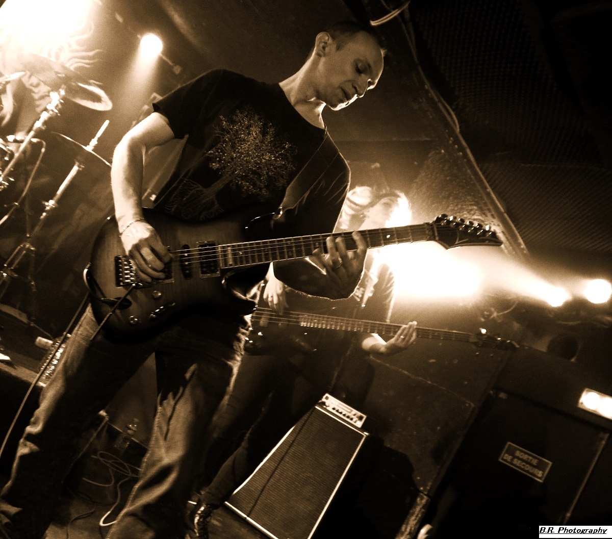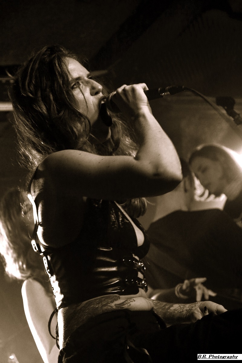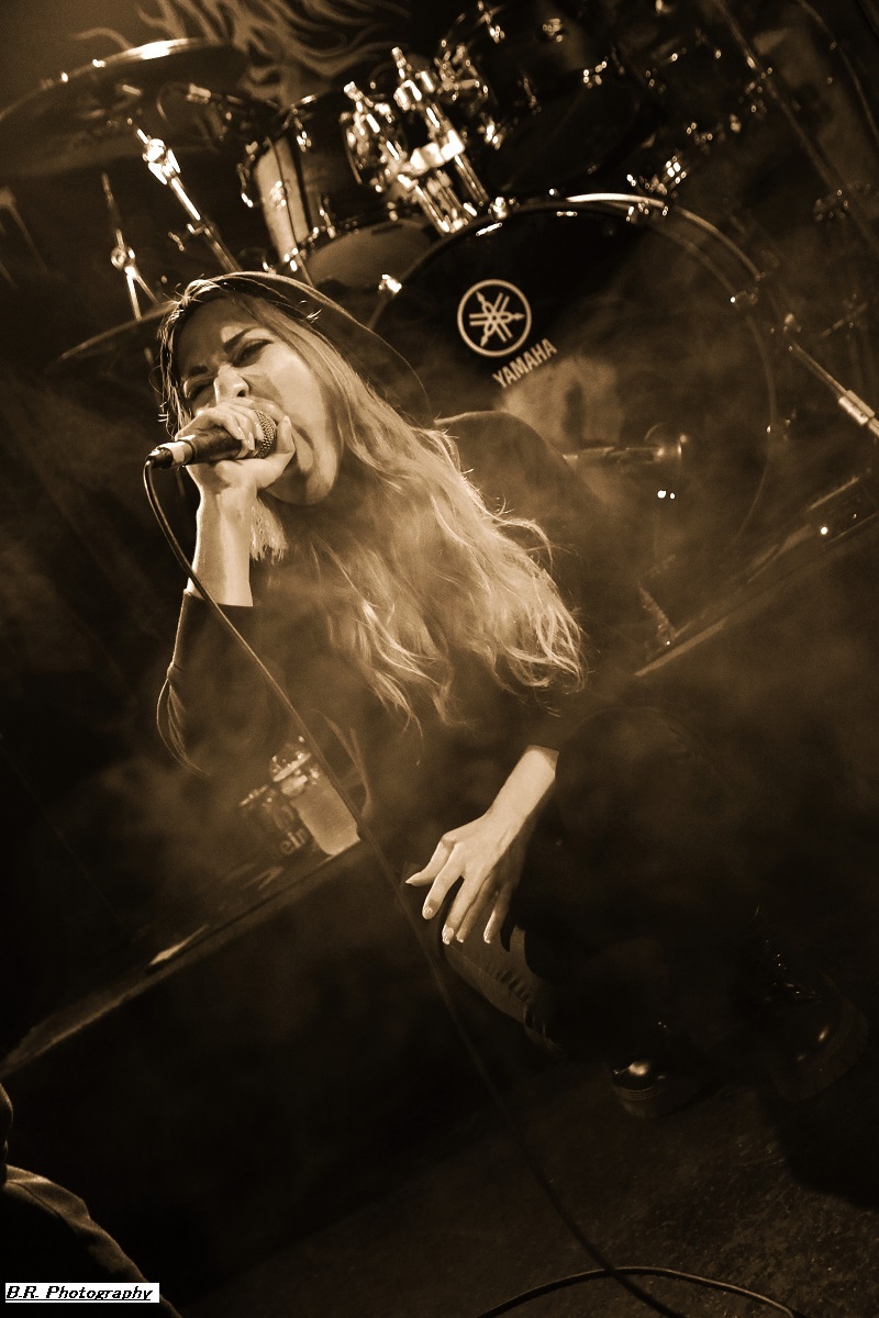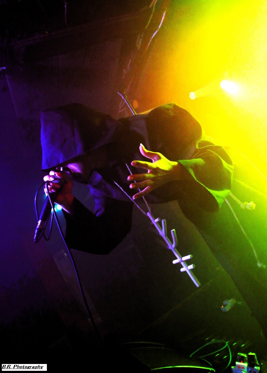 Pour son premier concert, le sextet Lyonnais GATES OF BETHULIA a donné le meilleur de lui-même dans le registre choisi de « blackenned post-metal ». Avec deux chanteuses en duo ou en duel, la formation veut créer un univers musical bien personnel. Et malgré quelques approximations d'un début on leur souhaite bonne route avec encore du travail à effectuer, mais je pense qu'ils en ont la capacité, groupe à suivre. XATHRITES, groupe formé en 2005 à Bagdad, a traversé l'Europe et arrive ce soir dans notre Rock n'Eat amputé quand même de leur guitariste Iraquien (problème de visa). Mais en trio Xathrites se donne à fond dans son black metal atmosphérique aux envies dépressives. Pour exemple ce titre « Hope is a Mental Illness », vous m'avez compris ! La chanteuse du groupe suivant, Askeesi viendra apporter son énergie remarquée sur un titre pour enfoncer le clou d'une atmosphère bien noire, amen ! Les Géorgiens d'ASKEESI relevant d'un « one man band » crée en 2020 se présente à nous au travers de 6 capuchons noirs évidemment avec sa chanteuse incroyable dans ses vocaux souvent arrachés et ses attitudes ensorcelantes proposant un mortel désespoir. Avec un mélange de religion, de paganisme mais aussi de folk de leur pays, Askeesi nous a offert une prestation envoûtante et magique à la fois avec donc cette forte présence vocale. Pour tout vous dire nous avons adoré leur set qui a imprimé dans notre tête une marque indélébile tout simplement. Donc finalement, c'était un concert qu'il ne fallait surtout pas rater ce 18 Octobre et le public présent est entré en « communion » avec les trois entités sombres qui ont en quelque sorte ensorcelé notre club préféré ce soir. Alors merci à DarkN Prod et au Rock n'Eat tout simplement, |