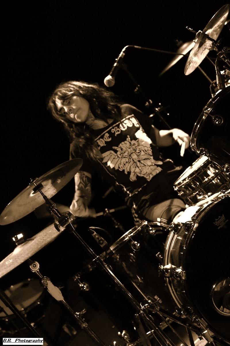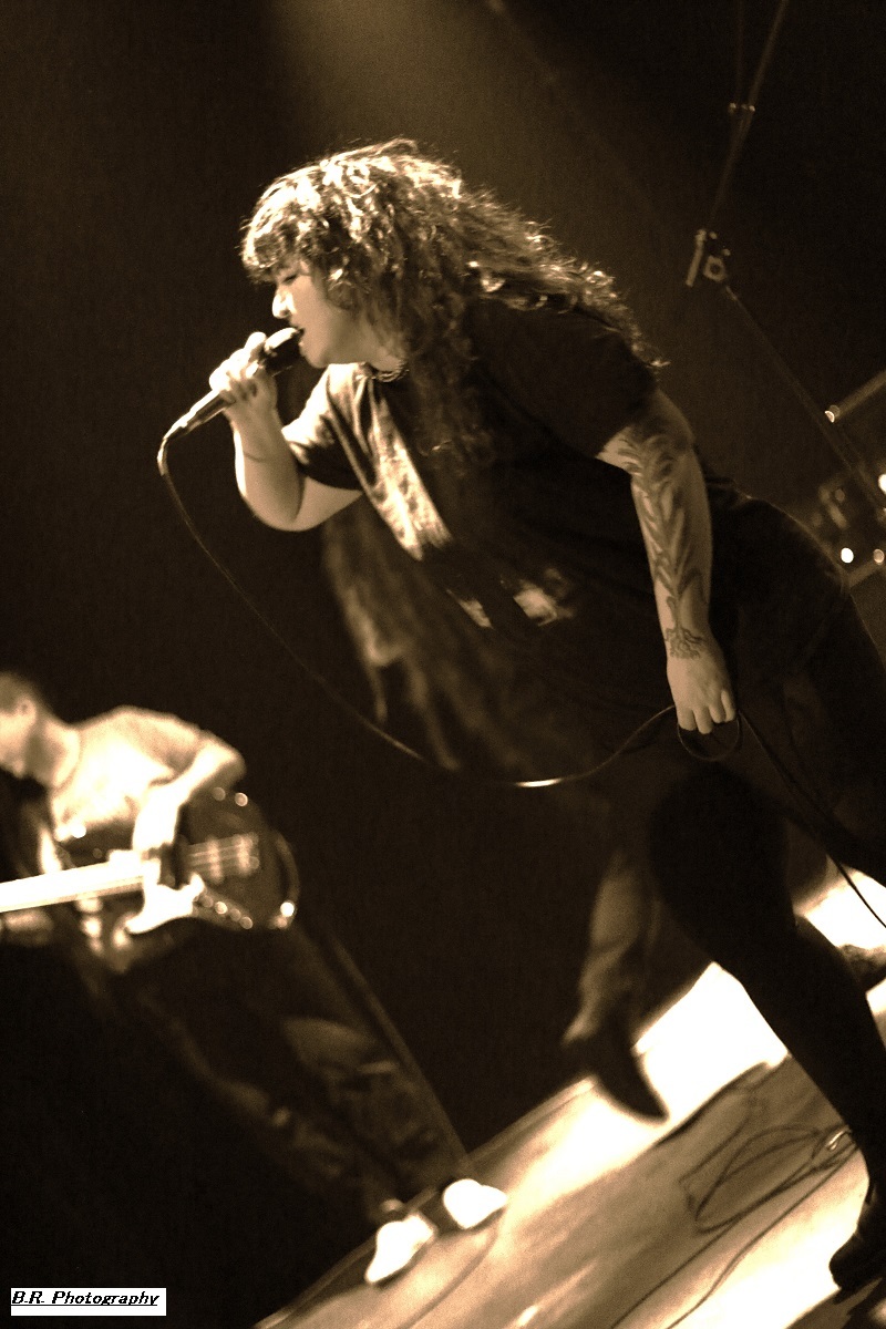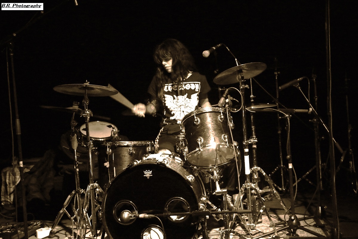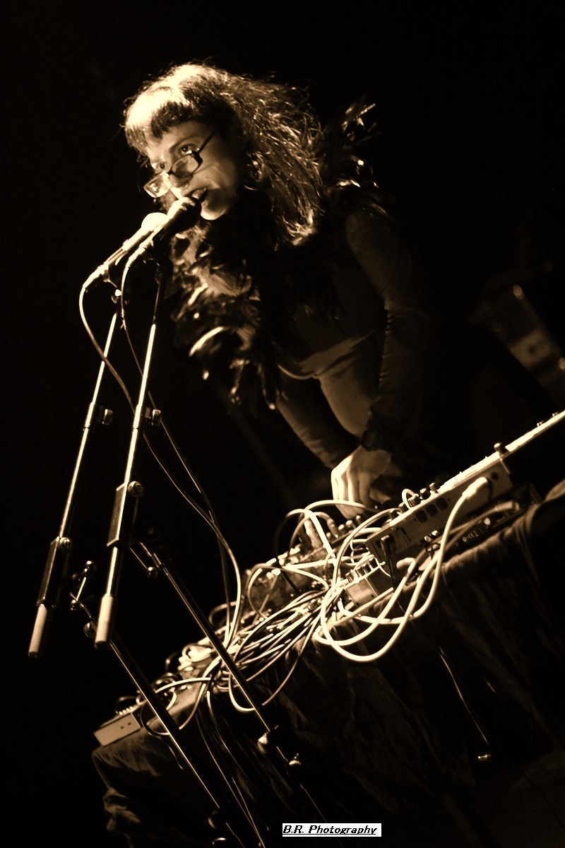 En fin de soirée, c'est la chanteuse Mexicaine PURPURA qui, avec ses « machines », nous emmène dans son univers doomed/noise et là, ça va faire mal, surtout aux conduits auditifs, Par moments on se serai cru sur le tarmac de l'aéroport de Roissy, aargh !