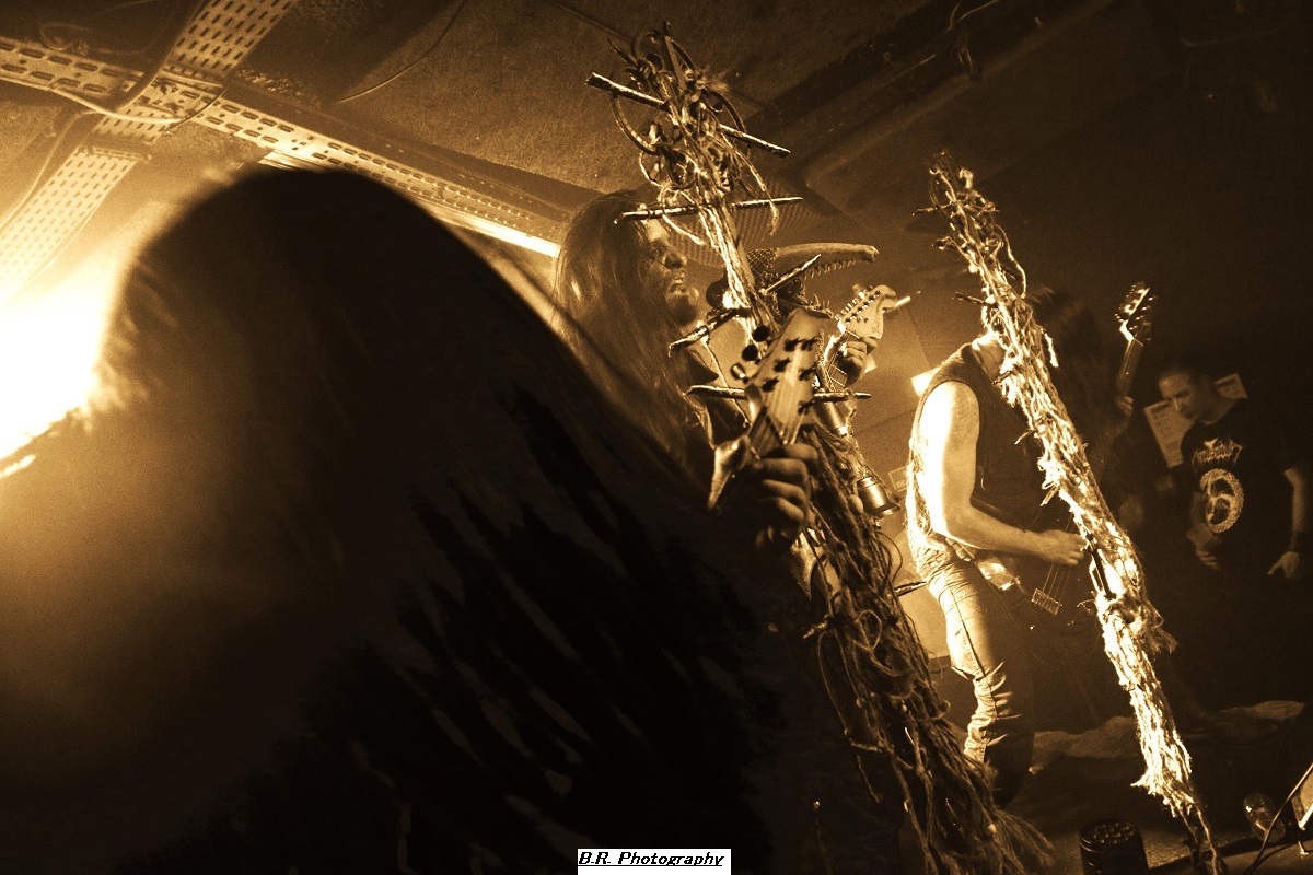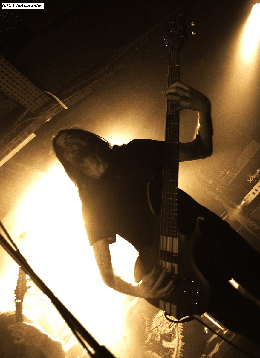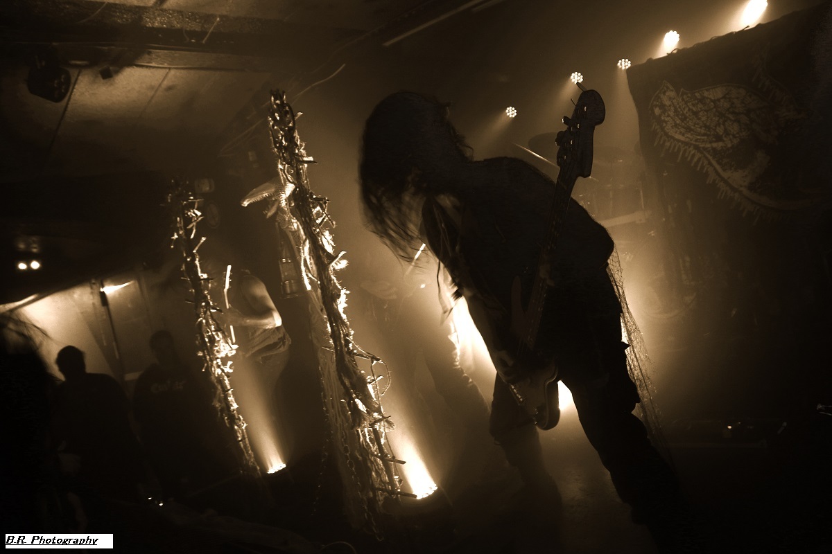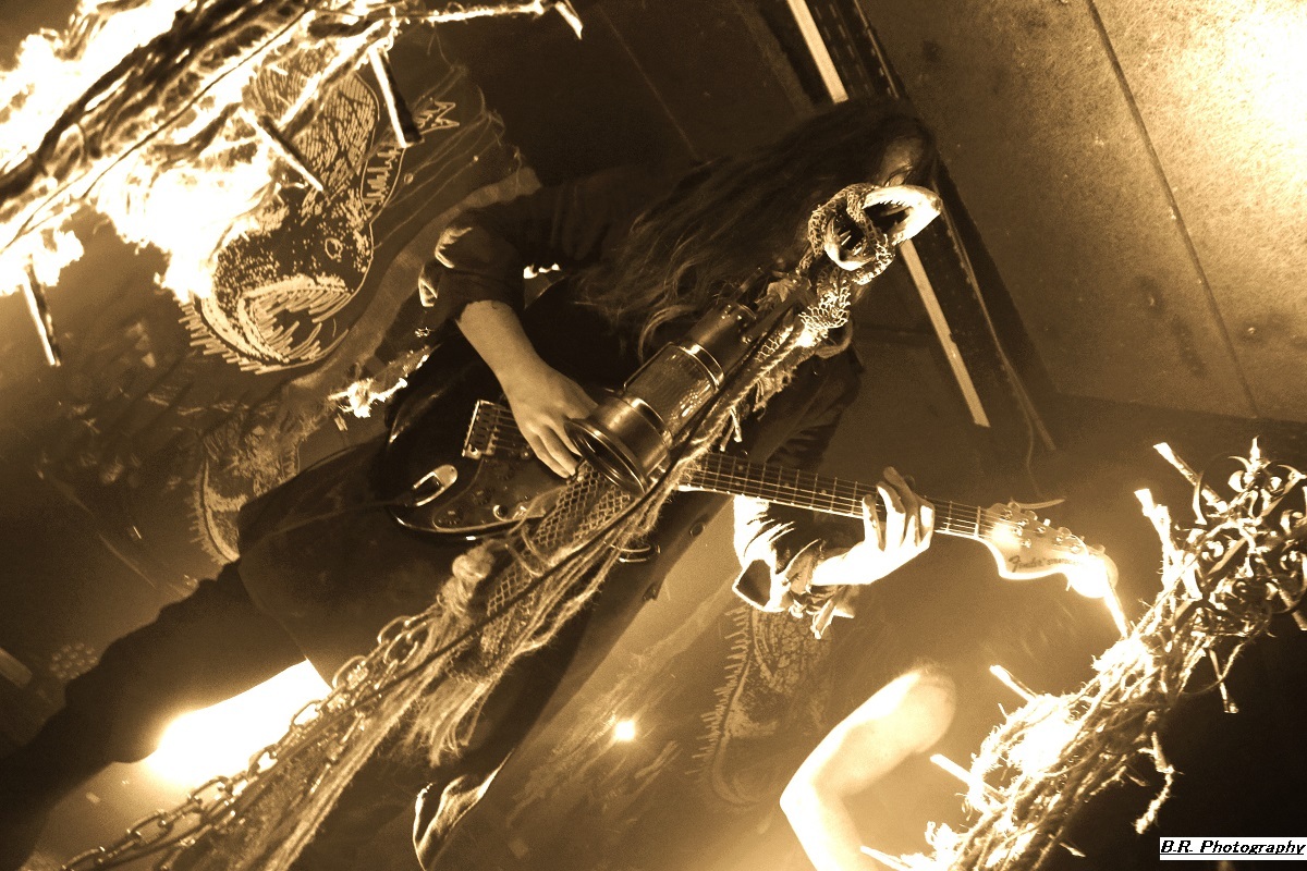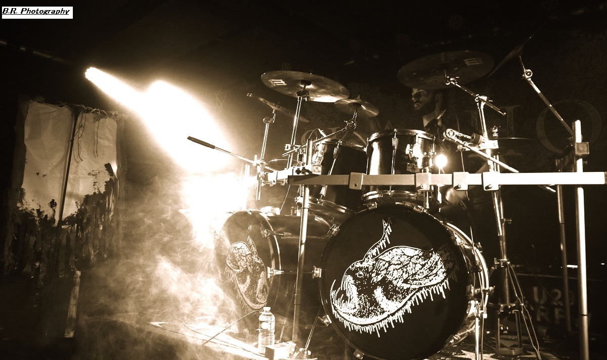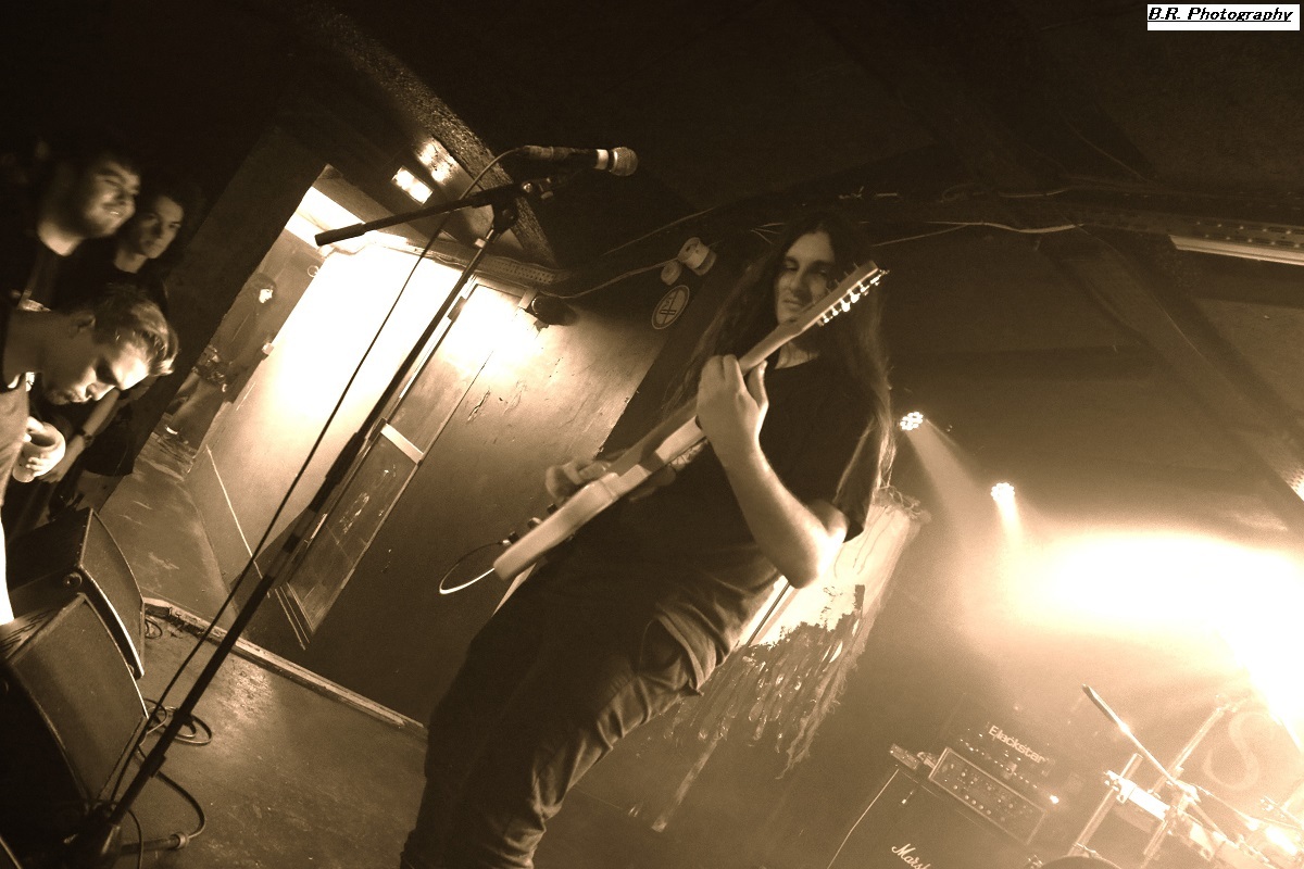 Comme ils l'avaient dit en septembre dernier lors du concert hommage à leur guitariste Téo, ceux de TERRES FROIDES sont revenus au Rock n'Eat pour continuer l'aventure black-metal qui lui va si bien. Entre les parties d'enregistrement de leur premier EP ils ont donc pris le temps de venir sur la scène de notre club préféré afin de nous faire goûter à nouveau à leurs compositions venues du froid et ce fus bien. Nous avons donc hâte d'écouter leur premier enregistrement, c'est vous dire ! Le duo VOÏD TOWER va ensuite surprendre quelque peu (en bien) le public de ce soir avec son premier concert tout simplement. Ce public qui va apprécier tout en mouvements les brûlots black-death des Lyonnais. Pas de répit car les titres s’enchaînent avec moult dissonances du guitariste chanteur propre au black et une voix d'outre-tombe bien placée. Et du côté de la batterie ça ne rigole pas en dextérité et en inventivité, cette batterie qui soutiens des titres assez « rentre dedans ». Bonne chance les gars pour la suite vous avez marqué des points ce soir ! Le décorum est maintenant planté afin d'accueillir les Lyonnais de SKAPHOS. Et ce sera une plongée en apnée dans leur univers des fonds sous-marins, ambiance ! Comme dit plus haut Skaphos nous invite à son 100ème naufrage avec une tournée Franco-Belge de 10 dates, et ce soir c'est l'étape « à la maison » dans les sous-sols du quai Arloing propices aux envois black/death sur fond de monstres marins et d'épaves de navires dans une ambiance (re) glaciale. Créé en 2018, cette formation qui nous a déjà offert deux albums, « Bathyscaffe » en 2020 et « Thooï » en 2022 explore les fonds marins à l'aide de compositions bien personnelles et excitantes. Et ce notamment en compagnie de VADER (en Europe) et de BATUSHKA au Japon). Cette formation est désormais incontournable dans le paysage black/death c'est une certitude ! Ce soir ils vont nous prouver encore une fois qu'ils maîtrisent leur sujet que ce soit musicalement et textuellement. A l'aide d'un son à décorner un troupeau de buffle en rut ils vont encore ce soir défrayer la chronique (sic). En effet, chaleur et sueur et même dérapages incontrôlés dans le public sont au rendez-vous et ce fus bien, terrible en fait, amen ! Cette nuit Lyonnaise était donc incontournable et elle le fut. Merci aux musiciens qui ont brûlé » les planches de la scène du RNE que nous remercions également pour l'accueil. |