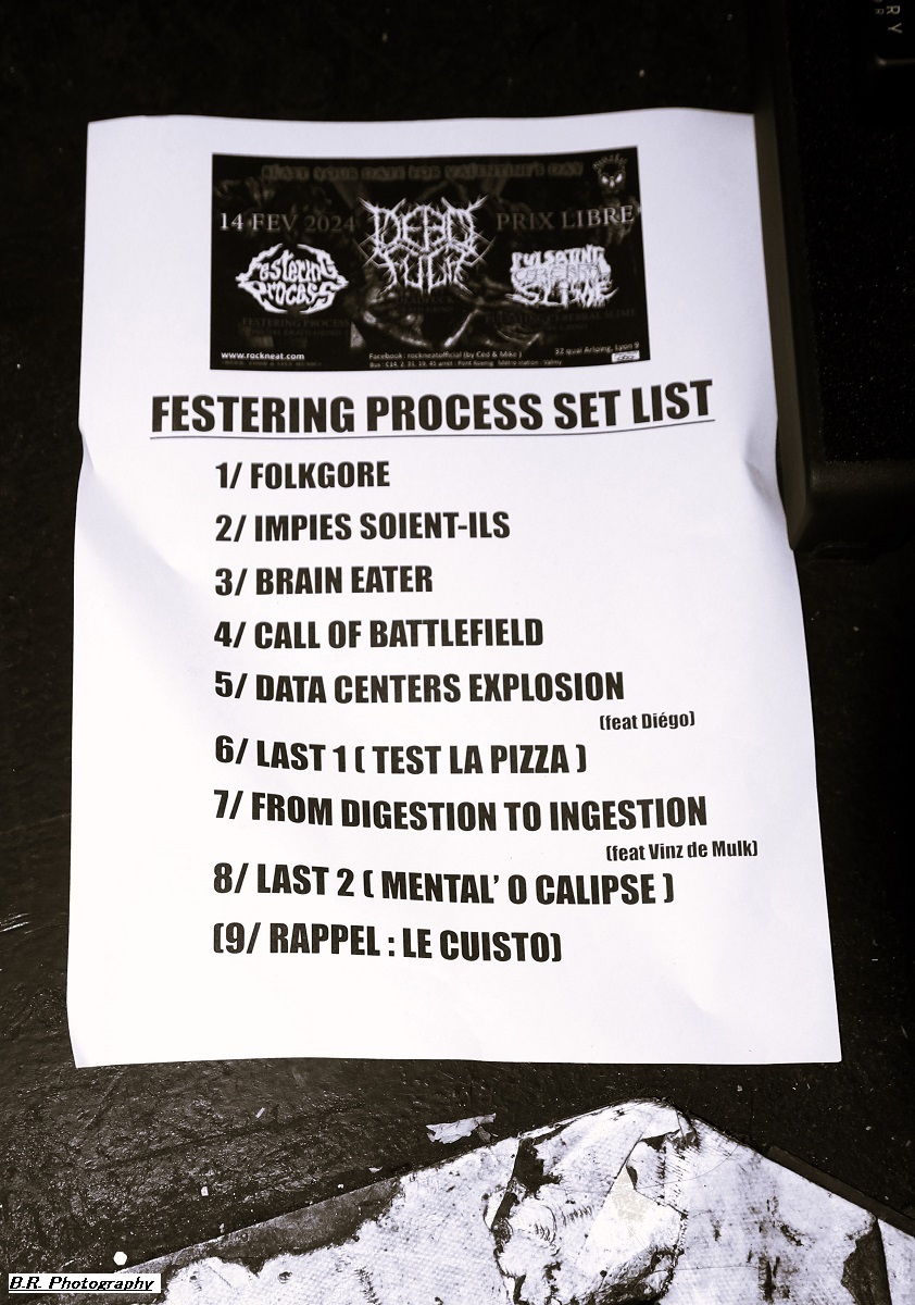 Au Rock n'Eat de Lyon on continue ce Mercredi 14 Février 2024 avec le death-gore-grind pour une soirée intitulée « Blast Your date For Valentin's Day » avec des « joyeusetés » bien brutales « in your face ». Trois formations vont se charger d'animer notre club préféré, ce sont DEADFUCK, PULSATING CEREBRAL SLIME et FESTERING PROCESS. Avec des noms pareils vous vous doutez bien que ces groupes ne font pas dans la dentelle !