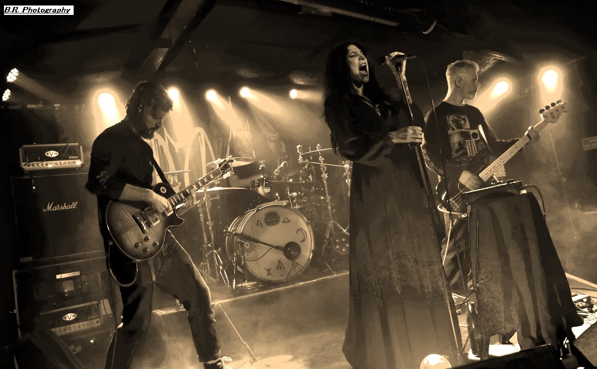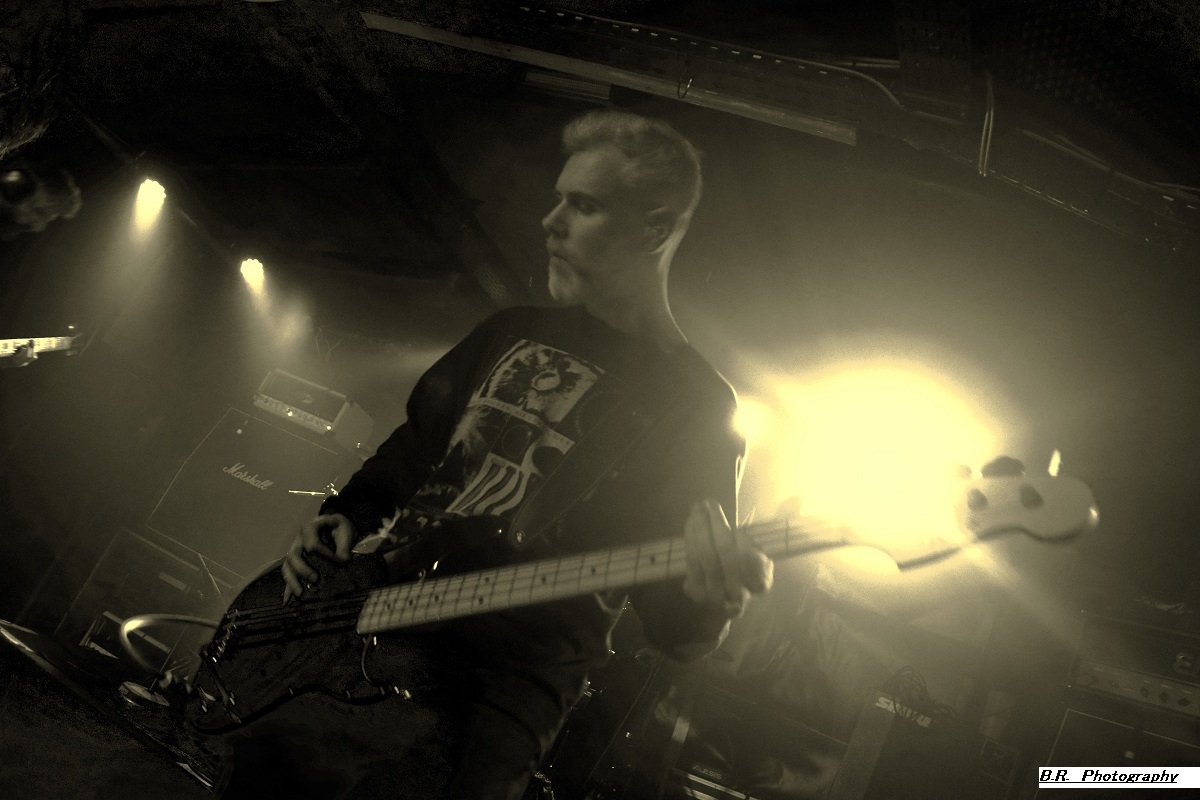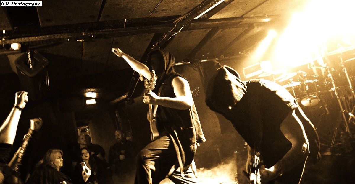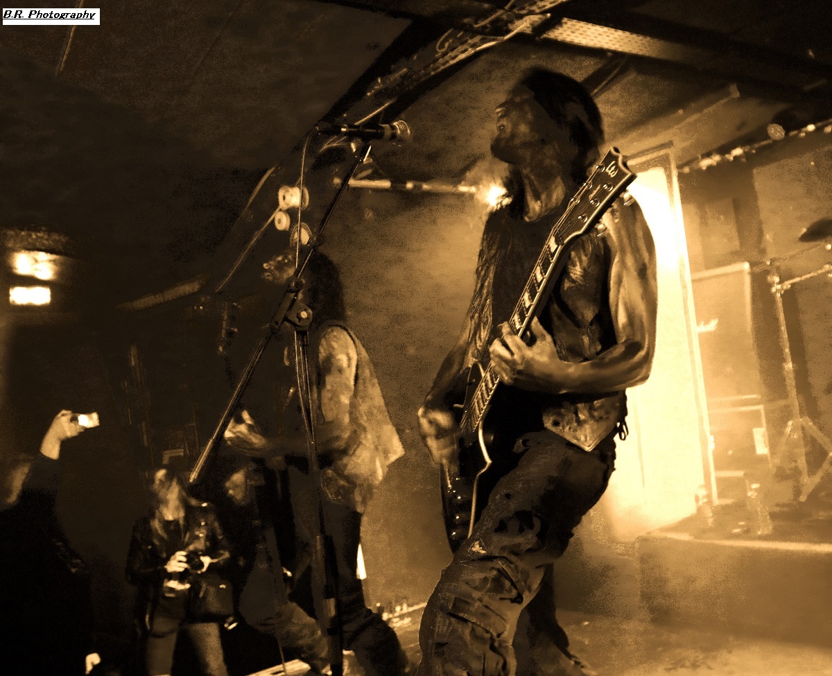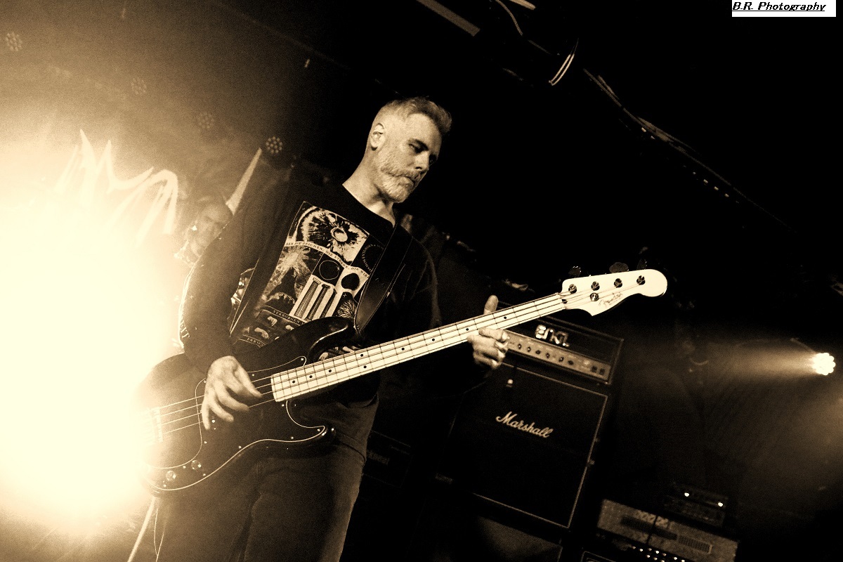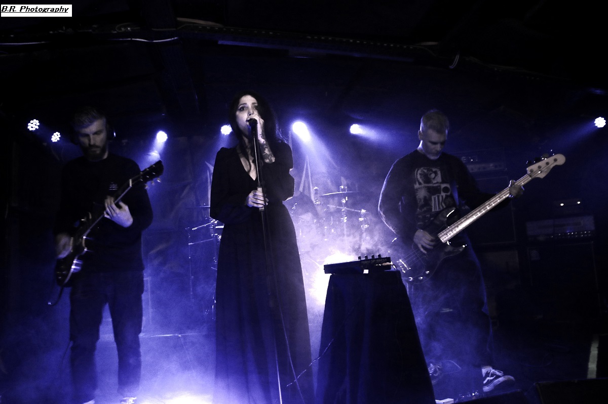 Au départ, PLUVIA c'est un duo formé par Mina Mescaline et Nicolas Gasparetto qui se présente en live sous forme de quatuor. Pluvia va nous interpréter ce soir les titres suivants : » No Cure for Silence », « Prayers », « The Black Sun », « Opale Insomnie », « Spoken Ghosts et « Ether », titres figurant sur leur EP éponyme de 2022 + Ether enregistré quant à lui en 2023. Beaucoup de samples atmosphériques suivis d'envolées rageuses et mélancoliques interprétées par une chanteuse, Mina, qui est vraiment possédée par ses textes, à fleur de peau pourrait-on dire ! A ses côtés les musiciens varient les plaisirs avec brio dans cet univers black et blackgaze, on aime ! DECIMA, aka « La Grande Œuvre Humaine » prend la suite sur scène avec ses capuchons et le visage caché des musiciens, c'est sombre. Un Decima nous propose un set en partie basé sur un nouvel album en préparation, à venir bientôt. Un Decima naviguant sur l’extrême entre black et death, entre post-black et dark metal avec force et persuasion même si le tout se révèle un petit peu linéaire durant le set. Un set dynamique pourtant entre dissonances bien senties et rythmiques inventives. Leur prestation de ce soir fut quand même remarquée et appréciée, affaire à suivre. Signé par Les Acteurs De l'Ombre Productions l'entité black-metal RüYYn était, semble-t-il très attendue sur scène après nous avoir interpellé à l'aide d'un excellent premier EP de 2021 intitulé « RüYYn » et puis avec en 2023 avec l'album « Chapter II : The Flames, The Fallen, The Fury ». Les titres de ce dernier enregistrement seront donc le sujet principal du set de ce soir à Lyon. Alors nous apprécions leur entrée en scène tonitruante, leurs effluves guerrières, les vocaux furieux et enragés qui me rappellent ceux d'un certain Erik Danielsson (Watain). Leur set se veut donc varié avec de longues parties instrumentales accrocheuses en diable. Et, comme sorties d'un brouillard permanent, les rythmiques vont et viennent du calme plombé eux déchaînements soudains faisant ressortir une certaine mélancolie sous-jacente. Bref, la prestation de RüYYn fut très variée, accrocheuse évidemment, envoûtante parfois, hypnotique toujours, on aime ! Merci à MoonFog Productions pour cette soirée hors du temps et de l'espace, merci aux trois formations en lice et merci au Rock n'Eat bien entendu ! |