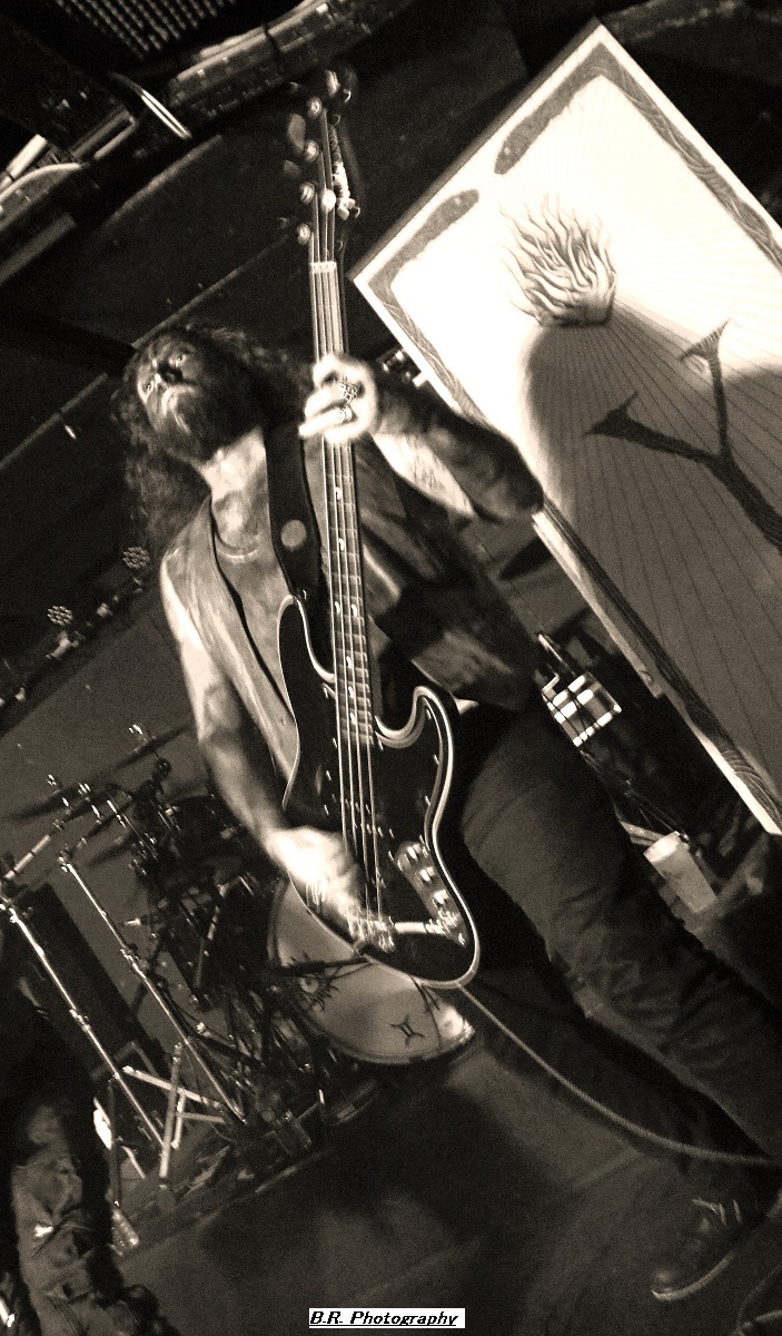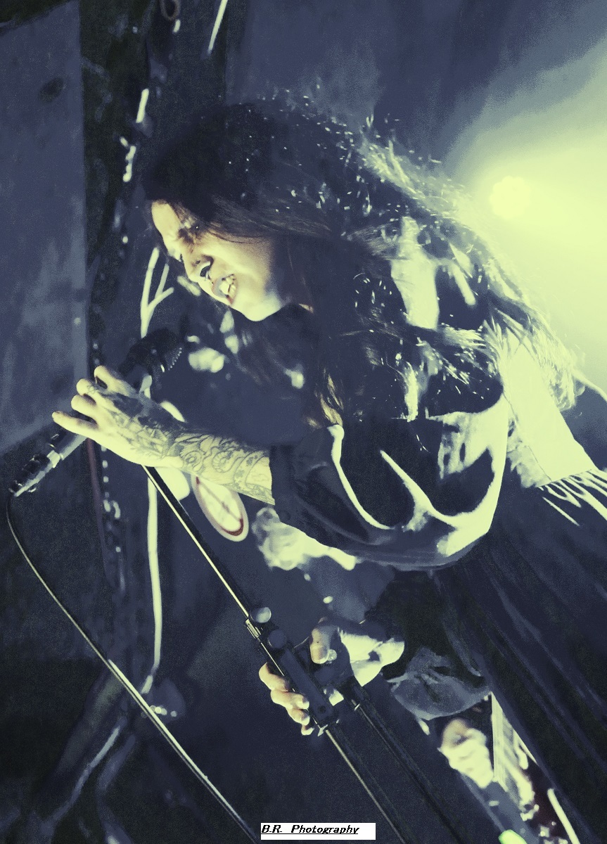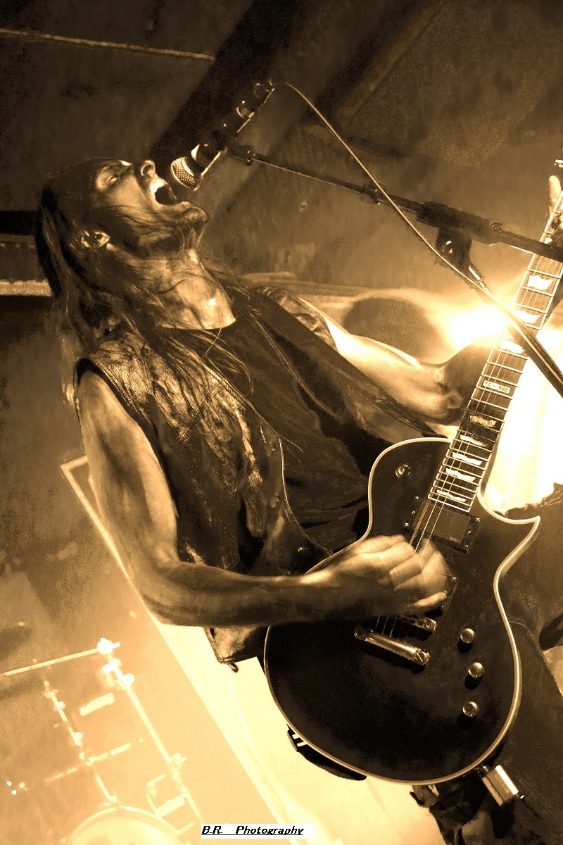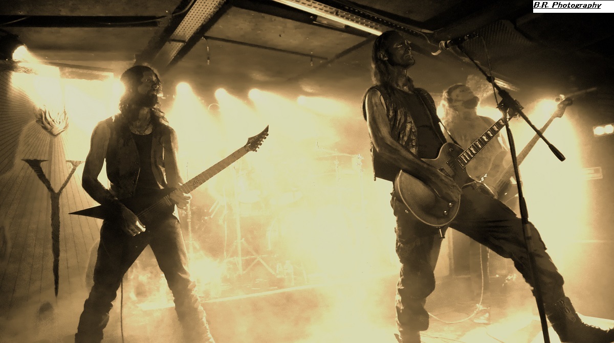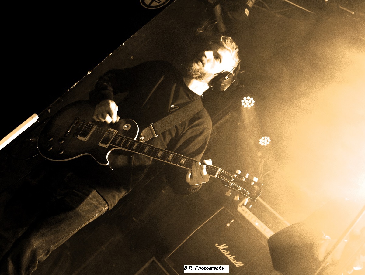 Au départ, PLUVIA c'est un duo formé par Mina Mescaline et Nicolas Gasparetto qui se présente en live sous forme de quatuor. Pluvia va nous interpréter ce soir les titres suivants : » No Cure for Silence », « Prayers », « The Black Sun », « Opale Insomnie », « Spoken Ghosts et « Ether », titres figurant sur leur EP éponyme de 2022 + Ether enregistré quant à lui en 2023. Beaucoup de samples atmosphériques suivis d'envolées rageuses et mélancoliques interprétées par une chanteuse, Mina, qui est vraiment possédée par ses textes, à fleur de peau pourrait-on dire ! A ses côtés les musiciens varient les plaisirs avec brio dans cet univers black et blackgaze, on aime ! DECIMA, aka « La Grande Œuvre Humaine » prend la suite sur scène avec ses capuchons et le visage caché des musiciens, c'est sombre. Un Decima nous propose un set en partie basé sur un nouvel album en préparation, à venir bientôt. Un Decima naviguant sur l’extrême entre black et death, entre post-black et dark metal avec force et persuasion même si le tout se révèle un petit peu linéaire durant le set. Un set dynamique pourtant entre dissonances bien senties et rythmiques inventives. Leur prestation de ce soir fut quand même remarquée et appréciée, affaire à suivre. Signé par Les Acteurs De l'Ombre Productions l'entité black-metal RüYYn était, semble-t-il très attendue sur scène après nous avoir interpellé à l'aide d'un excellent premier EP de 2021 intitulé « RüYYn » et puis avec en 2023 avec l'album « Chapter II : The Flames, The Fallen, The Fury ». Les titres de ce dernier enregistrement seront donc le sujet principal du set de ce soir à Lyon. Alors nous apprécions leur entrée en scène tonitruante, leurs effluves guerrières, les vocaux furieux et enragés qui me rappellent ceux d'un certain Erik Danielsson (Watain). Leur set se veut donc varié avec de longues parties instrumentales accrocheuses en diable. Et, comme sorties d'un brouillard permanent, les rythmiques vont et viennent du calme plombé eux déchaînements soudains faisant ressortir une certaine mélancolie sous-jacente. Bref, la prestation de RüYYn fut très variée, accrocheuse évidemment, envoûtante parfois, hypnotique toujours, on aime ! Merci à MoonFog Productions pour cette soirée hors du temps et de l'espace, merci aux trois formations en lice et merci au Rock n'Eat bien entendu ! |
