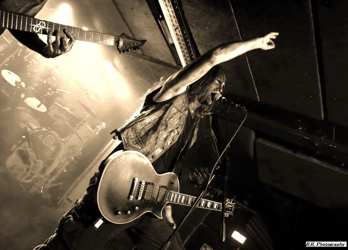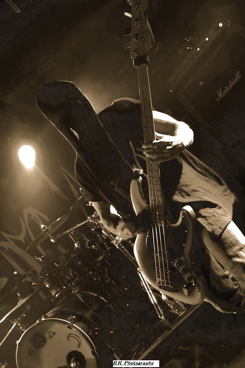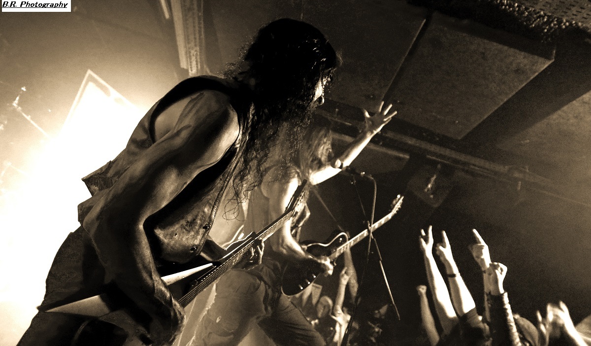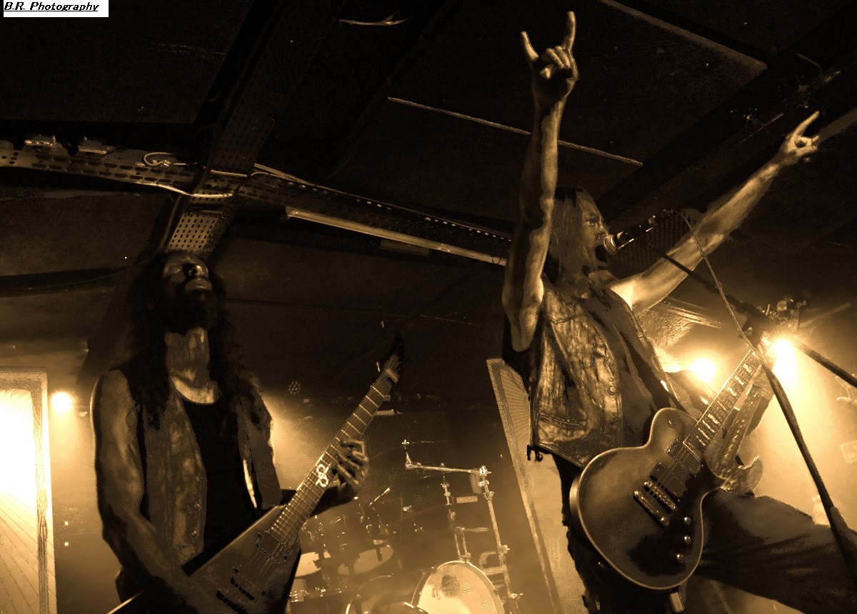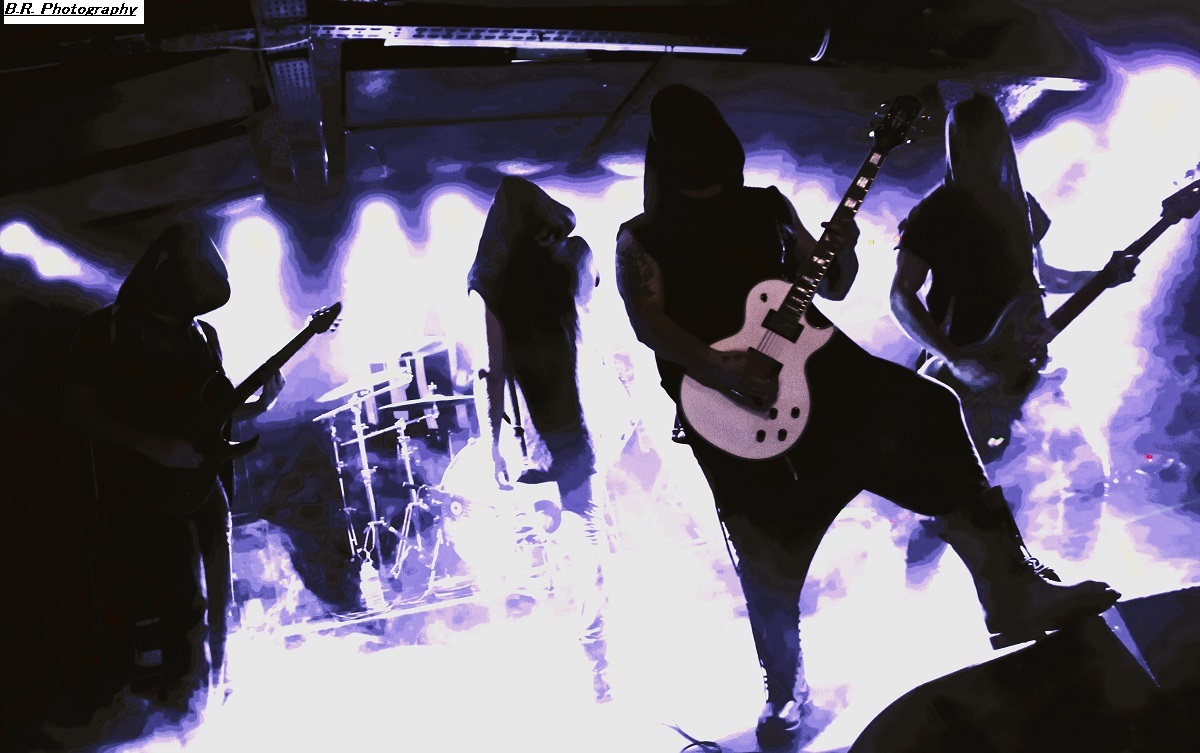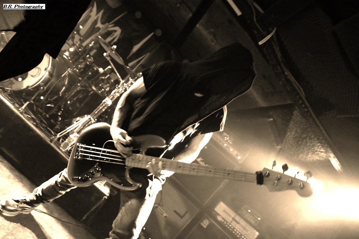 Au départ, PLUVIA c'est un duo formé par Mina Mescaline et Nicolas Gasparetto qui se présente en live sous forme de quatuor. Pluvia va nous interpréter ce soir les titres suivants : » No Cure for Silence », « Prayers », « The Black Sun », « Opale Insomnie », « Spoken Ghosts et « Ether », titres figurant sur leur EP éponyme de 2022 + Ether enregistré quant à lui en 2023. Beaucoup de samples atmosphériques suivis d'envolées rageuses et mélancoliques interprétées par une chanteuse, Mina, qui est vraiment possédée par ses textes, à fleur de peau pourrait-on dire ! A ses côtés les musiciens varient les plaisirs avec brio dans cet univers black et blackgaze, on aime ! DECIMA, aka « La Grande Œuvre Humaine » prend la suite sur scène avec ses capuchons et le visage caché des musiciens, c'est sombre. Un Decima nous propose un set en partie basé sur un nouvel album en préparation, à venir bientôt. Un Decima naviguant sur l’extrême entre black et death, entre post-black et dark metal avec force et persuasion même si le tout se révèle un petit peu linéaire durant le set. Un set dynamique pourtant entre dissonances bien senties et rythmiques inventives. Leur prestation de ce soir fut quand même remarquée et appréciée, affaire à suivre. Signé par Les Acteurs De l'Ombre Productions l'entité black-metal RüYYn était, semble-t-il très attendue sur scène après nous avoir interpellé à l'aide d'un excellent premier EP de 2021 intitulé « RüYYn » et puis avec en 2023 avec l'album « Chapter II : The Flames, The Fallen, The Fury ». Les titres de ce dernier enregistrement seront donc le sujet principal du set de ce soir à Lyon. Alors nous apprécions leur entrée en scène tonitruante, leurs effluves guerrières, les vocaux furieux et enragés qui me rappellent ceux d'un certain Erik Danielsson (Watain). Leur set se veut donc varié avec de longues parties instrumentales accrocheuses en diable. Et, comme sorties d'un brouillard permanent, les rythmiques vont et viennent du calme plombé eux déchaînements soudains faisant ressortir une certaine mélancolie sous-jacente. Bref, la prestation de RüYYn fut très variée, accrocheuse évidemment, envoûtante parfois, hypnotique toujours, on aime ! Merci à MoonFog Productions pour cette soirée hors du temps et de l'espace, merci aux trois formations en lice et merci au Rock n'Eat bien entendu ! |