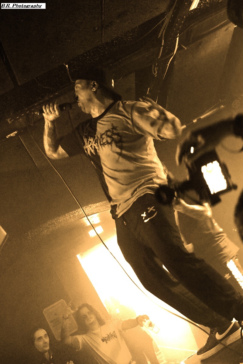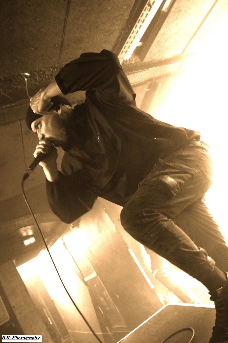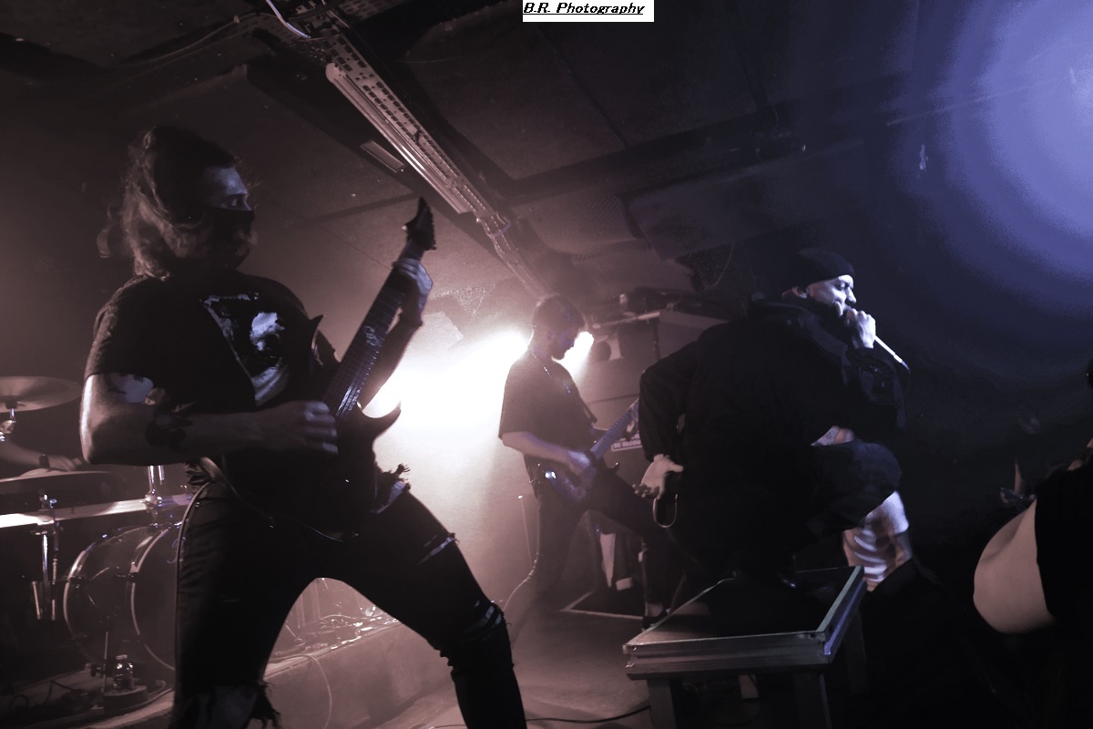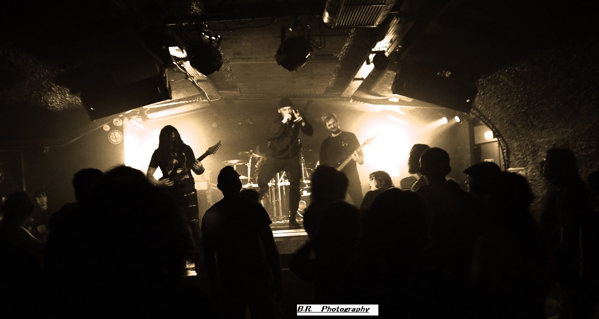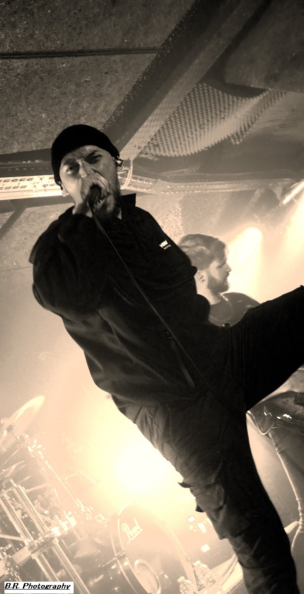 Après 3 ans de silence en live, ALKYMIA est de retour, et après avoir foulé la scène du Warmaudio le 10 mars dernier le groupe se présente à nous ce mardi soir afin d'ouvrir le petit bal donné par Hurakan, et Kanine. Devant nous 5 moines encapuchonnés et masqués évoluant dans une brume d'inspiration black-metal. Mais non, Alkymia reste ancré dans le deathcore mais en un peu plus sombre voilà tout. La nouvelle chanteuse ne ménage pas ses « growls » et ses musiciens font le job sans problème. Les titres de « Of Fire In Me » sont revenus devant nous et ce fus bien. KANINE semblait très attendu et ce fus le cas rien qu'à voir le public se presser devant la scène afin d'en découdre sous les coups de boutoirs deathcore remplis de break down bien méchants issus notamment des titres de « Damaged ». Alors, c'est du slamming brutal death metal ? Oui bien sûr et les musiciens ne se ménagent pas en live avec en première ligne un chanteur quyi en fait des tonnes devant-nous. Mais c'est quand même un peu linéaire avoue-on-le même si c'est d'une efficacité redoutable sur les planches. Alors inutile de vous présenter le décor devant la scène, effusions physiques dans tous les ens, sueur et chaleur étant au rendez-vous, prestation énergique donc qui remue les foules ! HURAKAN prend la suite dans un registre équivalant à ses prédécesseurs avec sous ses bras son dernier enregistrement le single « Cold Heart » faisant suite au très bon album « Via Aeterna » de 2022. Les Parisiens font un clin d'oeil notamment à Lorna Shore et autre Thy Art Is Murder, voilà pour présenter leur slam deathcore brutal et souvent lourd de conséquences. Le rythme est fulgurant aussi, l'atmosphère plombée, mais comme Kanine une certaine linéarité se fait jour lors de leur set pourtant bien musclé avoue-on-le, et ce malgré le mélange de riffs saccadés et de cris cauchemardesques. Résultat des courses une prestation honnête, les fans du genre y ont trouvé leur compte ce soir et c'est tant mieux ! Merci donc aux trois formations en lice qui ont fait trembler encore une fois le Rock n'Et de Lyon que nous remercions bien évidemment pour son accueil. |