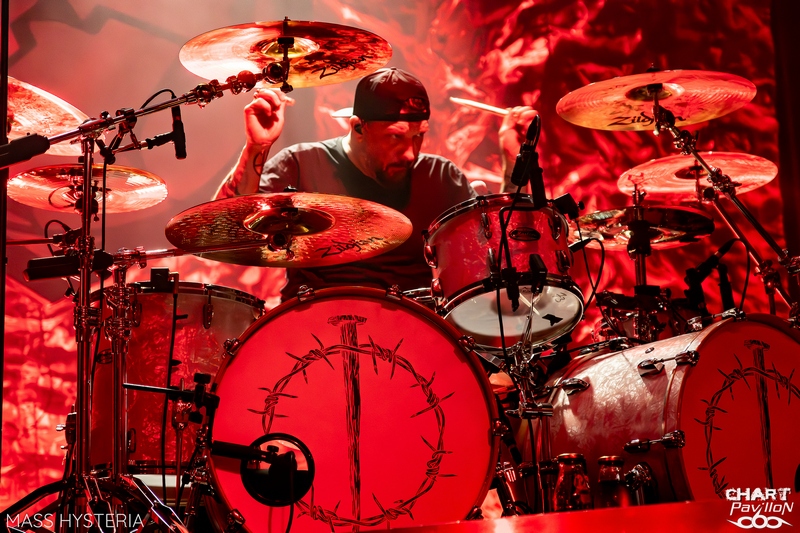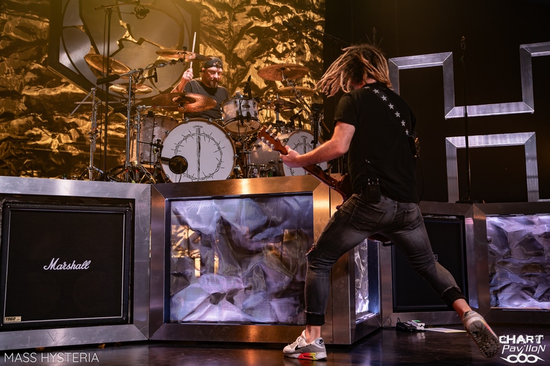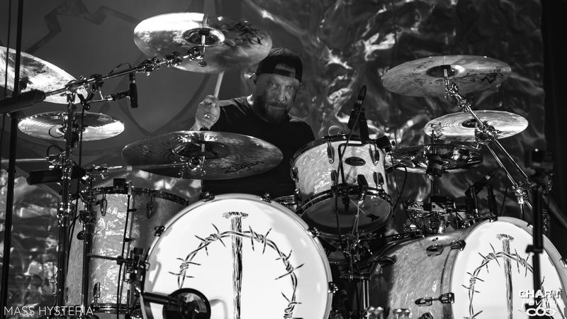 C'est avec l'étrange impression de ne pas avoir mis les pieds dans cette salle depuis longtemps que je me rends à ce concert dans la salle du Fil à Saint-Étienne. Le dernier gros concert de metal qui a eu lieu au Fil était celui de CULT OF LUNA en octobre 2023. Il me semble que le rythme des concerts metal était un peu plus soutenu à l'époque. Cela explique sans doute en partie pourquoi la ferveur de ce soir est telle. Certes, la raison principale est sans conteste la présence de MASS HYSTERIA dans ces murs. À chacun de ses passages, le groupe frappe fort, mais il y a ce soir un petit truc en plus, comme si l'envie de lâcher la bride était décuplée par une plus grande rareté des concerts metal et peut-être aussi un contexte général favorable à l'envie de faire exploser sa fureur en fin de semaine. Une bien belle manière de commencer le weekend.