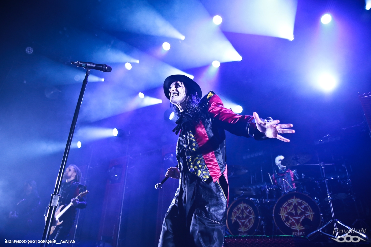 En ce mois de mars 2024, le groupe ne boucle pas moins de 11 dates dans notre pays, une tournée pratiquement sold-out et saluée de façon unanime par les critiques et le public. Preuve que les groupes qui tentent des tournées, comme Ghost l’année dernière sont dans le vrai. C’est bien sympa de ne faire qu’une date à Paris et sûrement plus facile, mais ça ne touche pas les fans de la même façon. Espérons que d’autres pointures prendront exemple. Revenons à ce 16 mars et à cette salle de Ris-Orangis, Le Plan. J’aime beaucoup ces lieux à taille humaine (un peu plus de 800 places), facile d’accès, ou tout le staff est cool et prévenant. Un vrai bonheur que ce lieu. Le groupe Urne ouvre les hostilités vers 20 h. Le trio anglais de Stoner/Sludge à mis un peu de temps à se faire aimer par un public tout impatient de saluer nos Suédois. Toutefois, la lourdeur des riffs et le charisme du chanteur/bassiste ont finalement réussis à faire souffler la tornade dans la fosse. À noter que leur album est produit par Joe Duplantier, notre gloire metallique et comme tout le monde le sait, Joe a toujours raison. Personnellement, j’ai passé un bon moment, Urne est à découvrir si vous aimez les riffs lourds et techniques ainsi que les mélodies mélancoliques et prenantes. Let’s begin « The Great Metal Circus » d’Avatar et deux heures d’un show fou et théâtral mené par un animal de scène qu’est Johannes Eckerström. Un chanteur exceptionnel aux capacités inouïes, capable d’une grande rage tout en faisant preuve de beaucoup d’émotions. Ce qui est remarquable avec Avatar (comme Ghost d’ailleurs), c’est que le spectacle est complet, soigné, écrit, tout comme le light show et la scénographie qui sont à la hauteur, bref, on en a pour son argent. Le show est impeccable et le public répond à chaque sollicitation des musiciens virtuoses. La set-list est évidemment axée sur le dernier album « Dance Devil Dance » qui n’est pas le meilleur à mon goût, mais évidemment les grands classiques que sont « Puppet Show », « Bloody Angel » ou encore « Hail the Apocalypse » seront joués et déchaîneront une fosse électrique et en sueur tant la chaleur a monté crescendo durant la soirée. Le groupe nous quitte avec le sourire et nous applaudit, mais c’est nous qui remercions nos 5 suédois pour ce moment intense qu’ils viennent de nous offrir. Avatar ne compte pas ses efforts pour son public et récolte une gloire amplement méritée. Merci à Marion et aux équipes du Plan ainsi qu’à Olivier de Replica. |