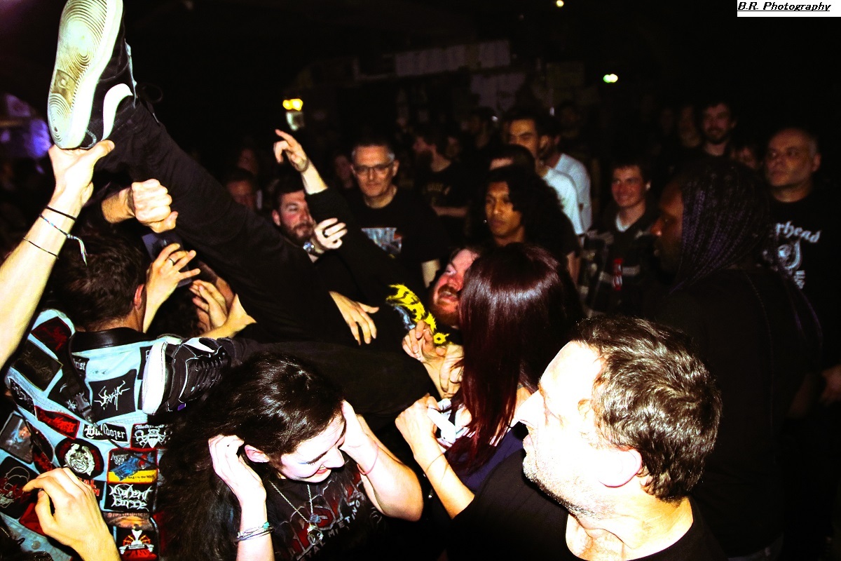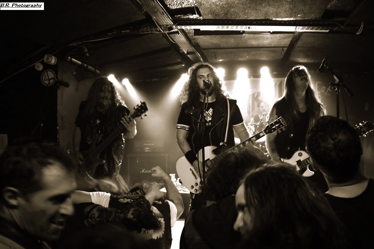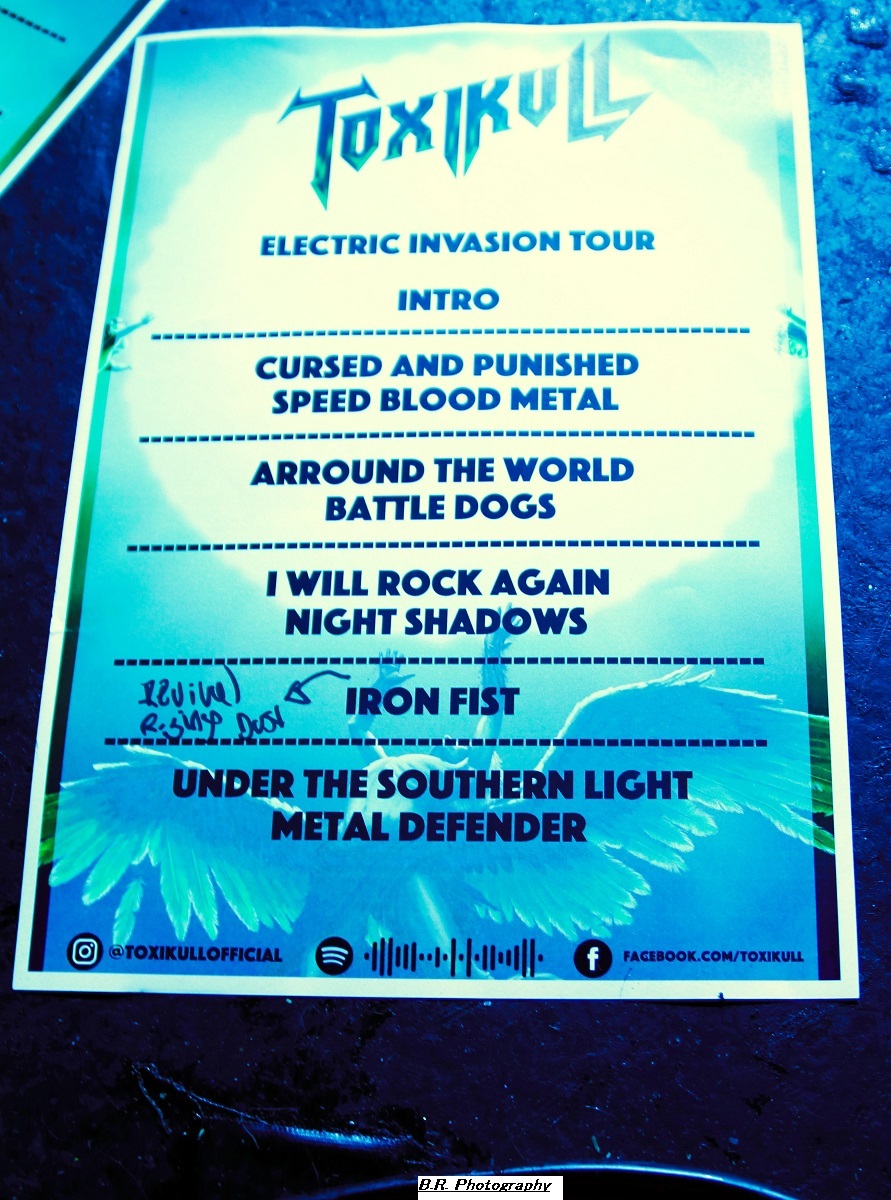 C'est donc parti dès 19heures 30 avec STAR RIDER qui d'entrée de jeu va placer la barre bien haute. Et ce avec des riffs qui tuent (certains dirons que c'est du rock, du hard alors, hein les hardos comme on disait dans les années 80 ?) Une voix haut perchée, un duo basse batterie qui « speed », nos Grenoblois ne résistent pas à l'envie de nous proposer, après un premier EP remarqué, des titres du nouvel album qui paraîtra incessamment si les dieux du heavy le veulent bien. Sur scène avec Star Rider pas d'ennui en vue, ça bouge, ça joue dans tous les sens mais avec brio, ces petits gars vont aller loin ça c'est sûr. Ces soir ils ont chauffé à blanc un public de passionnés et de motivés sans oublier leur fan club venu de l'Isère voisine. Alors, que dire ? Que ce fus bien bon évidemment, nous avons aimé ce tsunami heavy revival ! Place maintenant à nos amis de Linz en Autriche qui vont nous démontrer de quel heavy metal ils se chauffent. Première constatation, c’est bien speed et nous percevons des relents de ce qui se faisait, au début des 80's avec un mix inspiré par Judas Priest, Maiden, ou encore Jag Panzer et autre Angel Witch. Alors nous dirons que si sur CD c'est bien senti et bien enregistré (Echoes from The Gutter, l'album de 2022), en live ça passe un peu moins bien même si les vocaux sortent du lot. C'est un peu statique tout simplement et le groupe aura un peu du mal à s'imposer et faire bouger une assistance qui venait de s'éclater avec le groupe précédent.Pour ce groupe nous attendons la suite de leur aventure une suite un peu plus accrocheuse, mais le talent aidant nul doute que leur parcours puisse atteindre le but d'une certaine reconnaissance dans ce monde qui « redécouvre » un certain heavy-metal (la relève quoi!) amen. Avec les Lusitaniens TOXIKULL de la péninsule Ibérique on découvre un heavy-metal un peu plus lourd (sic) aux dérapages un peu plus thrash, un mix qui remporte l'adhésion d'un public qui ne tarde pas à s'envoyer en l'air. Avec sous leurs bras un nouvel album paru en Février dernier et intitulé « Under The Southern Light » le quatuor de sud de Lisbonne nous démontre qu'il sait « varier les plaisirs » à l'aide de compositions variée (aussi) comprenant du binaire plombé, des envolées speed et même des parties power-prog, sans oublier « la' » ballade captivante d'émotions. Bref, Toxikull mine de rien progresse à grands pas et ses compositions font un malheur en live comme ce soir à Lyon où le groupe nous a carrément « estomacé », peut-être pas le qualificatif exact mais très bien imagé. Belle découverte en ce qui me concerne, à revoir encore et encore ici ou ailleurs ! Merci aux organisateurs Turbo Lovers pour cette affiche métallique en diable, merci au Rock n'Eat pour l'accueil toujours au top niveau et merci aux trois formations en lice pour avoir explosé la scène. Fin des concerts à 23heure et ensuite vous avez droit à un « after » jusqu'à tard dans la nuit avec le célèbre DJ Bobby Habiday et ses brûlots des 80's. |