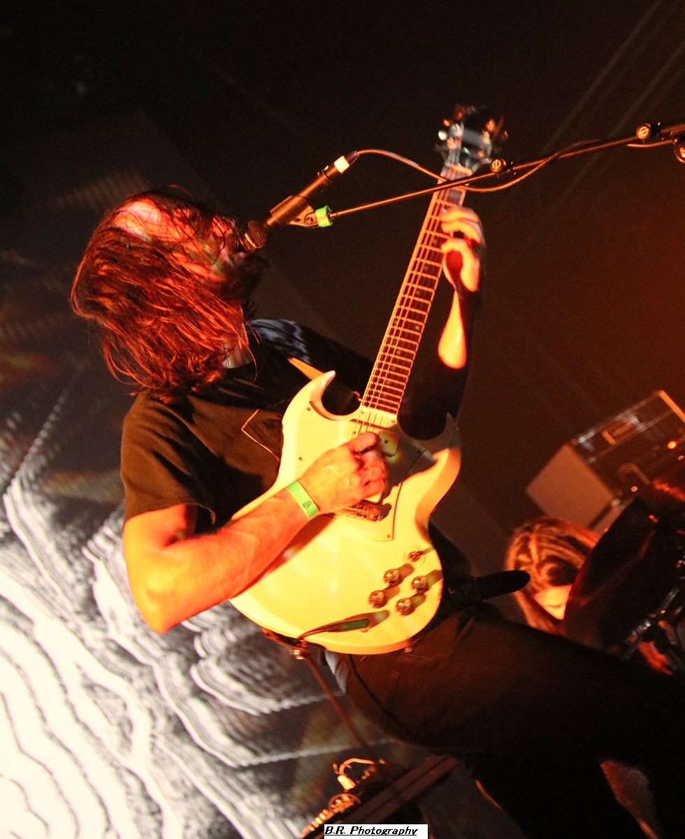 KARKARA donne le ton de la soirée en ouverture avec son rock psychédélique rempli de fuzz et dérapant dans un certain post-stoner avec bien sûr des lights bien sentis afin de mieux nous faire voyager dans un certain space-rock. Avec sous leurs bras un nouvel album de 2024 intitulé « All is Dust », Karkara bonifie les titres en live et ne cesse de bousculer nos neurones depuis 2019 avec auparavant nous avoir interpellé grave grâce à « Crystal Gazer » (2019) et « Nowhere Land » paru en 2020. Karkara n'oublie pas de s'aventurer en terres inconnues sans pour autant oublier ses fondements binaires, rock si vous voulez. Alors le plancher de la scène vibre, tremble, c'est intense, lourd et aérien à la fois, hypnotique aussi, on aime le voyage proposé et l'on vibre avec les musiciens, fameux ! SLIFT quant à lui a décidé d'enfoncer le clou d'un certain rock à l'aide de projections incroyables et envahissantes. Et tout cela accentue notamment les titres de leur nouvel, et 3ème album intitulé « Ilion » prétexte à leur tournée actuelle souvent à guichets fermés. Alors, pourquoi ces Toulousains tiennent-ils le haut du pavé dans une voie usitée depuis leur premier EP paru en 2017 ? Eh bien nous allons dire que le trio occitan mixe à merveille le rock psyché avec des dérapages metal et s’enfonçant régulièrement dans un chemin post-rock où la férocité d’exécution ressemble parfois à un tsunami dérangeant notre écoute pré-digérée. Et notre moi intérieur en prend un coup afin de nous sortir d'un stoner-rock classique et bien rassurant. Avec Slift nous sortons donc des sentiers battus du rock tout simplement et ce soir le public l'a bien compris et ce fus bien, très bien même, incroyable en intensité, amen ! Merci à l'Epicerie Moderne pour l'accréditation accordée à Pavillon666, merci aux deux combos Toulousains dont les prestations ont enflammé la salle de Feyzin, nous reviendrons ! |