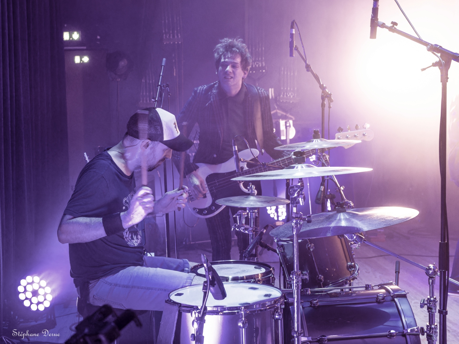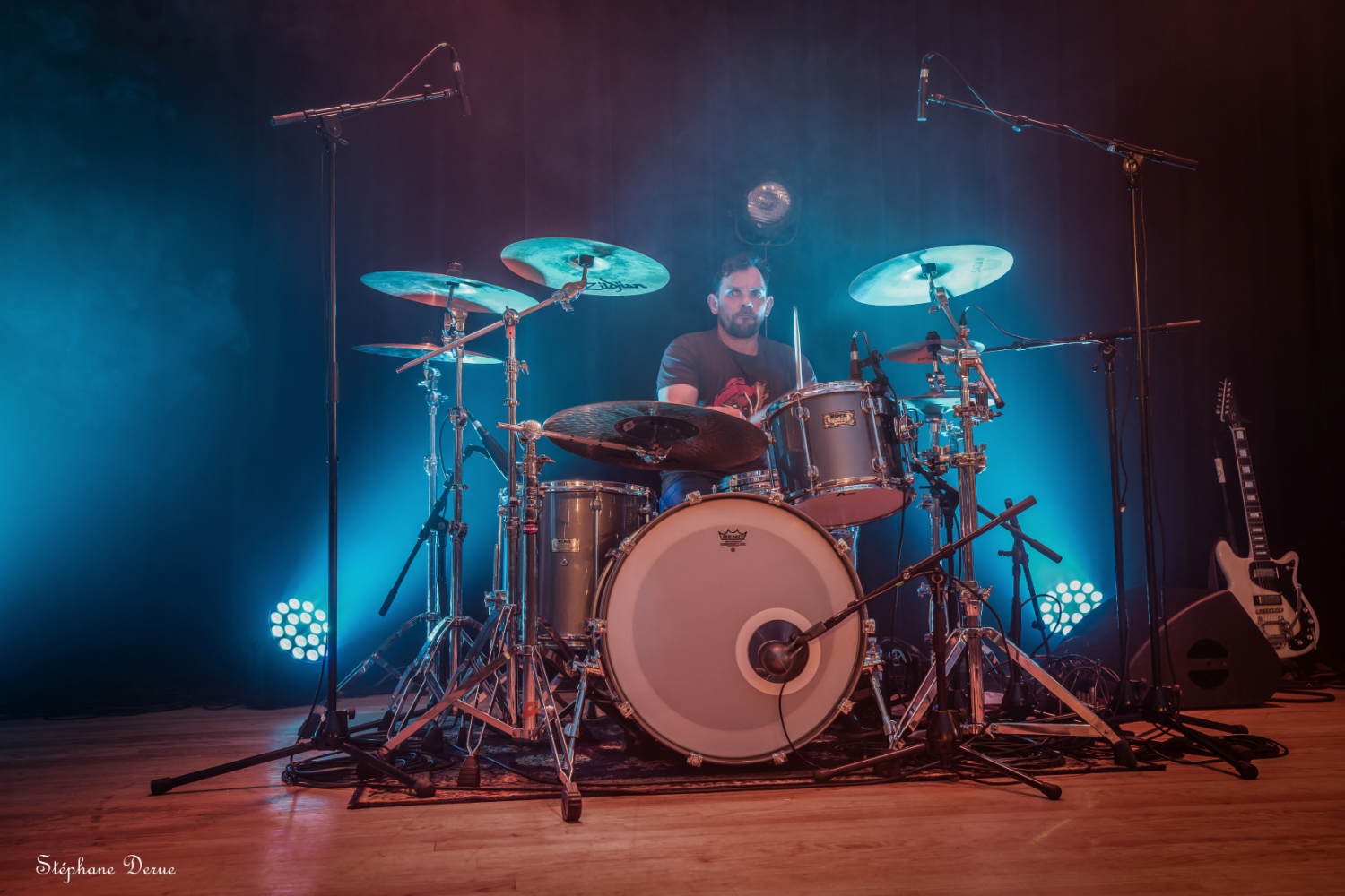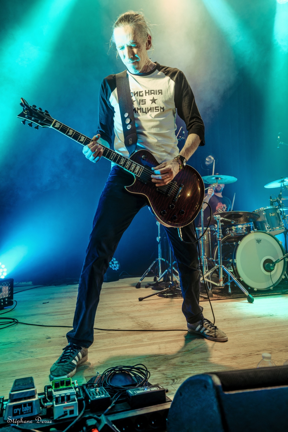La Ville de Vernouillet avait mis à disposition samedi 06 avril la salle de l’Agora pour une soirée dédiée au punk-rock. Malgré une affluence décevante, le spectacle a été au rendez-vous et le public présent a pu passer une excellente soirée. Pour commencer, je tiens à féliciter les techniciens pour la grande qualité du son et des lumières. Les 2HEADED DOG ont eu l’honneur d’ouvrir le bal et avec eux, on est sûr de ne pas avoir de round d’observation. Dès les premières notes on est dans le vif du sujet. Les nouvelles compositions ont tout pour plaire au public ; du rythme, de la rage et une technique toujours aussi implacable. Les anciens titres ont été retravaillés ce qui permets de les redécouvrir sous un angle différent. Les trois voix parfaitement harmonisées, la marque de fabrique des 2HD, donnent une profondeur et une richesse incroyable. Anthyme à la basse et Julien à la batterie assurent une section rythmique sans faille qui pose sur chaque titre une empreinte titanesque. C’est puissant, intense et très technique. Olivier et Djess aux guitares, alternent riffs rageurs, solos décoiffant et rythme frénétique. Un set d’une grande maîtrise. MUGSLUG, qui vient tout juste de sortir son excellent deuxième album « when people eat people », prend le relais sur scène. Le trio n’est pas venu pour chanter des berceuses. Le rouleau compresseur est lancé. Avec un Bastien des grands jours à la batterie et un Cyril survolté à la basse, les vibrations vont secouer les carcasses du public. Pas vraiment ambiance bol tibétain avec eux, mais plutôt orgue de Stallone (oui j’ai préféré changer subtilement le nom pour éviter toute récupération politique). Mister Fred Charp à la guitare et au chant, c’est du lourd ! du très lourd !! La voix est puissante, la bouche tordue, les yeux révulsés, Fred hurle sa colère avec une sincérité touchante. Là encore, les nouveaux titres se mêlent aux anciens pour le bonheur du public. Une décharge d’adrénaline pendant près d’une heure. Le bonheur quoi ! Pour finir cette belle soirée, ECHO LOGIC All investit les planches pour proposer un punk trash-core explosif. Aurélie ne fait pas dans la dentelle. Sa voix est percutante, d’une puissance incroyable. A côté, j’ai l’impression de ne pas avoir muer, un coup à choper des complexes. Elle arpente la scène de long en large, saute, virevolte, s’amuse et c’est vraiment agréable la voir se donner sans retenue à son public. Les deux guitares forment un duo de choc plein de force et de talent. La basse bastonne férocement dans une sorte de combat épique avec une batterie monstrueuse. Le bilan de la soirée se résume en un mot : Bonheur ! Les sourires des spectateurs comme ceux des musiciens montrent à quel point le plaisir est partagé. Le public était chaud patate et les groupes ont donné le meilleur d’eux-mêmes. Une recette simple mais ô combien efficace. Hâte de revivre une soirée de cette qualité, merci aux organisateurs et la Ville de Vernouillet de permettre aux talents locaux de pouvoir s’exprimer. Stef |