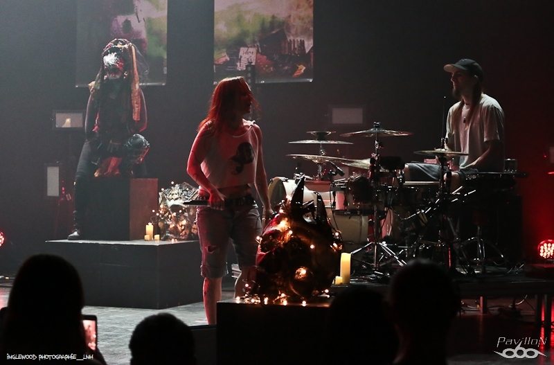 L'affiche regroupait nombre de groupes de qualité aussi les 2 salles que propose leur complexe n'ont rencontré aucune difficulté à trouver leur public ce premier doux et non pluvieux samedi de l'année. La Nébuleuse d’Hima fut la première à prendre place sur la scène de la grande salle. Ce groupe de fusion fort des influences différentes de chacun de ses membres propose en live un cocktail explosif, entre le flot de Faustine, les scratchs de Balre, les uppercuts de Max et les accords métalliques de Bro Lee, on ne peut être qu'emporté par la vague, en immersion dans le monde du groupe. Les compositions prennent vie lors des concerts grâce au jeu théâtral de Faustine, aux parties inédites que les musiciens rajoutent en live et à la présence sur scène d'une des créatures fantastiques, Nebula, créé par le collectif. C'est un spectacle complet qui nous fut proposé et qui a conquis le public venu en nombre. L'excellente programmation a ensuite continué avec Wild Mighty Freaks dans le Club et euh, il est y faisait une chaleur incroyable et l'accès était... très compliqué ! La salle est vraiment plus petite que l'autre, ce qui n'est pas le cas de la popularité des groupes qui s'y sont succédés. Il faut dire aussi que les horaires des concerts n'aident pas à la circulation pour ceux qui ne veulent manquer aucun groupe. À peine l'un est-il fini que l'autre commence. Le public n'a pas 5 min pour changer de salle, commander une boisson, se restaurer ou prendre l'air et on ne vous parle même pas des animations gratuites qui ont lieu pendant les concerts. Bref, le concert fut torride et pas seulement parce que la salle accueillait très probablement plus de spectateurs qu'elle ne l'aurait dû, le groupe envoi du lourd et accroche tout le monde. Les compositions sont entraînantes et il est impossible de ne pas avoir envie de danser dessus. Le chanteur est bon meneur de salle et nous laisse cois quand il nous apprend être malade, cela ne s'est nullement ressenti et le concert fut une énorme réussite. Retour dans la grande salle pour rejoindre Horskh et son metal industriel. Le trio nous apparaît sous la forme d'ombres apocalyptiques tout droit venues de l'enfer pour se repaître de nos âmes. Leurs contours nous sont dessinés par un jeu de lumières stroboscopiques émanant du fond de la scène et qui pulse au rythme des morceaux. Le trio déploie une énergie communicative et entraîne le public dans une transe sombre et puissante, ponctuée de temps forts comme celui où les trois membres jouent des percussions simultanément, grisant. Nous manquons le set de Violence pour nous aérer un peu mais également prendre le temps d'échanger quelques mots avec certains des artistes ayant déjà performé et qui sont désormais présent sur leur stand de merch. Nous réintégrons la grande salle pour découvrir Resolve et ouah, la claque. Les musiciens sont lookés et respirent l'assurance. Le set démarre et de suite, on se projette à se dire qu'on verrait bien le groupe assurer les premières parties d'une tournée française d'Architects. Comme quoi, il est encore possible que des groupes qualitatifs, existant depuis 8 ans et ayant 2 albums à leur actif puisse nous être resté inconnu. C'est pour ce genre de pépite que l'on a plaisir à venir aux festivals. Sous le metalcore entrainant et dynamique de Resolve, la fosse voit naître des mouvements qu'elle n'avait pas encore connu ce samedi avec l'apparition de slammeurs. Anthony, le charismatique chanteur serrera la main de plus d'un à leur approche de la scène et c'est bien classe, mais là, quelque chose nous choque. Que font les agents de sécurité ? Pourquoi n'y en a-t-il aucun entre la barrière et la scène pour récupérer ces festivaliers ? Le mystère reste entier. Quoi qu'il en soit, le concert passe à une vitesse folle et on en vaudrait plus. L’ambiance du club est devenue muy caliente très rapidement après la montée sur scène de Locomuerte. J’avais ce groupe dans mon viseur depuis un moment à force de voir ces graphismes latino un peu partout dans la région. Vous dire que je suis le client parfait pour Locomuerte serait un euphémisme, je suis fan de Suicidal Tendencies depuis toujours et je pense que los hombres del grupo le sont également. Une fiesta incroyable par des musiciens survoltés et lookés impeccablement dynamités par un public en transe, je n’ai pas de mots, c’est excellent. Du mosh de qualité !! J’avais eu une belle impression du groupe Novelist au Hellfest 2022, mais je savais que ce ne serait plus pareil du fait du départ de Tobias Rische au chant remplacé en 2023 par Camille Contreras. De plus, le second guitariste Pierre Danel était absent sans que l’on ne nous en ait donné la raison… Musicalement, le metalcore léché et technique est vraiment séduisant et Camille est lumineuse sur scène tout en étant impressionnante vocalement. Petit bémol sur la scénographie. La scène est vide et paraît immense pour les 3 musiciens devant la batterie. Le concert passe vite, c’est fluide et percutant, les titres accrochent bien, un groupe qui se reconstruit, mais qui promet beaucoup. Le bilan de cette première journée est plutôt positif malgré les quelques bémols déjà évoqués. Trop intéressés par les concerts programmés sur la journée du samedi, la seule chose que l'on peut vous rapporter des activités gratuites disponibles dans le hall, c'est qu'elles imposent aux vigiles de contrôler les billets/tampons de chaque personne à chaque fois qu'elle se présente à l'entrée des deux salles à chaque concert... alors qu'ils auraient été utiles ailleurs. |