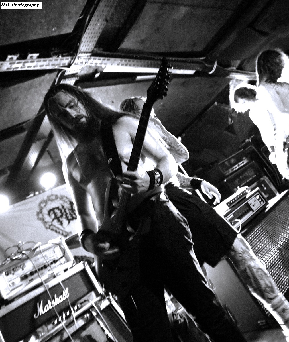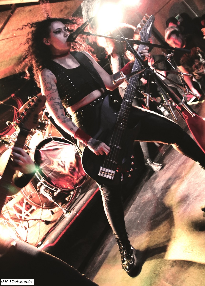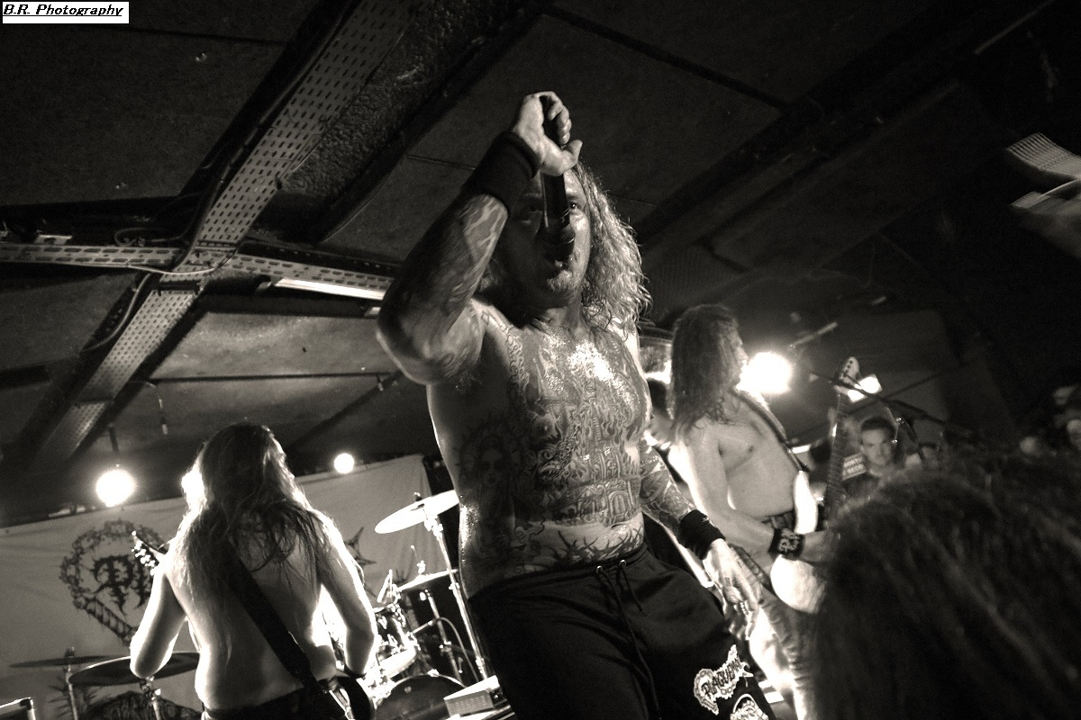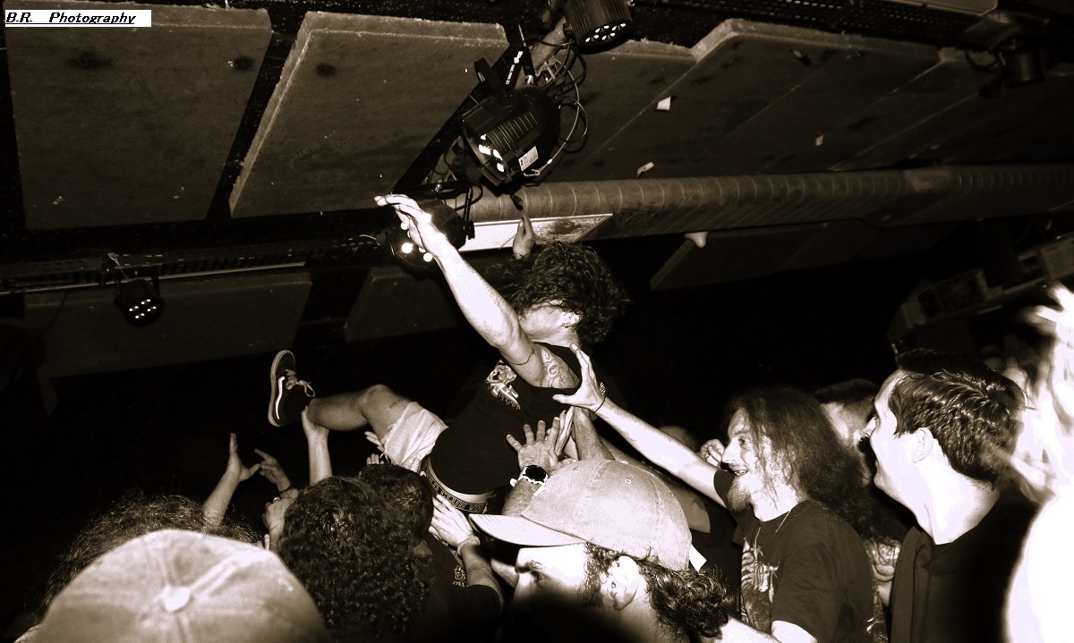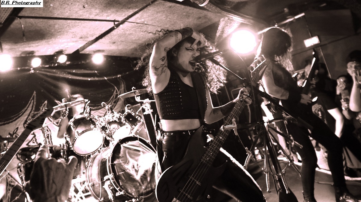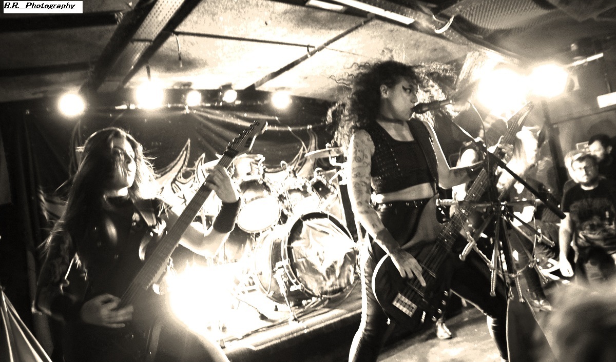 C'est à 20 heures pile que ceux de PLAGUEMACE investissent la scène afin de nous envoyer en pleine face leur death-metal avec une énergie peu commune avec un son à décorner un troupeau de bisons en rut. Assez nouveau sur la scène du metal-de-la-mort-qui-tue (un EP en 2020 et un premier album « Reptilian Warlords » paru fin 2023) nos amis Danois nous interpellent grave. Leur son est bien travaillé dans une veine old-school et les dérapages thrash mettent le feu aux poudres. Et, tel un bulldozer de metal extrême le groupe nous écrase de puissance et de vélocité parfois teintée d'un certain humour latent. Les musiciens s'envoient en l'air et le frontman intenable finit dans le public en nous détruisant ce qu'il nous reste de neurones. Quelle claque mes amis, ce fut tout simplement énorme et les 45 minutes passées en leur compagnie furent un régal pour les yeux et les oreilles ! Dur de prendre la suite de l'ouragan Plaguemace, mais leurs compatriotes de NAKKEKNAEKKER vont s'en sortir haut la main quand-même. Ceux de Silkborg bien que formés récemment (2020) vont faire à nouveau réagir le public à l'aide de compositions, certes classiques du death, mais néanmoins agrémentées de dérives aventureuses notamment avec des tricotages guitaristiques bien vicieux. Mais leur fond de commerce reste ce metal extrême en folie cheveux eu vent (et démolisseur de cous) et le matraquage binaire qui ne peut que faire remuer un public chaud comme la braise. Nous avons donc eu a faire à une jeune formation qui en veut avec la fougue de la jeunesse. Ils ont assuré ce soir et je pense que tout le monde ici a apprécié leur prestation. Et voici, voilà, l'arrivée devant nous de Fernanda Lira (ex-Nervosa) et sa bande nommée CRYPTA. Cinq filles qui vont se faire écraser devant la scène un public en folie tout acquit à leur cause. Voici donc du death metal qui flirte par endroits avec le black. Pour l'anecdote, déjà en début de soirée une file d'attente s'était formée au stand de merch afin de faire des selfies avec Fernanda qui est bien connue et appréciée dans le monde metal ! Le set des Brésiliennes s'annonçait donc gagné d'avance avec un public impatient de voir Crypta en live pour la première fois à Lyon. Alors dès les premiers titres ce fut un décharnement incroyable devant la scène et dire que le set fut très mouvementé relève d'un doux euphémisme. Afin de promouvoir leur second album « Shades Of Sorrow » (2023) aussi bon que le premier selon la critique, les musiciennes n'y vont pas avec le dos de la cuiller malgré un son ps trop favorable, et Fernanda retourne un public avide se de voir aussi ses mouvements scéniques et ses provocations. Tout est au top niveau technique avec une mention spéciale (en ce qui me concerne) pour Luana incroyable derrières ses fûts. Crypta sait mélanger à merveille les parties relativement mélodiques et inquiétantes avec des accès de brutalité hurlante. Et ce mix va ensorceler un public complètement acquit au groupe (bis), Ce fut donc puissant, mortel et apocalyptique en même temps, amen ! Merci à Sounds Like Hell Productions pour cette soirée placée sous le signe du metal extrême. Merci également aux trois formations en lice qui se sont données à fond sur les planches du Rock n'Eat que nous remercions bien entendu pour l'accueil toujours au top niveau. |