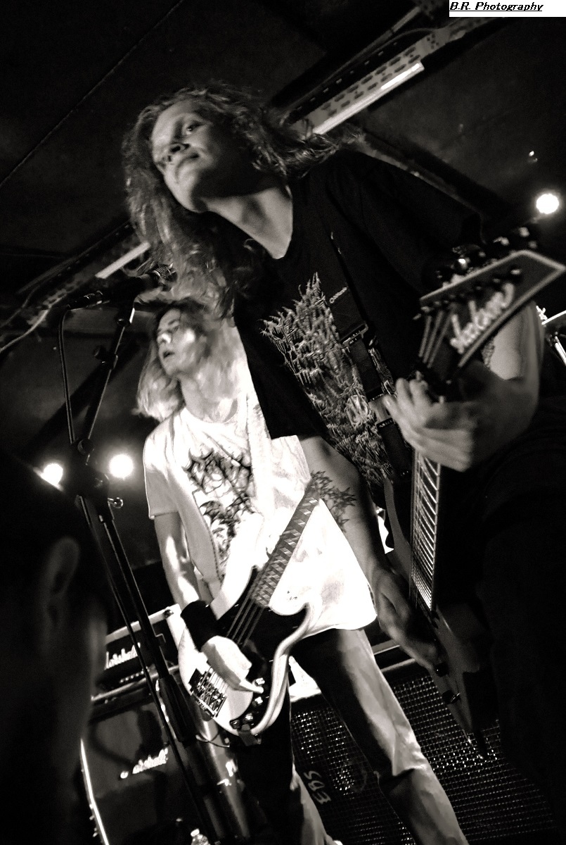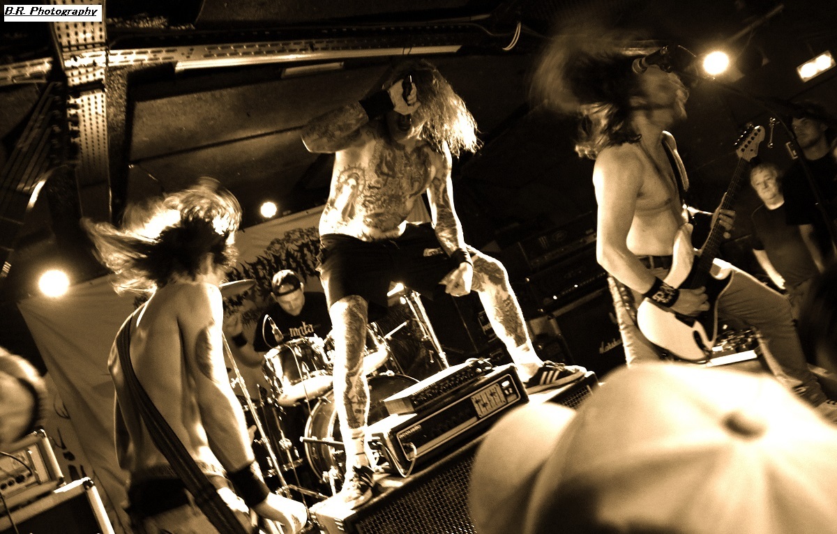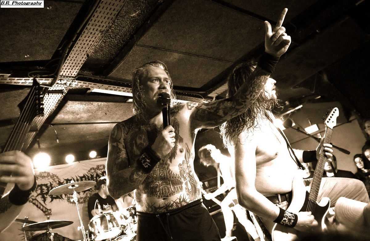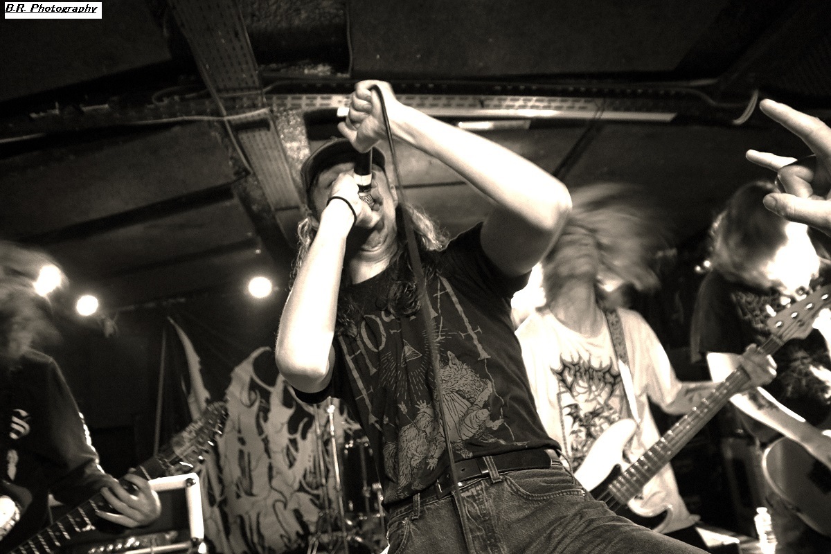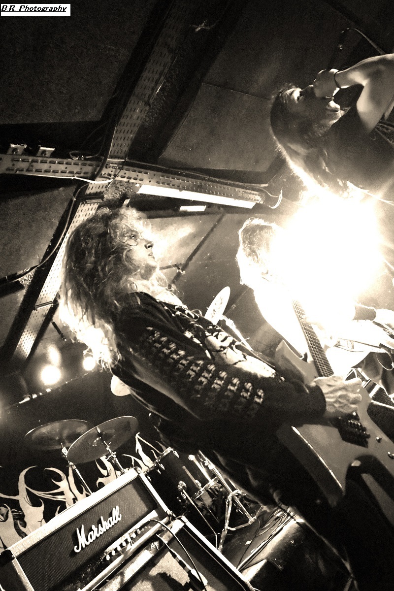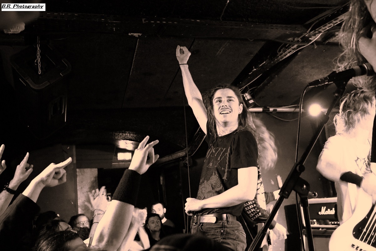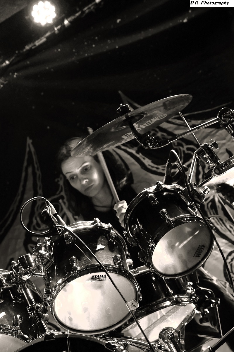 C'est à 20 heures pile que ceux de PLAGUEMACE investissent la scène afin de nous envoyer en pleine face leur death-metal avec une énergie peu commune avec un son à décorner un troupeau de bisons en rut. Assez nouveau sur la scène du metal-de-la-mort-qui-tue (un EP en 2020 et un premier album « Reptilian Warlords » paru fin 2023) nos amis Danois nous interpellent grave. Leur son est bien travaillé dans une veine old-school et les dérapages thrash mettent le feu aux poudres. Et, tel un bulldozer de metal extrême le groupe nous écrase de puissance et de vélocité parfois teintée d'un certain humour latent. Les musiciens s'envoient en l'air et le frontman intenable finit dans le public en nous détruisant ce qu'il nous reste de neurones. Quelle claque mes amis, ce fut tout simplement énorme et les 45 minutes passées en leur compagnie furent un régal pour les yeux et les oreilles ! Dur de prendre la suite de l'ouragan Plaguemace, mais leurs compatriotes de NAKKEKNAEKKER vont s'en sortir haut la main quand-même. Ceux de Silkborg bien que formés récemment (2020) vont faire à nouveau réagir le public à l'aide de compositions, certes classiques du death, mais néanmoins agrémentées de dérives aventureuses notamment avec des tricotages guitaristiques bien vicieux. Mais leur fond de commerce reste ce metal extrême en folie cheveux eu vent (et démolisseur de cous) et le matraquage binaire qui ne peut que faire remuer un public chaud comme la braise. Nous avons donc eu a faire à une jeune formation qui en veut avec la fougue de la jeunesse. Ils ont assuré ce soir et je pense que tout le monde ici a apprécié leur prestation. Et voici, voilà, l'arrivée devant nous de Fernanda Lira (ex-Nervosa) et sa bande nommée CRYPTA. Cinq filles qui vont se faire écraser devant la scène un public en folie tout acquit à leur cause. Voici donc du death metal qui flirte par endroits avec le black. Pour l'anecdote, déjà en début de soirée une file d'attente s'était formée au stand de merch afin de faire des selfies avec Fernanda qui est bien connue et appréciée dans le monde metal ! Le set des Brésiliennes s'annonçait donc gagné d'avance avec un public impatient de voir Crypta en live pour la première fois à Lyon. Alors dès les premiers titres ce fut un décharnement incroyable devant la scène et dire que le set fut très mouvementé relève d'un doux euphémisme. Afin de promouvoir leur second album « Shades Of Sorrow » (2023) aussi bon que le premier selon la critique, les musiciennes n'y vont pas avec le dos de la cuiller malgré un son ps trop favorable, et Fernanda retourne un public avide se de voir aussi ses mouvements scéniques et ses provocations. Tout est au top niveau technique avec une mention spéciale (en ce qui me concerne) pour Luana incroyable derrières ses fûts. Crypta sait mélanger à merveille les parties relativement mélodiques et inquiétantes avec des accès de brutalité hurlante. Et ce mix va ensorceler un public complètement acquit au groupe (bis), Ce fut donc puissant, mortel et apocalyptique en même temps, amen ! Merci à Sounds Like Hell Productions pour cette soirée placée sous le signe du metal extrême. Merci également aux trois formations en lice qui se sont données à fond sur les planches du Rock n'Eat que nous remercions bien entendu pour l'accueil toujours au top niveau. |