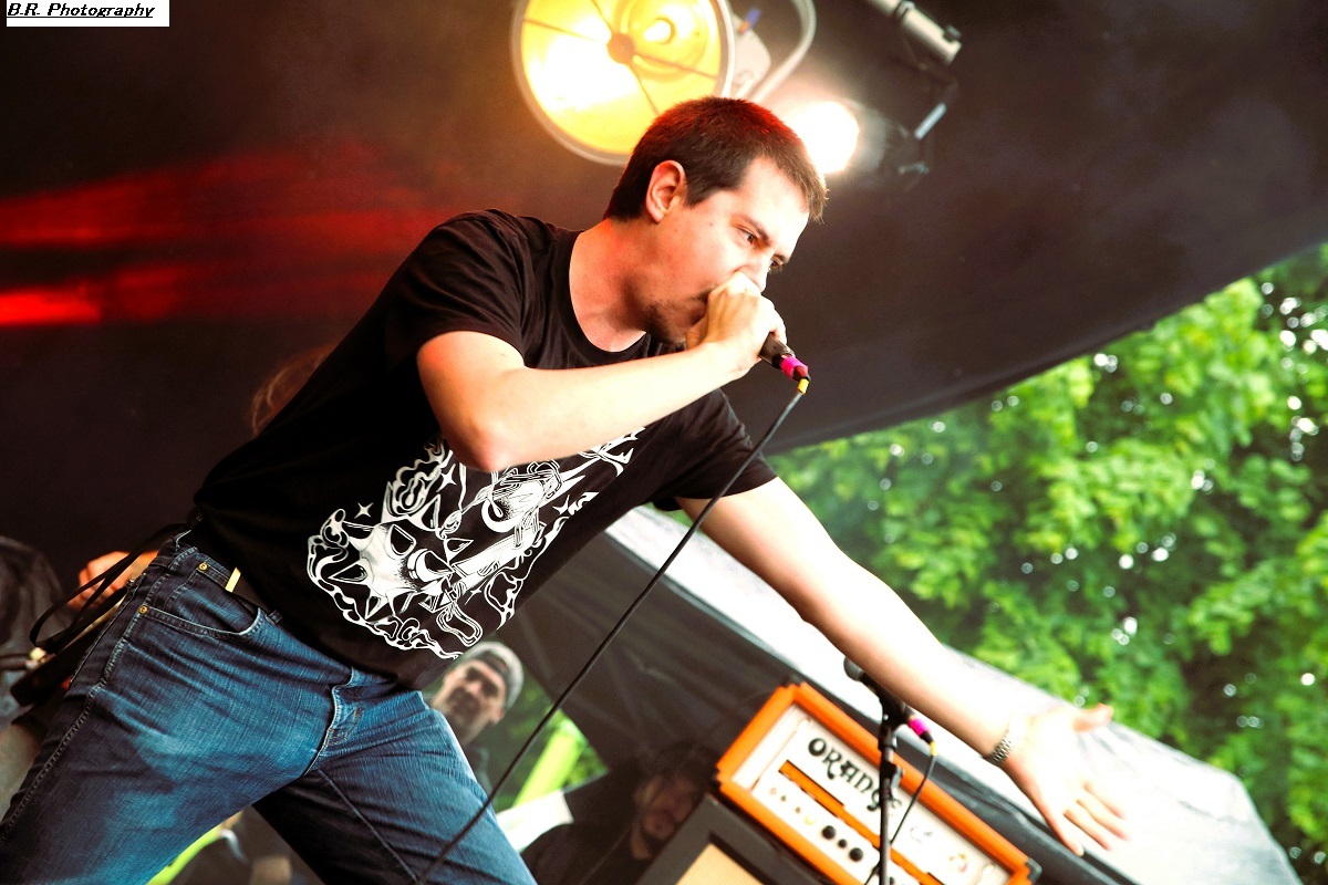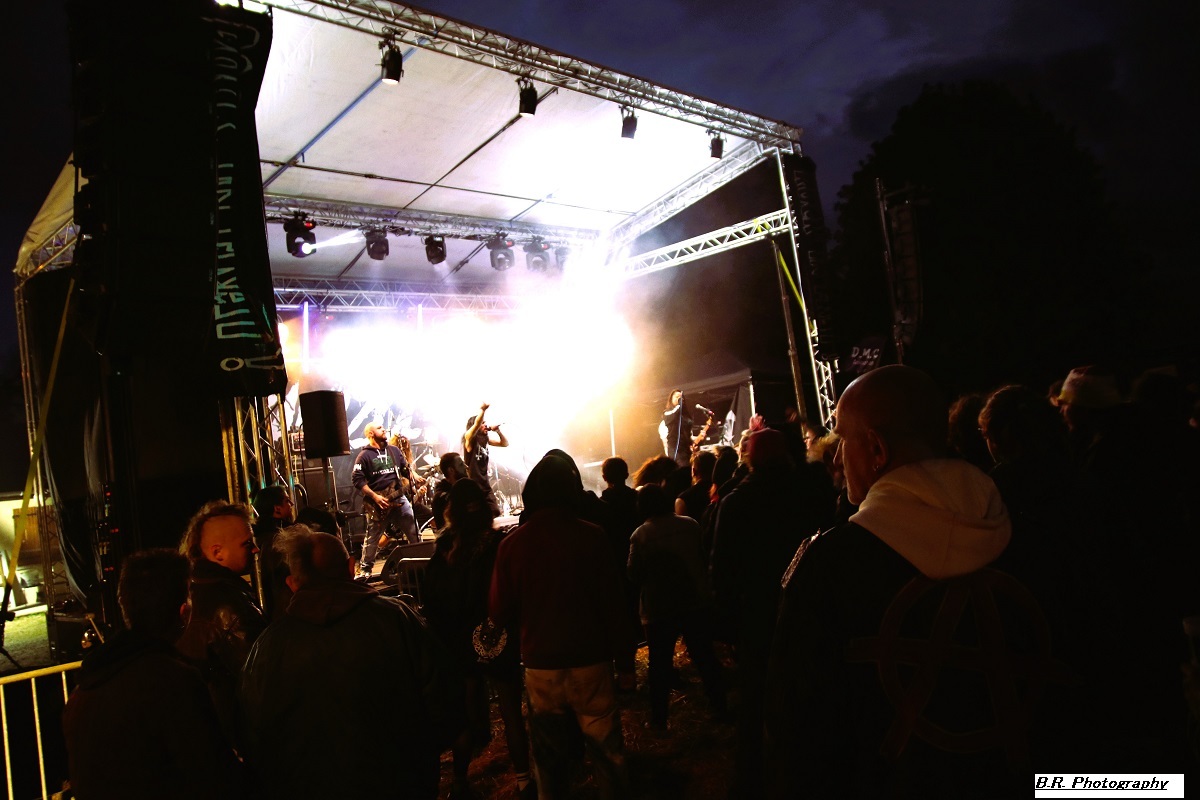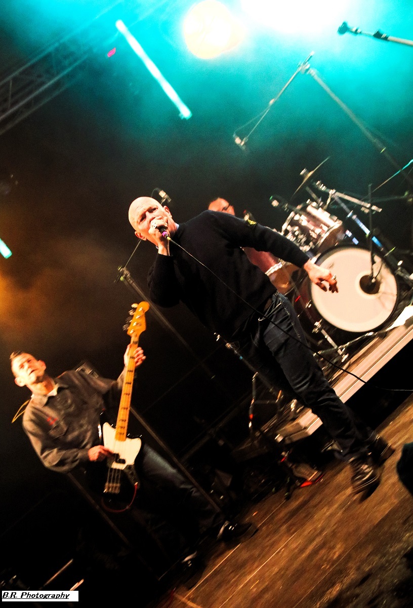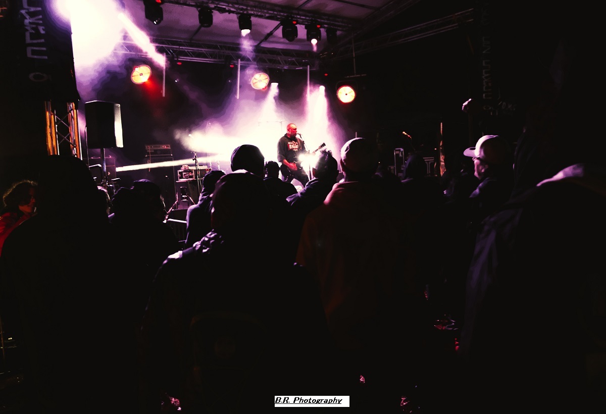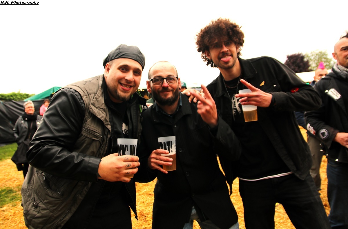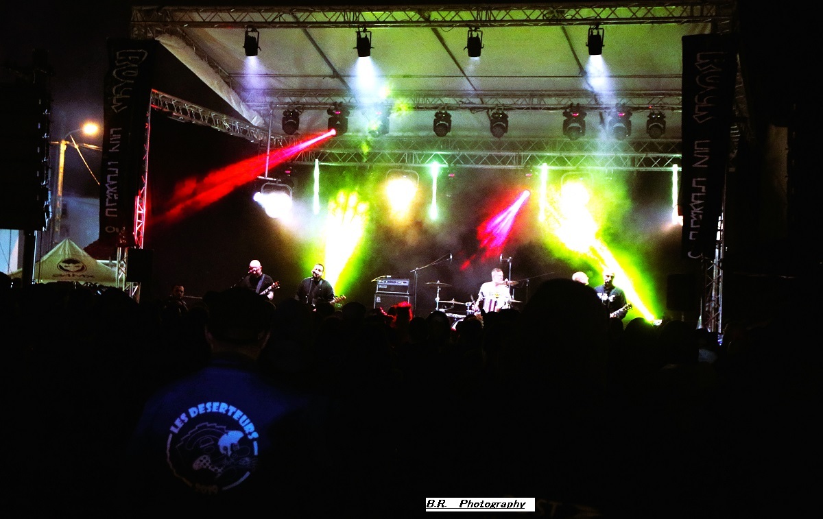 Après visite des lieux et de ses stands entourant une belle scène et après avoir étanché ma soif (enfin quoi une mousse) je vais déguster la première prestation, de la soirée dès 20 heures avec sur scène RESTO BASKET, jeunes keupons venant de l'Isère des terres Froides comme l'indique leur dernier single + clip paru en avril dernier le 19, Ils sont à l'aise en live et semblent tourner comme une montre ayant le vent en poupe actuellement. Alors ce soir à Rigneu ils vont lancer la soirée avec brio, l'énergie et l'urgence du punk étant au rendez-vous, bravo les gars ! A 21 heures, ce sont les « coreux » Lyonnais de KAMIZOL-K qui lancent le son et quel son ! Concerts après concerts, enregistrements après enregistrements, ils gravissent l'échelle d'une certaine notoriété et ont exporté leur savoir-faire jusqu’à la scène de la Warzone au Hellfest où ils ont fait un « tabac ». Et ce soir, en toute simplicité, c'est la même, la même énergie, la même puissance de feu et la même présence scénique qui nous est offerte. Nous avons donc aimé et le public ne s'y est pas trompé en remuant la paille devant la scène avec frénésie. Comme annoncé ce soir juste avant le concert, MAD SIN ne pourra pas être présent au fest car les musiciens sont en panne de van au Luxembourg. Seul le guitariste, venu en avion, pourra jammer sur scène avant Hors Contrôle qui « remplacera » les absents en dernière minute. HORS CONTROLE prend la suite, un Hors Contrôle (alone) désormais actif en « one mane band » avec Régis aux manettes. Alors gratte en main, paroles arrachées sur fond de samples, il n'est pas dans les « Bas-Fonds » comme son dernier clip, mais là bien présent devant nous à Rigneu avec son classique punk Oï qui nous prend aux tripes, et ce fus bien, très bien même ! J'ai oublié de vous dire qu'en interlude l'animation se trouve au stand de TURBODANCING. Turbodancing 108 FM, ce n’est pas de la radio, c'est n'importe quoi qu'ils disent, mais en fait ils assurent comme des pros, merci pour leur présence active sur ce fest. Un peu plus tard dans la nuit noire et fraîche ce sont les bien connus 8°6 CREW qui vont faire chalouper et chavirer le public à l'aide de leur ska-punk saccadé aux allures reggae bien entendu. Devant nous ils y a du monde sur les planches, chant batterie, basse, guitares, claviers et une section de cuivre avec trompette et saxo. Avec une discographie longue comme le bras et des apparitions live régulière, 8°6 Crew semble bien apprécié et ce soir au Rock in Frat le public nous l'a montré durant toute leur prestation bien remarquée au demeurant ! Avec LION'S LAW on remet les pendules à l'heure du punk-Oï qui flirte avec le hardcore et le power-punk. Grattes puissantes, batterie plombée, hymnes fédérateurs et incontournables, les Parisiens ne font pas dans la demi-mesure c'est un fait ! C'est rapide, musclé et ça fait mouche. Alors nous avons dégusté dans tous les sens du terme, puissance, provoc, férocité, fidélité, tout ça, tout ça dans nos yeux et nos oreilles, ce fut donc bon, très bon même ! Ne me reste qu'à remercier les Déserteurs de Rigneu pour nous avoir invité à ce fest anniversaire du Rock in Frat. Merci pour tout ce fut une soirée fort délectable, nous reviendrons ! |