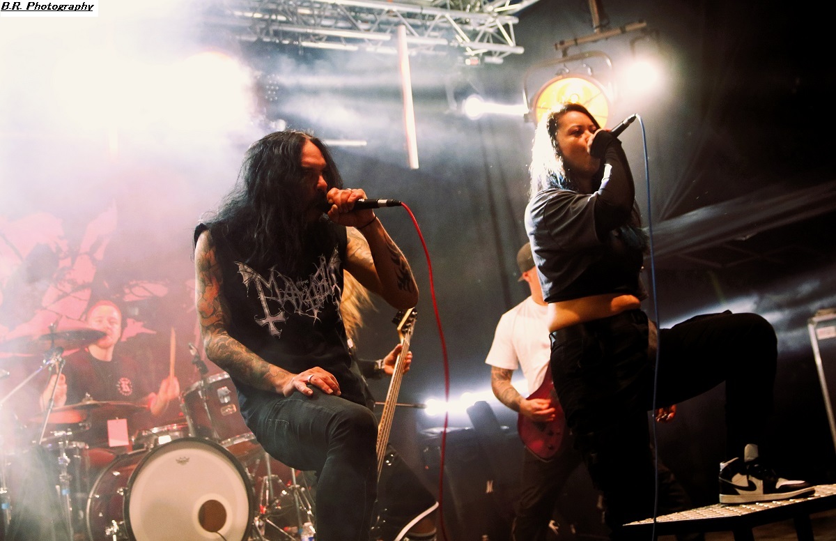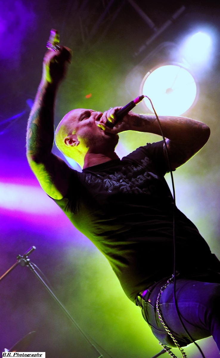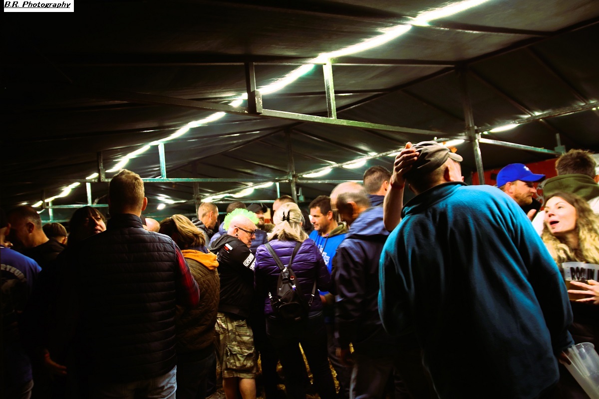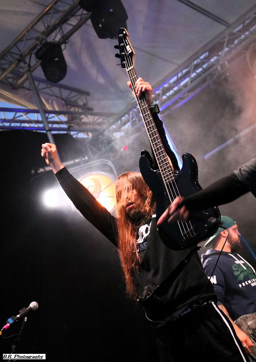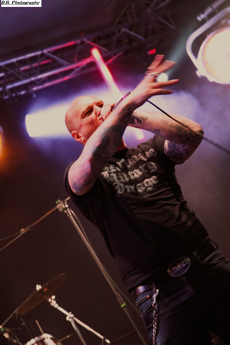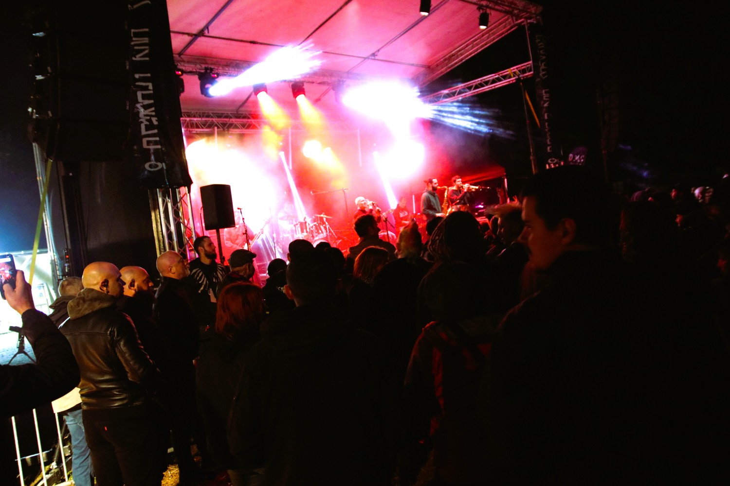 Après visite des lieux et de ses stands entourant une belle scène et après avoir étanché ma soif (enfin quoi une mousse) je vais déguster la première prestation, de la soirée dès 20 heures avec sur scène RESTO BASKET, jeunes keupons venant de l'Isère des terres Froides comme l'indique leur dernier single + clip paru en avril dernier le 19, Ils sont à l'aise en live et semblent tourner comme une montre ayant le vent en poupe actuellement. Alors ce soir à Rigneu ils vont lancer la soirée avec brio, l'énergie et l'urgence du punk étant au rendez-vous, bravo les gars ! A 21 heures, ce sont les « coreux » Lyonnais de KAMIZOL-K qui lancent le son et quel son ! Concerts après concerts, enregistrements après enregistrements, ils gravissent l'échelle d'une certaine notoriété et ont exporté leur savoir-faire jusqu’à la scène de la Warzone au Hellfest où ils ont fait un « tabac ». Et ce soir, en toute simplicité, c'est la même, la même énergie, la même puissance de feu et la même présence scénique qui nous est offerte. Nous avons donc aimé et le public ne s'y est pas trompé en remuant la paille devant la scène avec frénésie. Comme annoncé ce soir juste avant le concert, MAD SIN ne pourra pas être présent au fest car les musiciens sont en panne de van au Luxembourg. Seul le guitariste, venu en avion, pourra jammer sur scène avant Hors Contrôle qui « remplacera » les absents en dernière minute. HORS CONTROLE prend la suite, un Hors Contrôle (alone) désormais actif en « one mane band » avec Régis aux manettes. Alors gratte en main, paroles arrachées sur fond de samples, il n'est pas dans les « Bas-Fonds » comme son dernier clip, mais là bien présent devant nous à Rigneu avec son classique punk Oï qui nous prend aux tripes, et ce fus bien, très bien même ! J'ai oublié de vous dire qu'en interlude l'animation se trouve au stand de TURBODANCING. Turbodancing 108 FM, ce n’est pas de la radio, c'est n'importe quoi qu'ils disent, mais en fait ils assurent comme des pros, merci pour leur présence active sur ce fest. Un peu plus tard dans la nuit noire et fraîche ce sont les bien connus 8°6 CREW qui vont faire chalouper et chavirer le public à l'aide de leur ska-punk saccadé aux allures reggae bien entendu. Devant nous ils y a du monde sur les planches, chant batterie, basse, guitares, claviers et une section de cuivre avec trompette et saxo. Avec une discographie longue comme le bras et des apparitions live régulière, 8°6 Crew semble bien apprécié et ce soir au Rock in Frat le public nous l'a montré durant toute leur prestation bien remarquée au demeurant ! Avec LION'S LAW on remet les pendules à l'heure du punk-Oï qui flirte avec le hardcore et le power-punk. Grattes puissantes, batterie plombée, hymnes fédérateurs et incontournables, les Parisiens ne font pas dans la demi-mesure c'est un fait ! C'est rapide, musclé et ça fait mouche. Alors nous avons dégusté dans tous les sens du terme, puissance, provoc, férocité, fidélité, tout ça, tout ça dans nos yeux et nos oreilles, ce fut donc bon, très bon même ! Ne me reste qu'à remercier les Déserteurs de Rigneu pour nous avoir invité à ce fest anniversaire du Rock in Frat. Merci pour tout ce fut une soirée fort délectable, nous reviendrons ! |