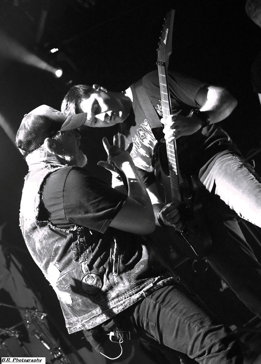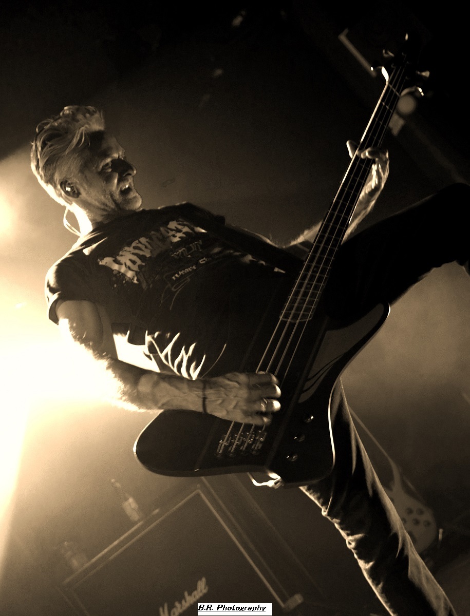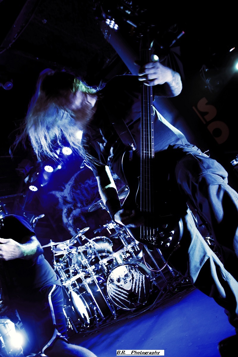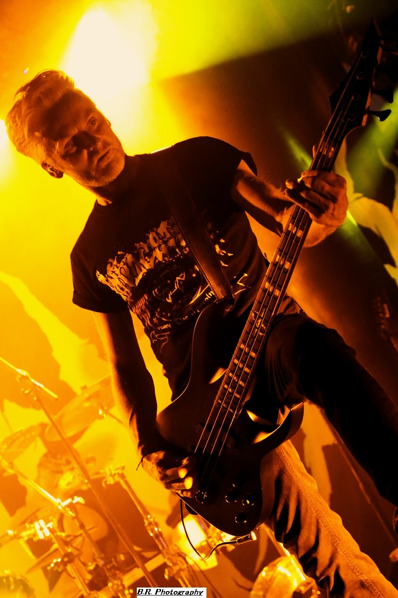 Les Allemands d'ENDSEEKER, qui tournent actuellement en France pour la première fois, ne sont pas nés de la dernière pluie du brutal metal avec déjà sous leurs bras un EP de 2015 suivi de quatre albums, dont le petit dernier intitulé « Global Worming » de 2023 qui fut très bien accueilli par la critique à sa sortie. Et comme une confirmation du bien que l'on pense d'eux dans la scène death metal, ce soir leur prestation scénique fut en tout point remarquable. Avec un arrière-goût de l'école suédoise, notamment d'Entombed et autre Dismember, ils ont assuré comme des bêtes ce soir. Les envois sont énergiques, pimentés de soli vicieux et morbides. Et puis, tel un char d'assaut, certains titres nous ont littéralement écrasés à l'aide d'une lourdeur bienvenue dominée par la voix caverneuse d'un chanteur possédé par ses textes. ENDSEEKER n'a donc pas fait dans la dentelle ce soir et, à l'aide de riffs-lame de rasoir et de rythmiques plombées, le groupe teuton n'a pas fait semblant pour notre plus grand bonheur. Bravo ! ASINHELL est en fait un nouveau groupe formé en 2021 avec des musiciens déjà bien impliqués dans d'autres formations. Ce groupe est composé de Michael Poulsen (Volbeat), qui en revient à ses premières amours, le death metal, avec actuellement Morten Toft Hansen (ex-Hatesphere) et Marc Grewe (ex-Morgoth). Cette formation a enregistré un premier album intitulé « Impii Hora » en 2023 afin de concrétiser cette réunion de vieux briscards qui se lancent à nouveau dans le metal extrême pour se faire plaisir et, par la même occasion, nous détruire ce qu'il nous reste de neurones comme on dit dans ces cas-là ! En live, nous ressentons cette passion du death metal qui habite nos lascars. Rien de vraiment nouveau au programme, mais voici un death old school qui ne réinvente rien, mais qui nous massacre littéralement le corps et l'esprit, aidé en cela par les expériences vécues dans d'autres lieux et dans d'autres groupes par ces musiciens composant ce projet ASINHELL. Alors, inutile de vous dire qu'en live, c'est du pur et dur bien inspiré et bien interprété, une « tuerie » si vous voulez. C'est groovy et brutal à souhait, ça vous prend à la gorge et ne vous lâche plus durant une heure de set, aargh ! Un seul souhait au final, que ce projet ait une suite dans la durée. On aime, que dis-je, on adore, amen ! Merci à Eldorado pour l'accréditation accordée à Pavillon666 et merci aux deux formations qui ont brûlé ce mardi soir de juin les planches du Transclub. |