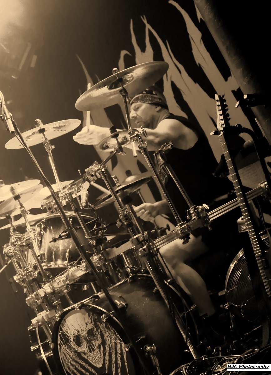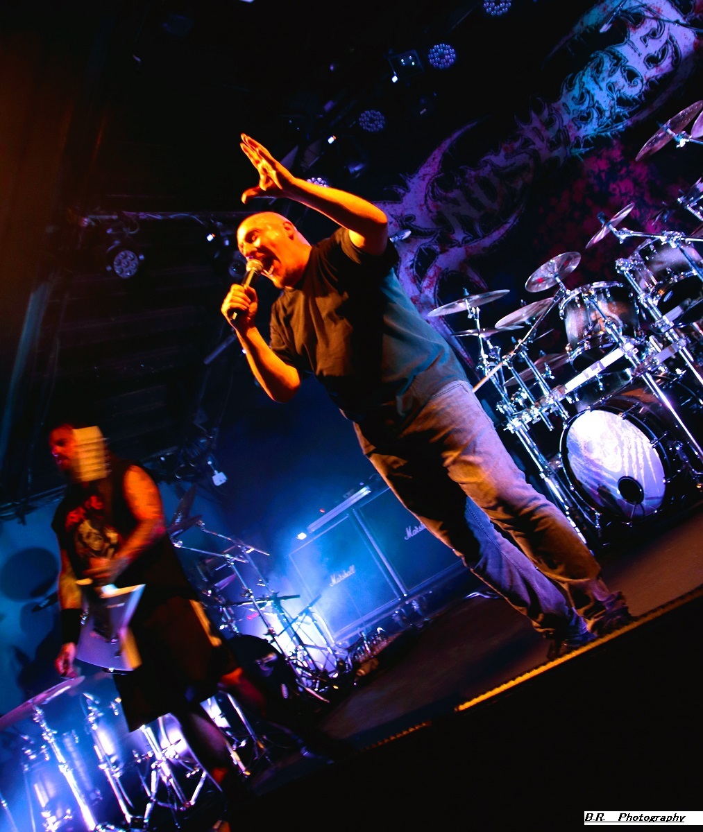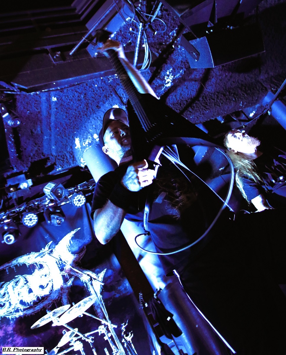 Les Allemands d'ENDSEEKER, qui tournent actuellement en France pour la première fois, ne sont pas nés de la dernière pluie du brutal metal avec déjà sous leurs bras un EP de 2015 suivi de quatre albums, dont le petit dernier intitulé « Global Worming » de 2023 qui fut très bien accueilli par la critique à sa sortie. Et comme une confirmation du bien que l'on pense d'eux dans la scène death metal, ce soir leur prestation scénique fut en tout point remarquable. Avec un arrière-goût de l'école suédoise, notamment d'Entombed et autre Dismember, ils ont assuré comme des bêtes ce soir. Les envois sont énergiques, pimentés de soli vicieux et morbides. Et puis, tel un char d'assaut, certains titres nous ont littéralement écrasés à l'aide d'une lourdeur bienvenue dominée par la voix caverneuse d'un chanteur possédé par ses textes. ENDSEEKER n'a donc pas fait dans la dentelle ce soir et, à l'aide de riffs-lame de rasoir et de rythmiques plombées, le groupe teuton n'a pas fait semblant pour notre plus grand bonheur. Bravo ! ASINHELL est en fait un nouveau groupe formé en 2021 avec des musiciens déjà bien impliqués dans d'autres formations. Ce groupe est composé de Michael Poulsen (Volbeat), qui en revient à ses premières amours, le death metal, avec actuellement Morten Toft Hansen (ex-Hatesphere) et Marc Grewe (ex-Morgoth). Cette formation a enregistré un premier album intitulé « Impii Hora » en 2023 afin de concrétiser cette réunion de vieux briscards qui se lancent à nouveau dans le metal extrême pour se faire plaisir et, par la même occasion, nous détruire ce qu'il nous reste de neurones comme on dit dans ces cas-là ! En live, nous ressentons cette passion du death metal qui habite nos lascars. Rien de vraiment nouveau au programme, mais voici un death old school qui ne réinvente rien, mais qui nous massacre littéralement le corps et l'esprit, aidé en cela par les expériences vécues dans d'autres lieux et dans d'autres groupes par ces musiciens composant ce projet ASINHELL. Alors, inutile de vous dire qu'en live, c'est du pur et dur bien inspiré et bien interprété, une « tuerie » si vous voulez. C'est groovy et brutal à souhait, ça vous prend à la gorge et ne vous lâche plus durant une heure de set, aargh ! Un seul souhait au final, que ce projet ait une suite dans la durée. On aime, que dis-je, on adore, amen ! Merci à Eldorado pour l'accréditation accordée à Pavillon666 et merci aux deux formations qui ont brûlé ce mardi soir de juin les planches du Transclub. |