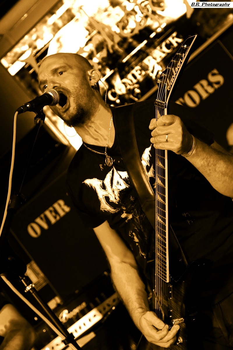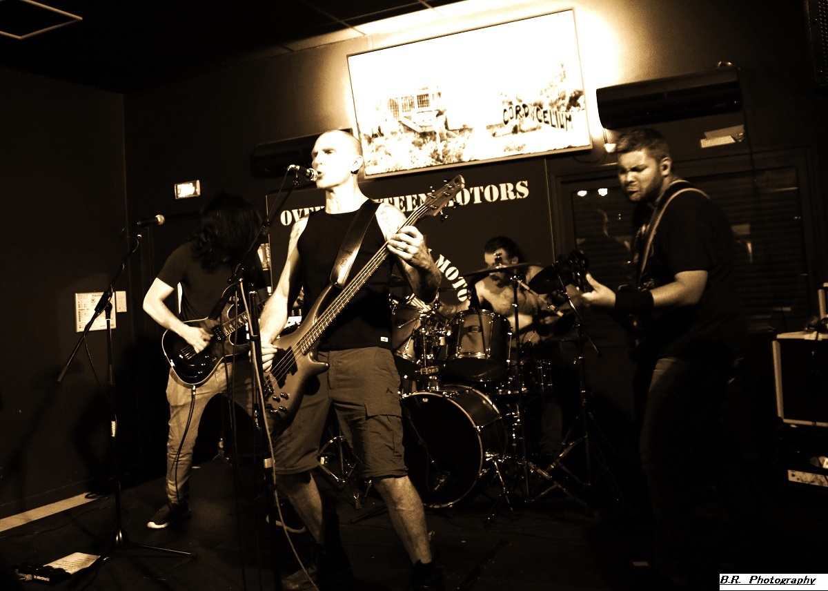 CORDYCELIUM, c'est du punk, mais en réalité c'est du thrash. Avec le thrash au « core », ils s'engagent et enragent sur des textes percutants. La voix est tout aussi percutante et, avec des musiciens éprouvés, ça tabasse sec. Le groupe nous régale avec des morceaux comme « Side by Side », « Counting Down » et « Terrorist », ainsi qu'une reprise bien envoyée de Sepultura, « Territory ». Continuez comme ça, on aime ce que vous faites ! HASCHATAN, quant à eux, nous emmène sur la route 666 avec un black teinté de death. Ça commence fort avec des vocaux d'outre-tombe bien adaptés au style. Le fan-club et les copains se déchaînent sur « Haunted by the Night », « Aversion of Christ » et « Au nom du Drame ». HASCHATAN se distingue par de bonnes idées, une technique solide et une présence scénique affirmée. Bien qu'encore à leurs débuts, ils ne manqueront pas de se faire connaître de plus en plus. Bonne chance à vous, votre prestation valait largement le détour ce samedi de juillet à Saint-Symphorien-d'Ozon, amen ! Merci aux deux groupes pour leur performance exceptionnelle et à l'Over Eighteen Motors pour l'organisation de ce concert. Continuez ainsi, votre enseigne et votre programmation attirent de plus en plus l'attention. |