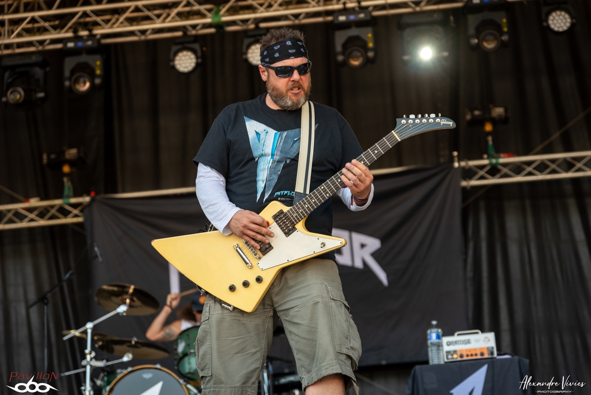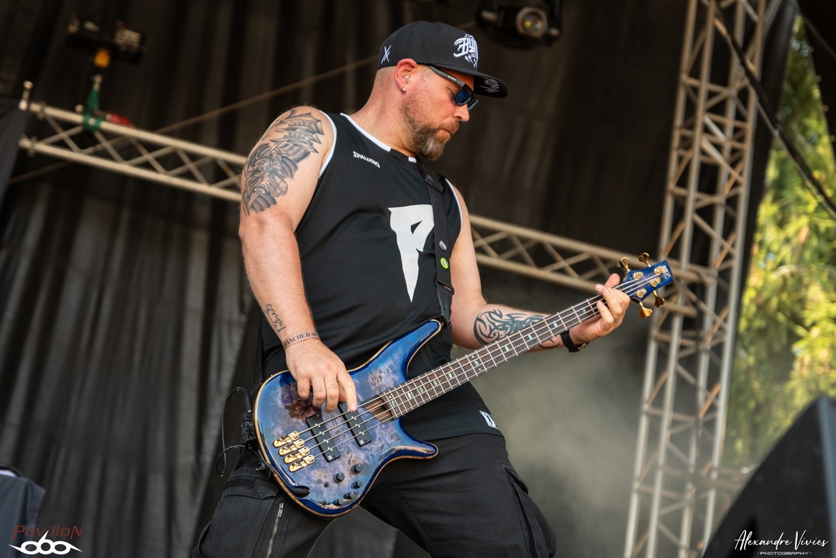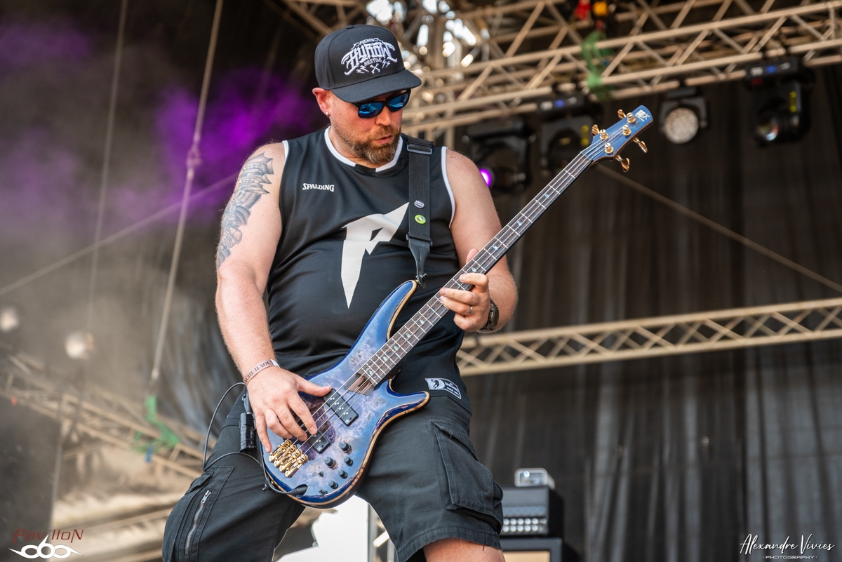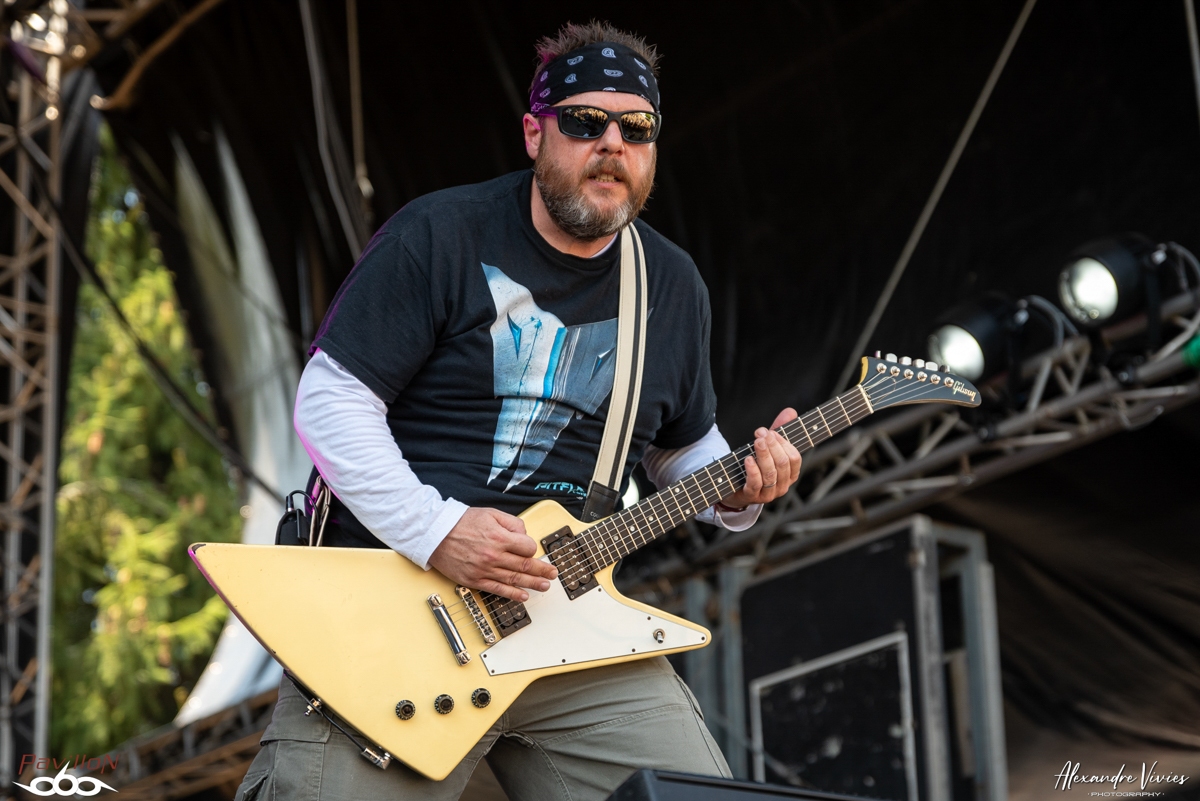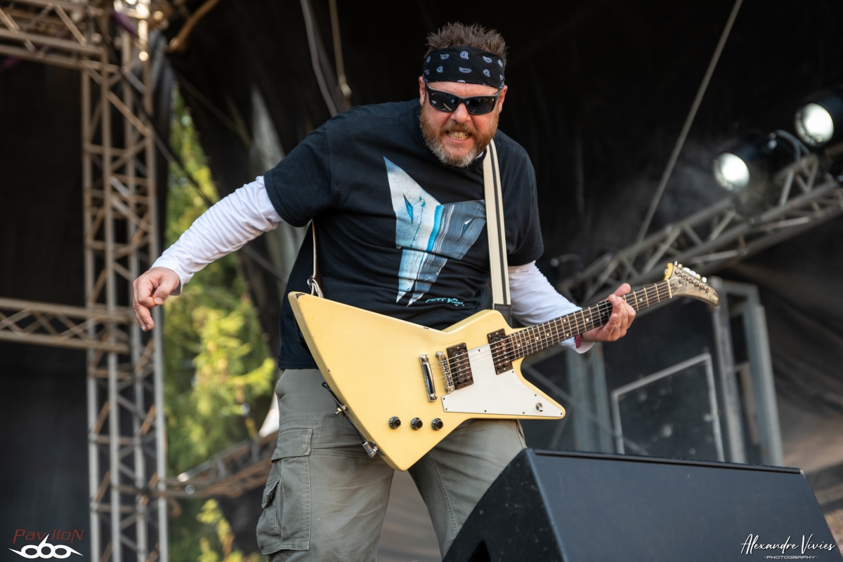 Un autre groupe de légende, cette fois du thrash metal, que l’on ne présente plus depuis bien longtemps. Il convient de souligner à sa juste mesure l’exploit réalisé par le festival, non seulement d’avoir pu inscrire TESTAMENT sur son affiche, mais avec en plus l’exclusivité française sur leur tournée des festivals ! Chapeau bas ! Le show est, comme il était facile de s’y attendre, intense et le public déchainé. Pogos et slams ne cesseront pas pendant l’intégralité du concert, et ce, dès son coup d’envoi. Si bien que de nombreux photographes, dont votre serviteur fait partie, n’auront malheureusement pas l’occasion de profiter du pit photo ; ce n’est pas grave, nous nous régalerons tous du concert formidable d’un des plus grands groupes de thrash au monde !