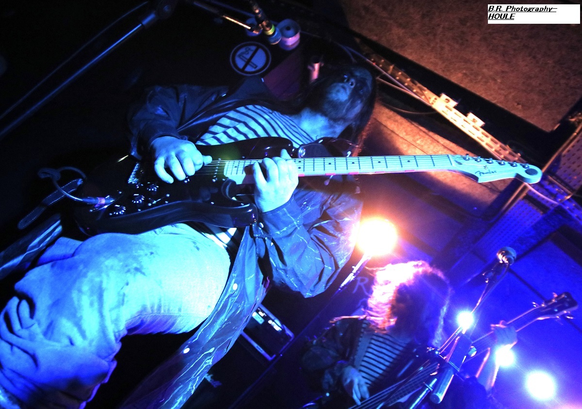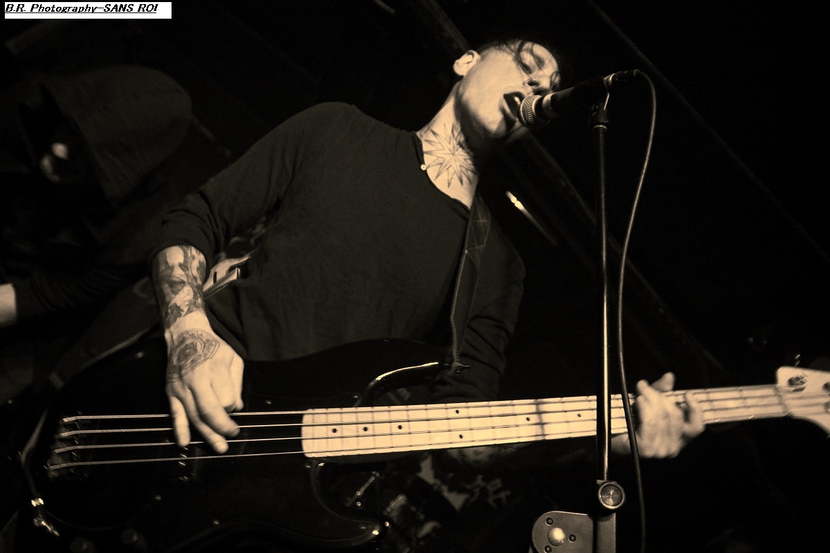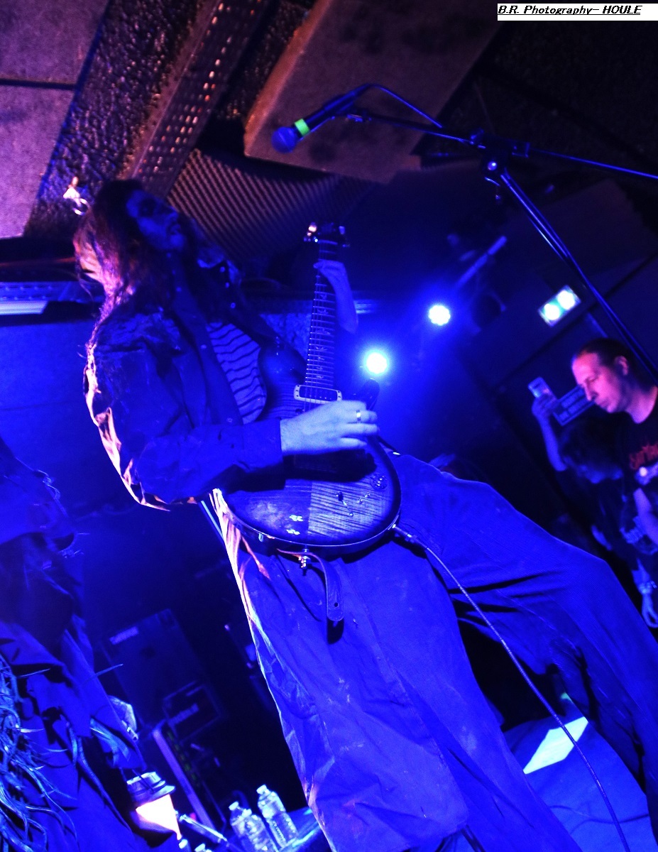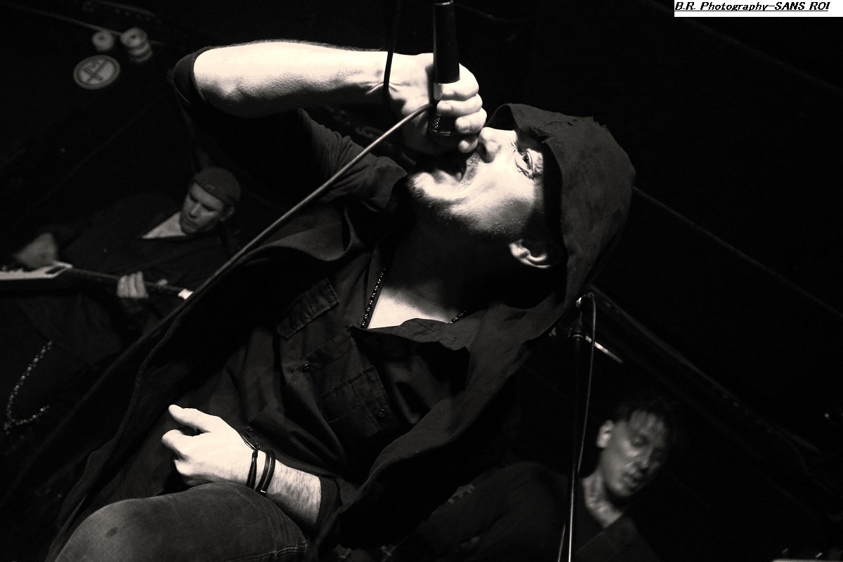 SANS ROI ouvre son livre sacré dès 20heures afin de nous faire partager son engouement pour un black-metal aux influences multiples dans un registre souvent mélancolique et inquiétant mais carrément brutal dans les envois. Ce soir ils nous présentent en outre leur nouvel opus intitulé « Alchimie du Scorpion » qui donne une suite à l'inspiration, sans borne de ces Clermontois dans des ambiances oh combien occultes et passionnées. Sur scène les musiciens de Sans Roi nous prouvent qu'ils maîtrisent vraiment leur sujet et l'on adhère pleinement à leur aventure très sombre mais au final très passionnante, on aime ! C'est maintenant SILHOUETTE qui prend possession de la scène. Le groupe se base sur la présence vocale d'Ondine et ses voix claires contrebalancées par celles de Yharnam plus rugueuse et écorchée. Noirceur, riffs hypnotiques, explosions malsaines sont au menu de ce sextet Montpelliérain à l'aide de compositions enregistrées sur deux albums, à savoir « les Retranchements » de 2022 et les « Dires de l’Âme » de 2024. Leur black atmosphérique a donc tout pour nous ensorceler, mais en ce qui me concerne j'ai retrouvé au fil du concert une certaine linéarité malgré l'attention assidue à laquelle j'ai pu consacrer mon écoute. Bref, je l'avoue, j'ai un peu été déçu par leur prestation, mais beaucoup de monde dans la salle semblent avoir apprécié cette démonstration symphonique sombre aux paysages sonores déconcertants, et c'est bien là le principal n'est-ce-pas ? La suite va se révéler plus agitée plus théâtrale aussi avec l'arrivée du bateau de HOULE qui accoste la scène du Rock n'Eat avec perte et fracas. Et ce fut le déclenchement d'une tempête où les marins Parisiens se sont accrochés à la voilure de leurs instruments et au bastingage de leurs vocaux bien arrachés aux vents mauvais ! Alors, leur black-metal marin a ravagé le pont (le scène et la salle) de notre Rock n'Eat avec les mouvements « houleux » du public. Sur fond de heavy metal et de black Nordique ces « parigots » ont composé des titres incroyables taillés pour la scène, c'est original en diable, énergique avec des voix hurlées à décorner un troupeau de bisons en rut. Et si vous avez écouté leur premier album phare intitulé « Ciel Cendres et Misère Noire », vous avez dégusté ce soir devant la scène dans tous les sens du terme, amen ! Alors merci aux organisateurs de cette petite sauterie black-metal « made in France » Eclosion Booking et notre cher club du quai Arloing à Vaise-city-Lyon. Sans oublier les 3 formations en lice et le public qui a créé une sacrée ambiance. |
