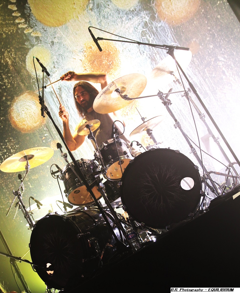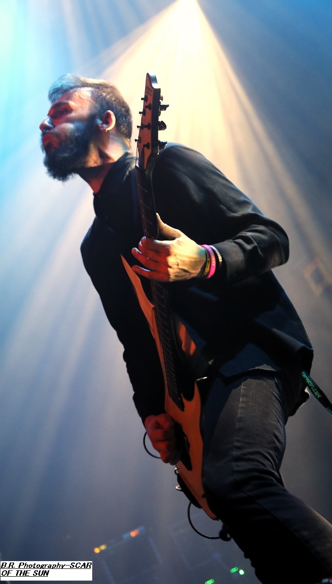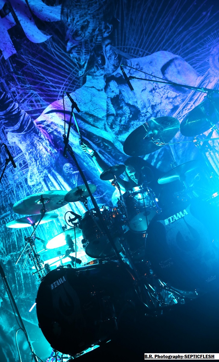 C'est SCAR OF THE SUN, groupe Grec mais formé à Londres en 2005 qui a la lourde tâche d’ouvrir le petit bal du Samedi soir dans la belle salle de la Rayonne, et ce dès 18heurs 45 devant un public pas encore totalement arrivé mais semblant bien chaud et pressé d'en découdre avec le metal bien personnel de cette formation qui possède un style très particulier mais abordable. Les Athéniens ne sont pas nés de la dernière pluie nu-metal et leur metal un brin progressif, parfois alambiqué, mais bien « rentre dedans », provoque déjà certains mouvements dans la foule, eh oui ! Mission accomplie pour eux, celle de « chauffer » la salle donc et ce fut bien. Avec OCEANS, la navigation va se faire sur les flots d'un metalcore/post-metal et nous allons voyager avec eux dans un univers chaotique fait de parties alambiquées entre groove et hurlements soudains. C'est lourd, c'est mélancolique voire dépressif, c'est parfois inattendu dans des parties vocales explosives. La tournée actuelle en ouverture d'Equilibriulm et de Septicflesh leur permet de promouvoir leur dernier opus en date paru fin Septembre 2024 intitulé « Happy » (ah bon!) afin d'enfoncer le clou d'un metalcore qui ne dit pas son nom mais cherche a innover dans un registre ultra-moderne. Bon, c'est pas mal, mais cela me semble pas simple pour eux et pour nous par la même occasion. Ça s'écoute musicalement parlant et en live le jeu de scène accroche quand même il fallait le dire . Changement de décor, changement de musique avec la venue d'EQUILIBRIUM qui met en avant un folk-metal plutôt musclé sur un rythme d'enfer. Formé en 2001 nos cousins Germains n'ont jamais fait dans la dentelle surtout avec les derniers albums en date, mais avec un line-up épuré et un nouveau frontman ils semblent vouloir ravager la scène avec perte et fracas à l'aide d'une chorégraphie imparable et avec des envoi plombés sur un binaire exacerbé. Et bien entendu le public réagit au quart de tour avec des démonstrations physiques quasiment non stop durant le set sauf pour le moment « briquets allumés », pardon maintenant c'est portables allumés ! Bien entendu le rapprochement des musiciens et chanteur avec ceux du premier rang provoque l'émoi dans ce public aux anges (au diable pardon ! Ce soir leur set-list comprendra bien sûr les titres « Gnosis » et « Cerulean Skies » enregistrés cette année avec le nouveau chanteur, mais aussi des titres issus de leur imposante discographie comme par exemple « Renegades » (2019), « Blust im Auge » (2008), et « One Folk » (2020). Bref, Equilibrium semble vouloir revenir avec force sur le devant de la scène avec cette tournée 2024 et le moins que l'on puisse dire, c'est qu'ils semblent y parvenir témoin ce « live » à Lyon de ce soir qui fut très démonstratif ! Les titans Grecs du death metal symphonique SEPTICFLESH sont de retour à Lyon ce 19 Octobre 2024 faisant étape de leur tournée « Modern Primitive » et ce sur la grande scène de la Rayonne afin de nous présenter bien sûr leur nouvel et 11ème album en nous interpellant comme d'habitude avec des « are you ready my friends ». Spiros « Seth » Antoniou et ses acolytes nous plongent dans le bain d'un death/black/dark mélodique et symphonique d'une puissance inégalée au fil des ans inspiré par les mythes et une certaine culture Grecque de l'antiquité. C'est violent souvent, imposant de maîtrise sur des orchestrations infernales où les musiciens tissent leurs riffs démoniaques, leurs vocaux monstrueux sur des rythmiques d'enfer (sic). Après toutes ces années passées à nous détruire notre matière grise, Septicflesh n'a rien perdu de sa superbe et ce soir encore une fois nous avons dégusté dans tous les sens du terme, quelle claque musicale et visuelle, quelle intensité démoniaque de leurs propos, on aime, que dis-je, on adore, amen ! Set-list : The Wampire from Nazareth, Noromancer, Pyramid God, Hirophant, Portrait of a Headless Man, Coming Storm, Prometheus, Martyr, A Desert Throne, Communion , The Collector, Persepolis, Anubis, Darkart. Après cette soirée métallique en diable il convient de remercier SOUNDS LIKE HELL Productions pour l'accréditation accordée à Pavillon666. Merci bien entendu aux 4 formations qui ont animé la Rayonne ainsi qu'au public pour l'ambiance folle instaurée durant le concert ! |