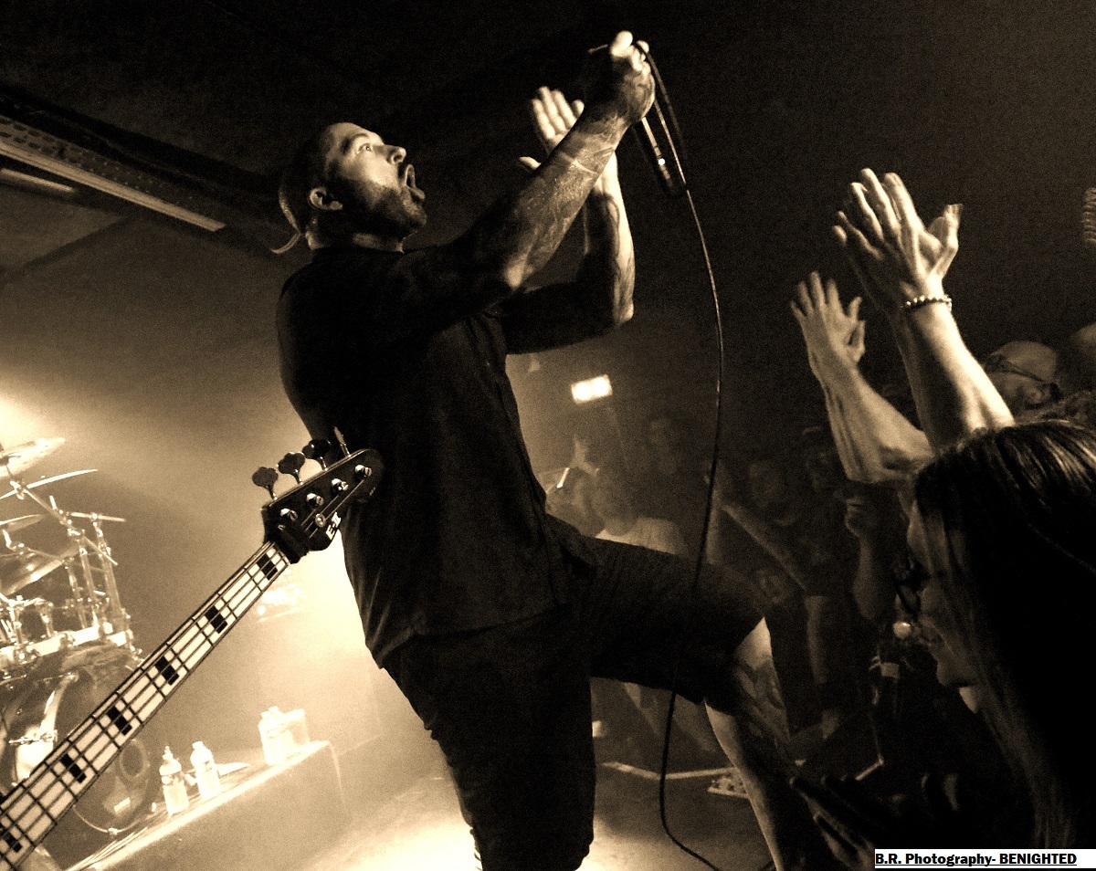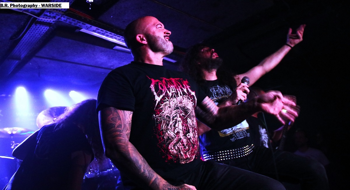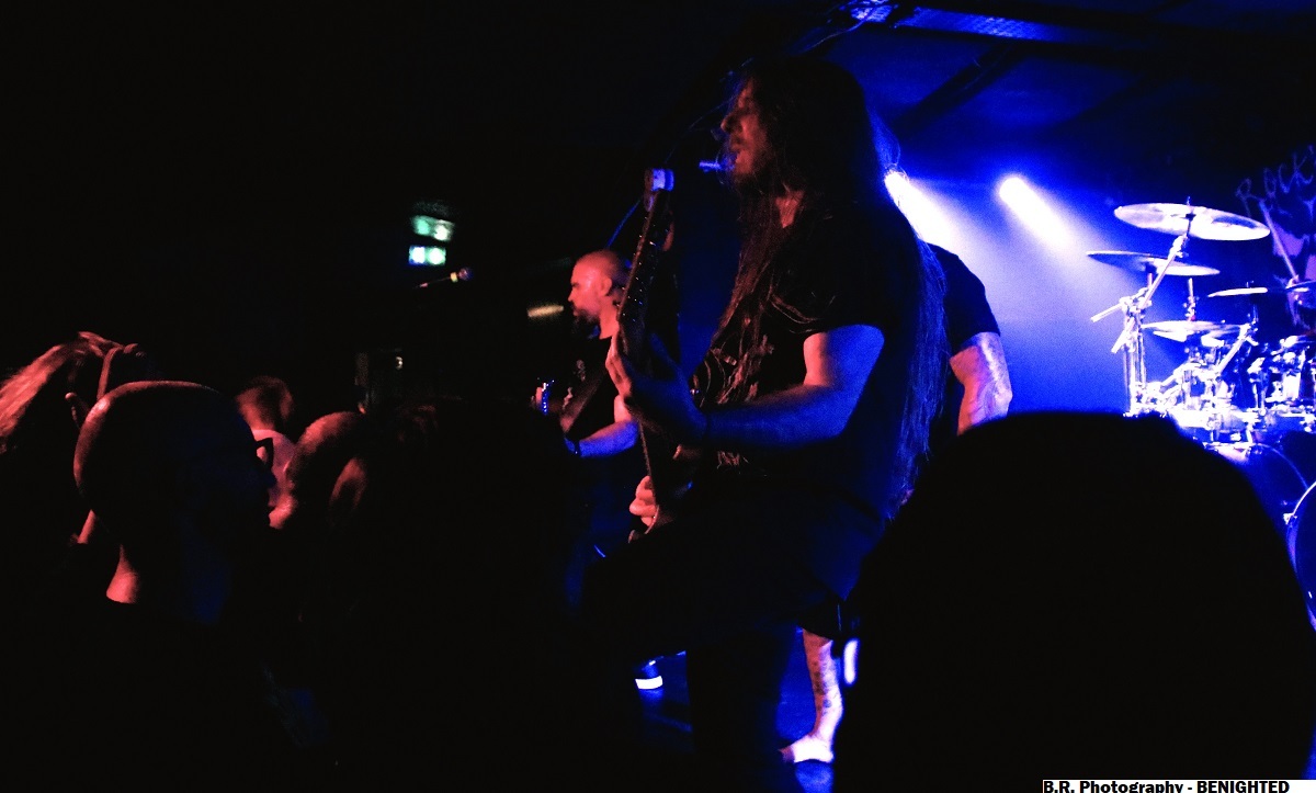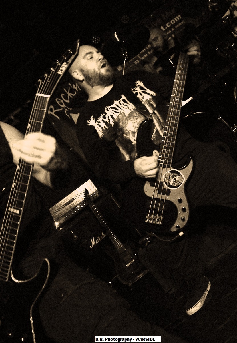 Dans les sous-sols du quai Arloing la foule des amis grandit au fur et à mesure dans ces lieux dès l'ouverture des portes vers 19heure, la soirée va être chaude il me semble, torride serait le mot le plus approprié. WARSIDE ouvre le feu dès 20heures 30 et d'emblée c'est la guerre dans le public. Évidemment le gang des Lyonnais ne fait pas dans la dentelle vous le savez et d'entrée de jeu nous en prenons plein la « g...le », c'est sans appel ! Les membres de ce groupe sont d'anciens briscards du death ayant œuvré dans d'autres formations auparavant et le metal extrême ils connaissent bien donc, ça se sent, ça se ressent dans leurs envois du metal-de-la-mort-qui-tue, envois qui font mouche ce soir excitant un public de connaisseurs qui ne tarde pas à se mettre en mouvement. Leur set se veut donc implacable de maîtrise dans le style c'est un fait indéniable ! D'ailleurs leur premier EP de 2018 intitulé « The Enemy Inside » nous avait prouvé qu'ils comptaient bien nous fracasser les conduits auditifs, mais avec doigté svp ! Bref, Warside a ravagé la scène durant 45 minutes dans notre club préféré rempli jusqu'à la gueule pour l'occasion avec en bonus l'intervention de deux « brutos » en guest, Julien de Benighted et Mat de Festering Process, nous avons aimé ! Après quelques mousses et le nettoyage de la scène (cqfd), la tension monte encore d'un cran avec l'arrivée sur scène de Julien Truchan, Pierre Arnoux, Emmanuel Dalle et Kevin Paradis, membres de BENIGHTED qui ne sont pas venus là ce soir dans ce Rock n'Eat qui est cher à leur cœur pour enfiler des perles, mais pour nous détruire ce qu'il nous reste de neurones (qui a dit comme d'habitude?). Et la salle de concert éclate sous les coups de boutoir des Stéphanois qui s’éclatent sur les planches, et nous aussi dans le pit. Quelle « kecla dans la chetron » comme dirait mon ami punk dérangé. Le son est au top, les murs vont-ils résister ? Le public n'en revient pas, ça « swingue » de partout, mais où, est donc passé ma godasse, mon portable, mon gobelet à moitié plein. Le reste des boissons houblonnées est sur le sol pour des dérapages incontrôlés, le public s’envoie donc en l'air ! La set-list de ce soir nous propose un savant mix de titres figurants dans l'importante discographie du groupe. Leur death/grind flirtant parfois avec du black se révèle donc violent, goûteux, imagé jusqu'au bassiste qui se frappe régulièrement le front, quelle ambiance torride depuis « Reptilian » jusqu'à 'Foetus » et « Let the Blood Spill Between my Broken Teeth » en passant par « Carnivore Sublime », « Morgue » et autre « Metastasis ». Que du bon au menu donc, du millésimé pour une formation qui continue à faire du « bruit » notamment avec leur nouvel album de 2024 « Ekbom » rempli de « pig squeals » mais avec une technicité hors norme dans ce style bien à eux. Alors ce soir leur set fut écrasant de dextérité, groovy à souhait et tout simplement incroyable remplit d'un monstrueux talent, stay brutal ! Comment faire pour ne pas remercier le Rock n'Eat qui fête, 7 années de bons et loyaux services à la cause du rock/metal ? Comment ne pas remercier les deux « gangs » brutaux qui ont explosé les sous-sols de Vaise-city ? Comment ne pas remercier ce public fan de metal, celui qui « tue » et qui ont instauré une ambiance de « ouf » ? Alors conclusion, on recommence quand ce genre de sauterie car on aime pardessus tout, c'est sans appel ! |