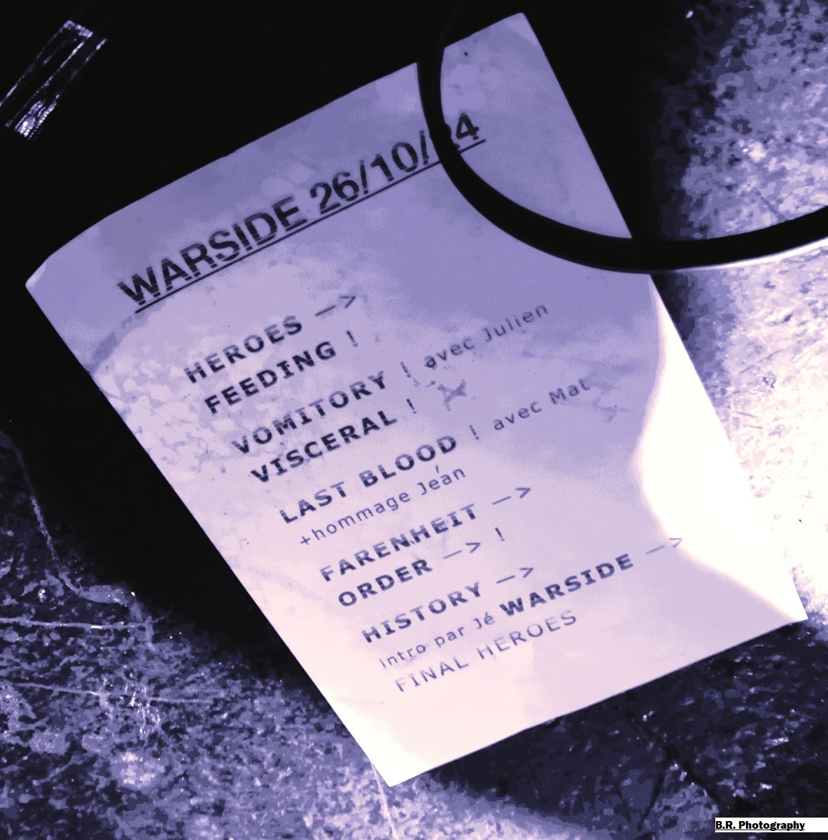 Notre Rock n'Eat de Lyon fêtait ce week-end son 7ème anniversaire et pour l'occasion, deux soirées se son déroulées dans ce temple du rock-metal. Ce Samedi 24 Octobre c'était la, seconde soirée avec un match St-Etienne/Lyon, BENIGHTED vs WARSIDE. Mais au final, pas de match mais les prestations de deux formations ancrées dans un death/grind brutal de chez brutal. Du coup à la fin des hostilités il y eu de la cervelle contre les murs parait-il comme le dit notre ami Julien de qui vous savez !