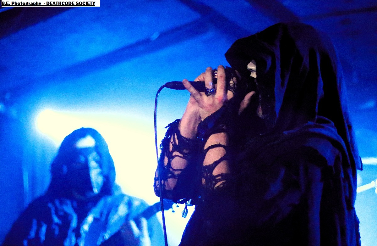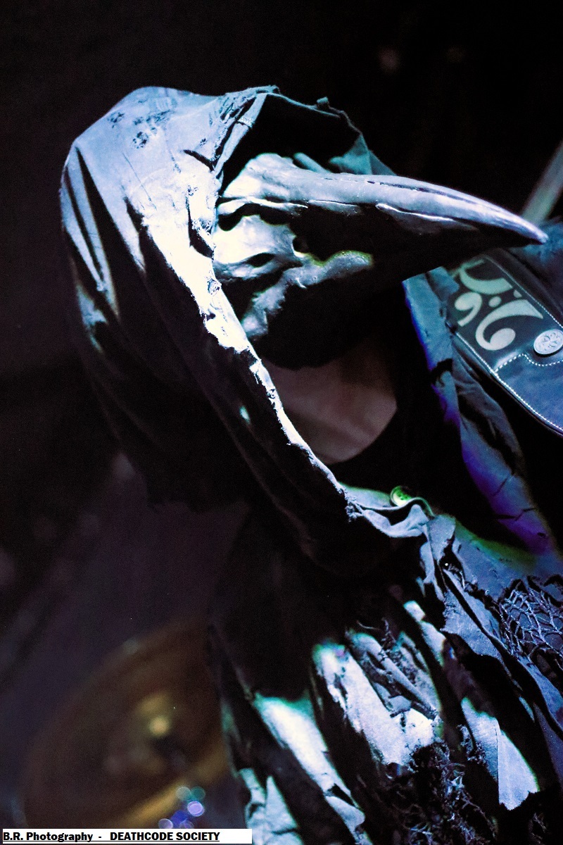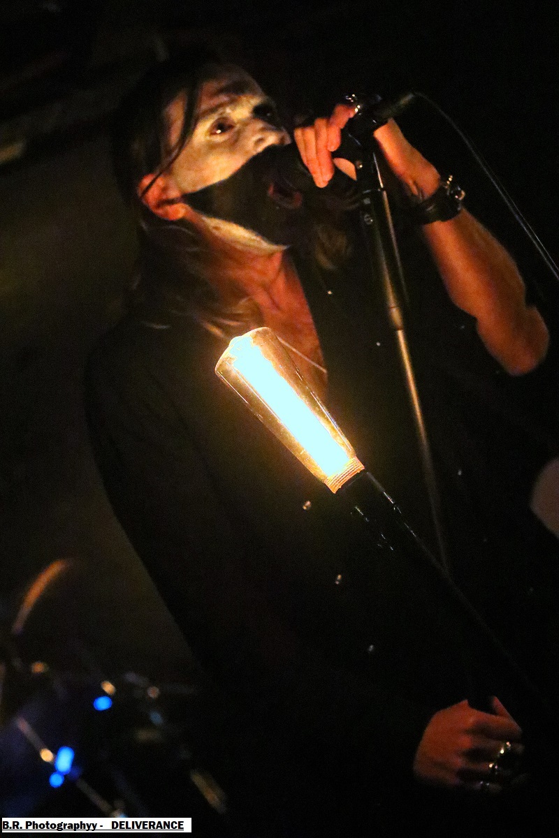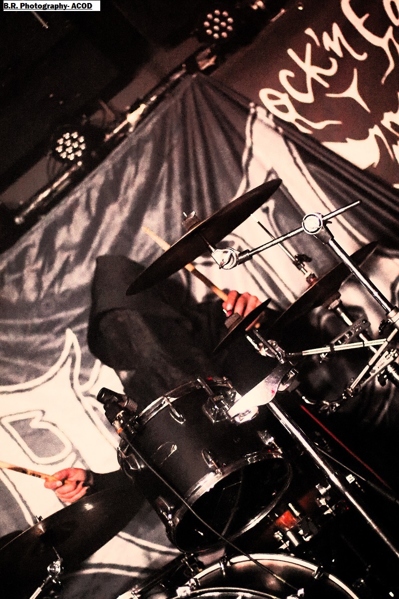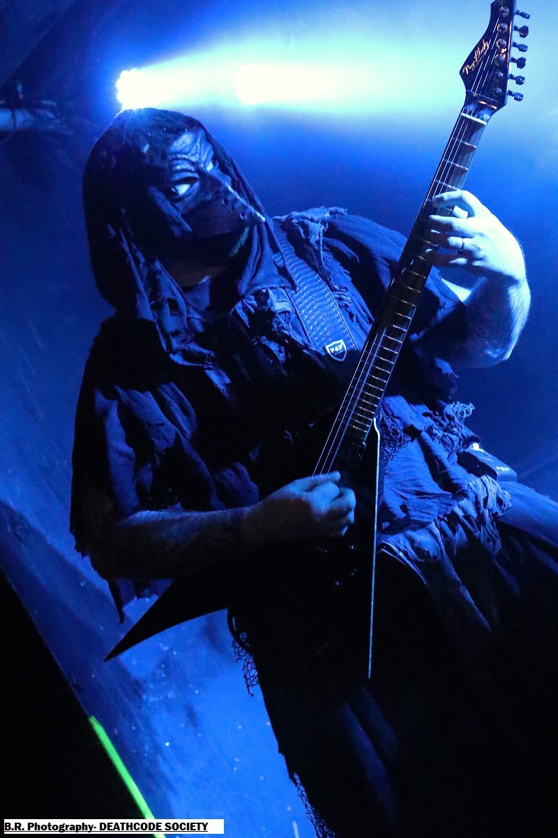 C'est DELIVERANCE qui se présente à nous en premier avec des musiciens cachés dans la pénombre entre candélabres électriques faiblement lumineux. Alors la soirée s'annonce bien sombre, c'est la « Fête des Lumières Éteintes » en somme. Deliverance navigue sur les eux troubles et marécageuses d'un black ancré de par ses racines dans un sludge boueux sur des riffs lents et lancinants. C'est chaotique à souhait, ça nous prend à la gorge et ça ne nous lâche plus, nous avons du, mal à respirer dans cette atmosphère étouffante. Du coup nous entrons dans un monde, certes old-school, mais aux avancées modernes, il fallait oser. Pour aller plus loin après ce concert bien enlevé je vous invite à vous pencher sur leur discographie, « CHRST » (2017), « Holocaust 26:1,46 (2019) et Neon Chaos in a Junk Sick Dawn (2022), Les haut-savoyards de DEATHCODE SOCIETY prennent la suite dans le bleuté d'une lumière froide et glacée. Fondé rn 2009 cette entité maléfique a enregistré deux albums à 8 ans d'intervalle, « Eschatonizer » en 2015 et « Unlightenment » en 2023, le groupe ayant peaufiné ses compositions. Des titres plus personnels s'écartant de leurs inspirations allant de Emperor à Dimmu Borgir en passant par Septicflesh. Ce soir, derrière leurs masques inquiétants ils vont nous donner un live bien maîtrisé, bien noir et bien épique dans des envolées souvent brutales mais néanmoins symphonique en fond d'écran. Ce fus donc bien majestueux malgré un son, celui des guitares notamment, un brin brouillon par moments. Bref, Deathcode Society se révèle puissant en live et nous aimons bien leur aventure, amen ! Les sudistes d'ACOD débarquent maintenant sur les planches avec la ferme intention de nous faire déguster en live des titres de leur nouveau « méfait » de 2024 intitulé « Versets Noirs », mais pas que ! En effet depuis « Point Zero paru en 2009 jusqu'à ce nouvel album, les Marseillais n'on t pas chômé en enregistrements et concerts. Et ce soir ça commence fort avec « May This World Burn » qui arrache en live. Leur black/death épique, mélodique mais agressif et vénéneux va encore une fois mettre tout le monde d'accord et nous ensorceler avec une puissance décuplée, une présence mortelle de tous les instants. Et pour souligner leur progression dans les méandres d'une brutalité aux mélodies acides, le groupe nous gratifiera d'une reprise bien sentie du titre « Black Trip » de Samael. Au final ,Acod gravit un a un les échelons d'une certaine reconnaissance dans le paysage maudit d'un black/death à la française ! Merci donc à Metallian Prod et au Rock n'Eat pour cette soirée noire comme de l'encre. Merci aux trois entités maléfiques qui ont hanté les lieux dans une ambiance passionnée, mélancolique et violente à la fois ! |