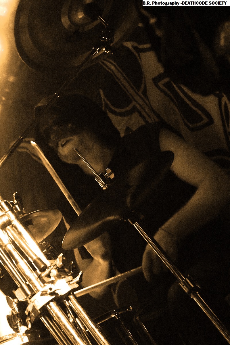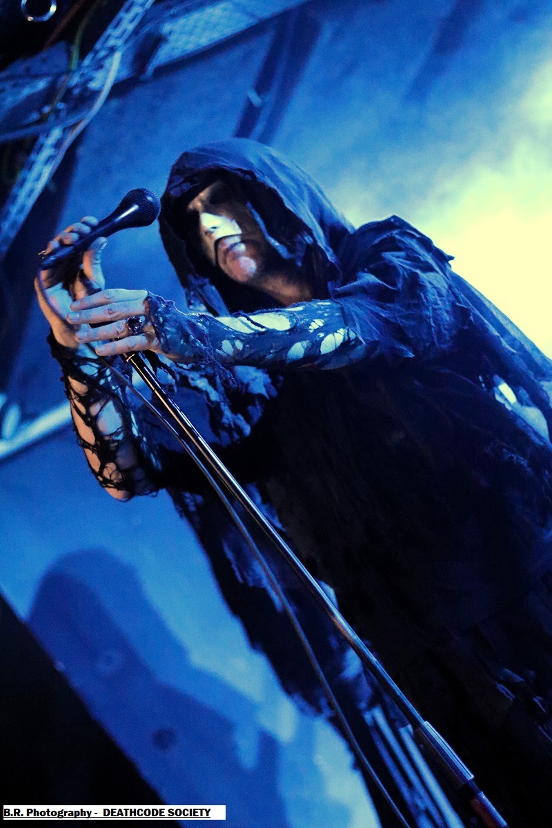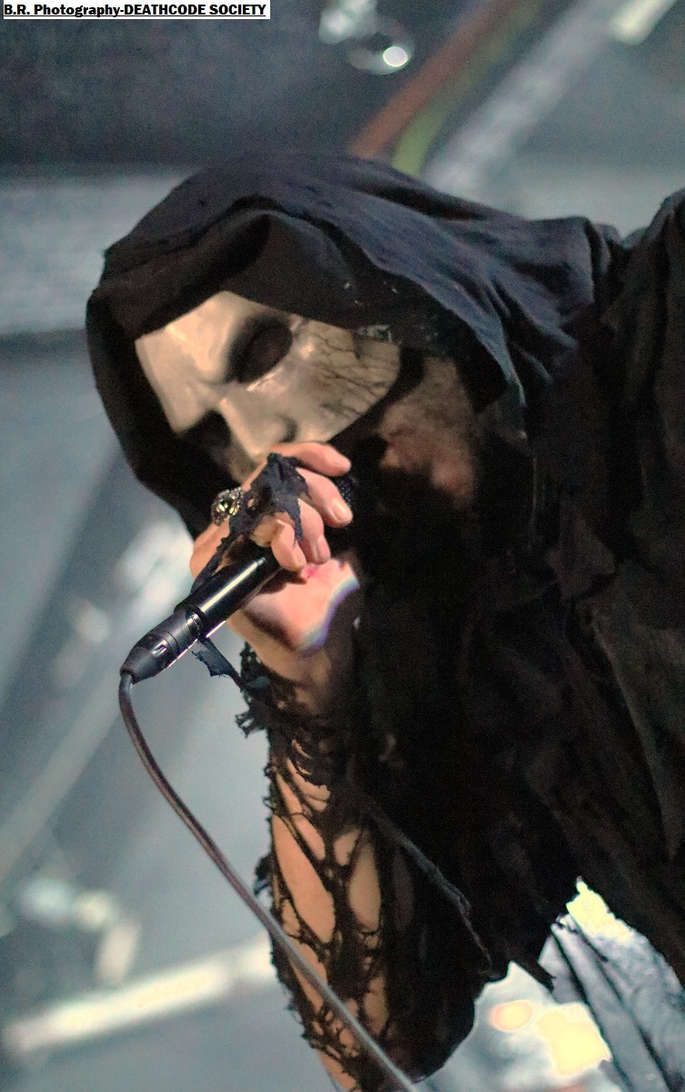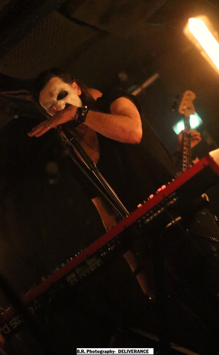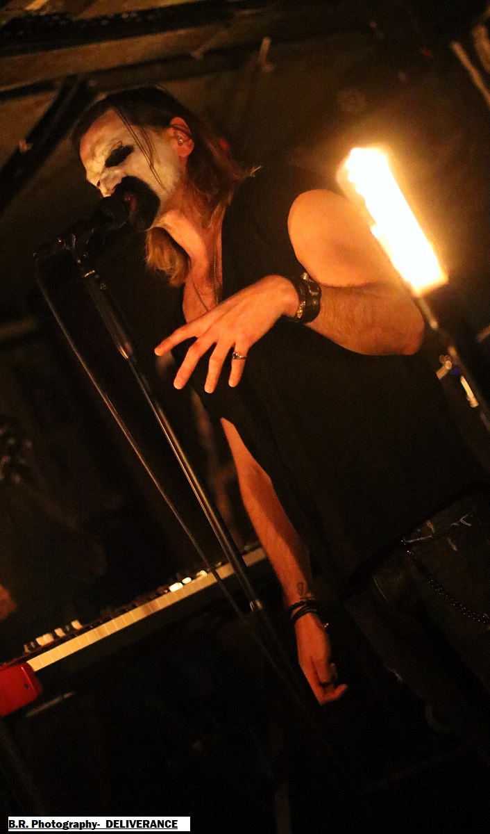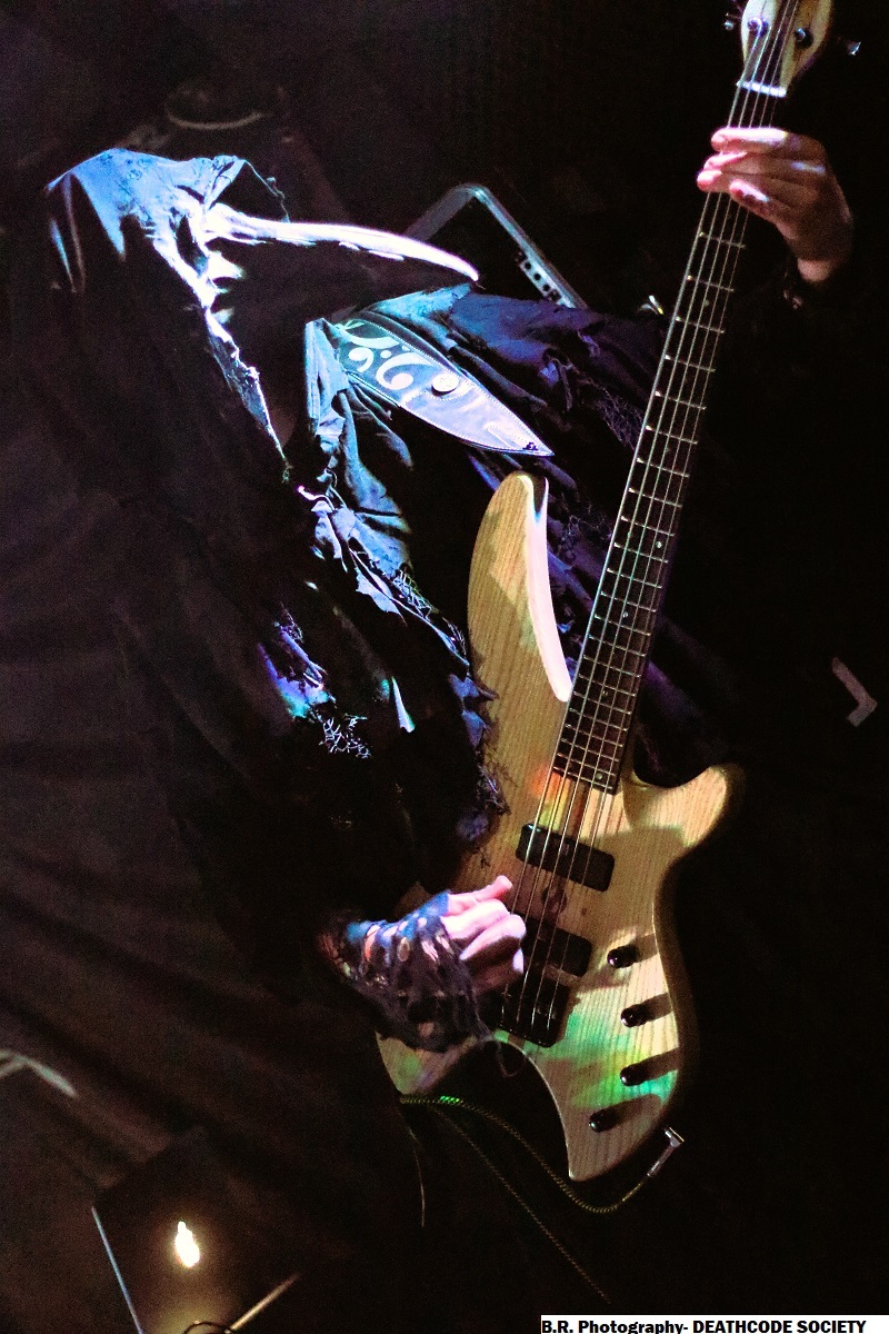 C'est DELIVERANCE qui se présente à nous en premier avec des musiciens cachés dans la pénombre entre candélabres électriques faiblement lumineux. Alors la soirée s'annonce bien sombre, c'est la « Fête des Lumières Éteintes » en somme. Deliverance navigue sur les eux troubles et marécageuses d'un black ancré de par ses racines dans un sludge boueux sur des riffs lents et lancinants. C'est chaotique à souhait, ça nous prend à la gorge et ça ne nous lâche plus, nous avons du, mal à respirer dans cette atmosphère étouffante. Du coup nous entrons dans un monde, certes old-school, mais aux avancées modernes, il fallait oser. Pour aller plus loin après ce concert bien enlevé je vous invite à vous pencher sur leur discographie, « CHRST » (2017), « Holocaust 26:1,46 (2019) et Neon Chaos in a Junk Sick Dawn (2022), Les haut-savoyards de DEATHCODE SOCIETY prennent la suite dans le bleuté d'une lumière froide et glacée. Fondé rn 2009 cette entité maléfique a enregistré deux albums à 8 ans d'intervalle, « Eschatonizer » en 2015 et « Unlightenment » en 2023, le groupe ayant peaufiné ses compositions. Des titres plus personnels s'écartant de leurs inspirations allant de Emperor à Dimmu Borgir en passant par Septicflesh. Ce soir, derrière leurs masques inquiétants ils vont nous donner un live bien maîtrisé, bien noir et bien épique dans des envolées souvent brutales mais néanmoins symphonique en fond d'écran. Ce fus donc bien majestueux malgré un son, celui des guitares notamment, un brin brouillon par moments. Bref, Deathcode Society se révèle puissant en live et nous aimons bien leur aventure, amen ! Les sudistes d'ACOD débarquent maintenant sur les planches avec la ferme intention de nous faire déguster en live des titres de leur nouveau « méfait » de 2024 intitulé « Versets Noirs », mais pas que ! En effet depuis « Point Zero paru en 2009 jusqu'à ce nouvel album, les Marseillais n'on t pas chômé en enregistrements et concerts. Et ce soir ça commence fort avec « May This World Burn » qui arrache en live. Leur black/death épique, mélodique mais agressif et vénéneux va encore une fois mettre tout le monde d'accord et nous ensorceler avec une puissance décuplée, une présence mortelle de tous les instants. Et pour souligner leur progression dans les méandres d'une brutalité aux mélodies acides, le groupe nous gratifiera d'une reprise bien sentie du titre « Black Trip » de Samael. Au final ,Acod gravit un a un les échelons d'une certaine reconnaissance dans le paysage maudit d'un black/death à la française ! Merci donc à Metallian Prod et au Rock n'Eat pour cette soirée noire comme de l'encre. Merci aux trois entités maléfiques qui ont hanté les lieux dans une ambiance passionnée, mélancolique et violente à la fois ! |