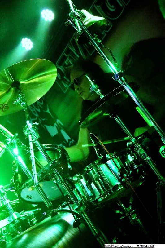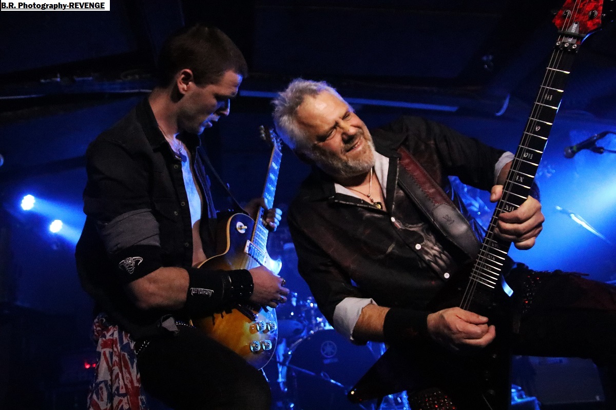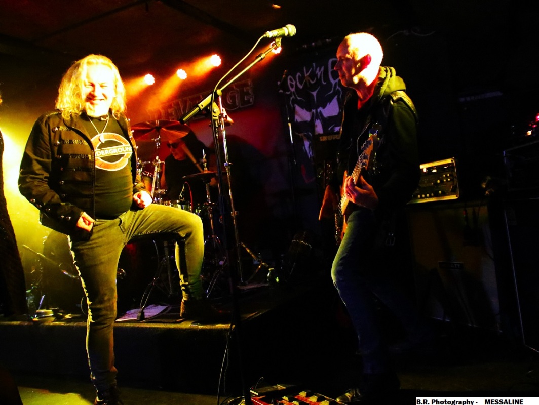 C'est toujours un plaisir non dissimulé d'apprécier en live MESSALINE, d'ailleurs leur dernier EP en date, un EP live intitulé « Braconniers du Silenceé » a accentué encore une fois la notoriété des Bressans. Et ce soir nous allons déguster entre autre pas mal de nouveaux titres qui figureront dans leur prochain album. Mais je tenais à le préciser, dans leur set-list nous aurons droit à une reprise du groupe des 70's Les Variations qui à l'époque avaient défrayé la chronique en France mais aussi aux « states ». Alors ce soir sur scène Messaline se déchaîne, Messaline c'est une affaire de musiciens rodés au rock puissant mais très inspiré de par les textes proposés. Et, cerise sur le gâteau, solo de guitare et solo de batterie viendrons pimenter leur set. Merci Messaline vous revenez quand vous voulez, on aime ! Si avec Messaline le public était resté relativement discret et plutôt attentif en fait , ce ne sera pas le cas pour REVENGE Origin qui va mettre le feu aux poudres à l'aide d'un hard-rock, heavy-metal musclé mais festif en diable. Car oui, Revenge parcours l'hexagone depuis plus de 20 ans et défonce tout sur son passage avec doigté SVP et une bonne dose d'humour aussi . Résultat, Revenge met dans sa poche le public du Rock n'Eat d'entrée de jeu et fera chanter plus d'une et plus d'un c'est sans appel ! Sur les planches ça part dans tous les sens sur des rythmiques plombées et personne ne peut rester figé à l'écoute par exemple de « Set my Heart on Fire », « Handle me With Care », « Wild, Wild, Wild » et autre « Keep the fire Burning » et « I Just wanna Rock », ce dernier titre qui nous sera « resservi » en fin des rappels afin de maintenir l'ambiance chaude dans le Rock n'Eat. Une ambiance Rock n'Roll évidemment poussée à son summum cela va de soi, amen ! Merci donc aux organisateurs de cette soirée animée par deux formations incontournables que nous aimerions revoir plus souvent en live. Merci pour l'accueil du Rock n'Eat toujours au top niveau. |