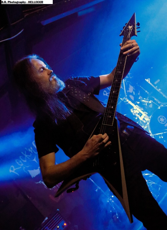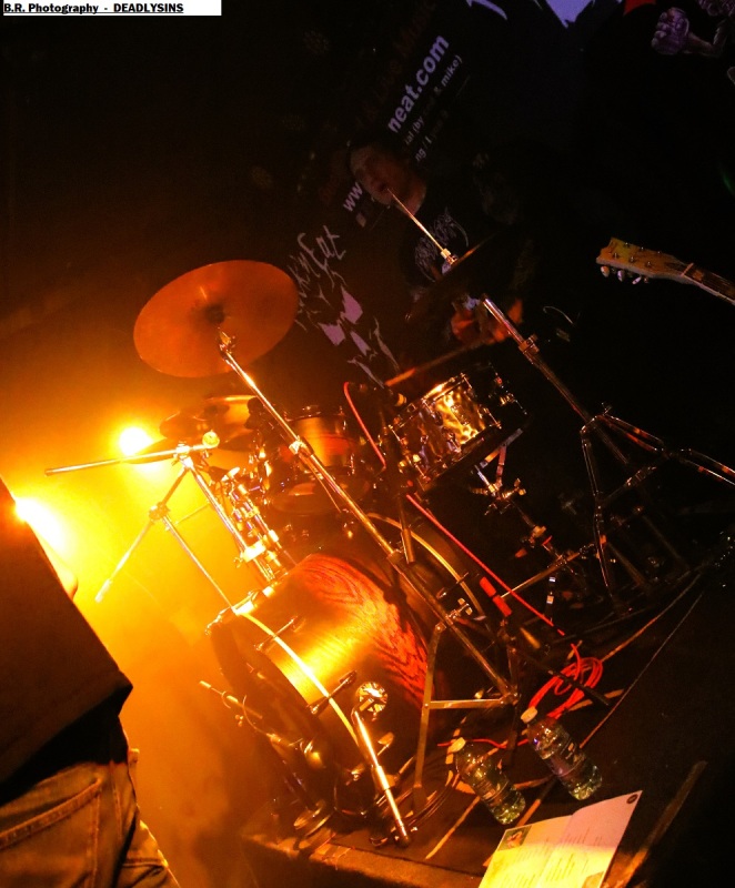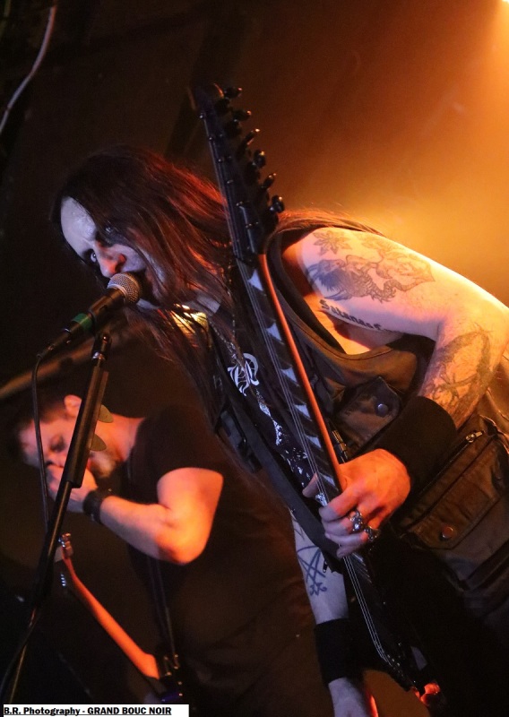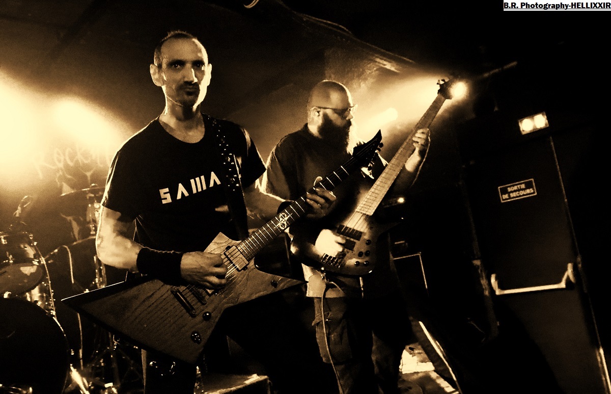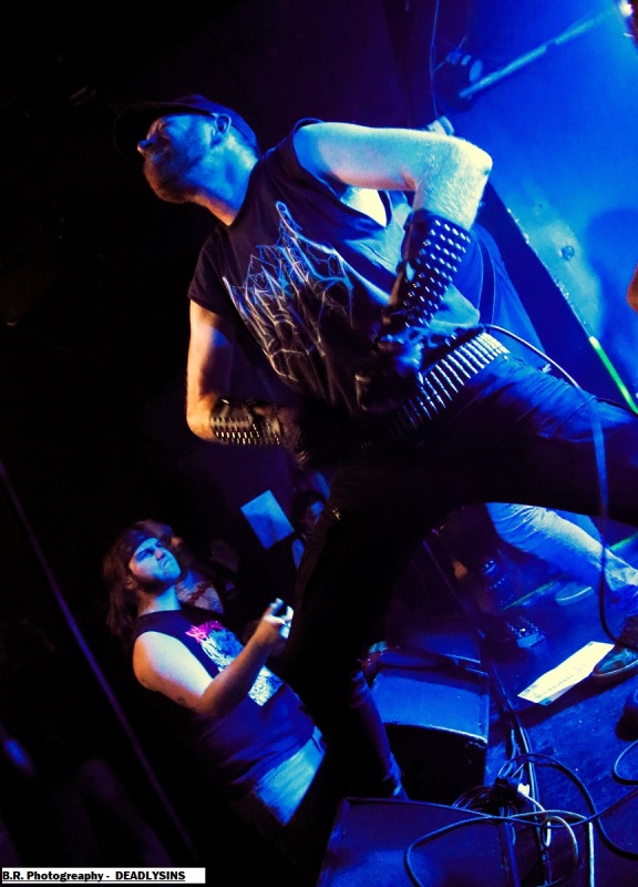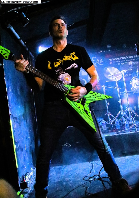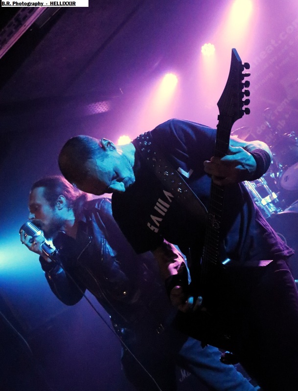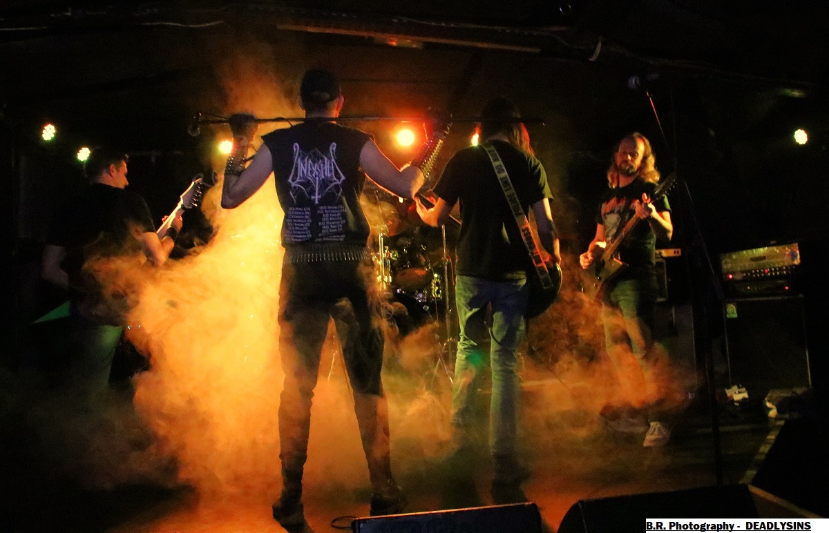 En effet, nous allons déguster dans tous les sens du terme les envois brutaux des Lyonnais de DEADLYSINS et des Grenoblois d'HELLIXXIR et de GRAND BOUC NOIR, alors musique ! Et quelle musique avec les Grenoblois du GRAND BOUC NOIR qui, à l'aide d'un nouveau line-up, nous invite à le suivre sur la route 666 ,avec perte et fracas diabolique. C'est malsain au possible ce mix réussi de thrash/black/death et plus si affinités. Donc, d'entrée de jeu la soirée est bien lancée dès 20heures 30 par ce quatuor qui fait parler la poudre dans une noirceur assumée qui nous prend aux tripes. Alors fatalement nous avons succombé à leur prestation qui en a surprit plus d'un de par cette offrande bien sentie au malin, amen ! Du black/thrash au thrash/black il n'y a qu'un pas que nous franchissons allègrement avec la venue sur scène d'HELLIXXIR originaire de l'Isère voisine qui nous emmènent eux-aussi sur les chemins « tortureux » de leurs compositions complexes et alambiquées. Ici, pas de thrash « rentre dedans », mais un ,thrash faisant la part belle aux tricotages guitaristiques dans des ambiances sombres propres au black-metal. Leur set- list principalement axée sur des titres de leur album de 2019 « The Black Fortress » nous a proposé aussi des compositions extraites de « Corrupted Harmony » de 2012 pour un voyage intemporel dans leur discographie. Malgré un début de set un peu laborieux, Hellixxir a ensuite mis dans sa poche le public du RNE, merci les gars ce fus un plaisir de vous apprécier de nouveau en live ! Les Lyonnais de DEADLYSINS ne sont pas venus ce soir dans notre club préféré pour « sucrer les fraises » mais pour nous présenter leur nouvel album intitulé « Age of Revelation » qui vient de paraître il y a peu de temps chez Adipoocère Records. Release party donc, mais surtout l'envie de ces musiciens burnés au thrash de nous brutaliser les neurones et le cou sur un rythme d'enfer. Avec un glorieux passé à son actif ces inconditionnels du brutal thrash qui tâche semblent vouloir bous rappeler à leur bon souvenir, et ça marche ! Inutile e vous dire que dès le premier envoi le public présent a tout défoncé dans les sous-sols du quai Arloing à Lyon. Si sur album DEADLYSINS nous accroche les neurones et nous donne des fourmis dans tout le corps, sur scène le groupe nous fait bénéficier d'une énergie incomparable et d'une présence thrash »lame de rasoir » sans équivalent dans le style. Alors ce soir dans un RNE en ébullition nos cinq gaillards ont allumé la lanterne rouge clignotante appelée « destruction totale » et envoyé une sauce thrash pimentée et métallique en diable. Et « Zombie », « In Plaise », « Anticlockwise », « Circle Pit », « Fallin' » et autre « Covid 666 » ont fait leur œuvre de destruction massive avant les rappels de rigueur, aargh ! Ce fus géant tout simplement, nous avons adoré, et vous ? Merci aux organisateurs, au Rock n'Eat, au trois formations en lice et bien sûr au public pour l'ambiance instaurée. |