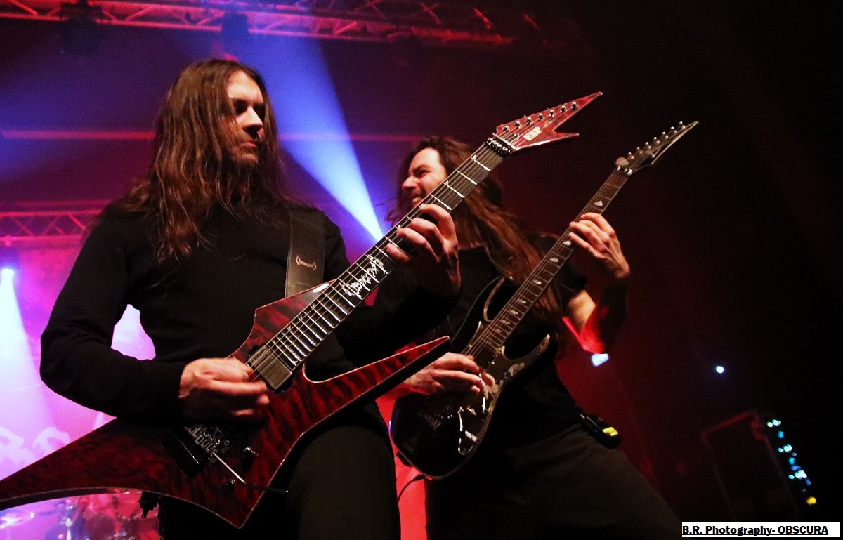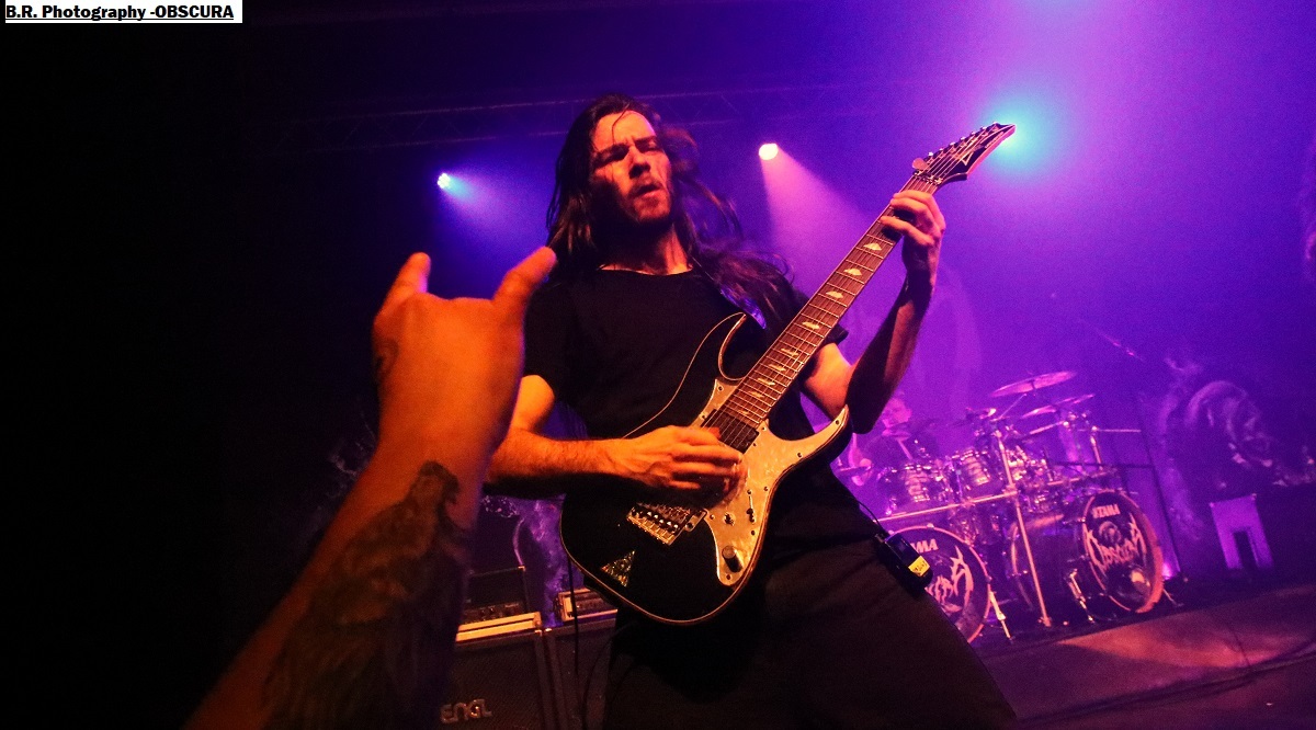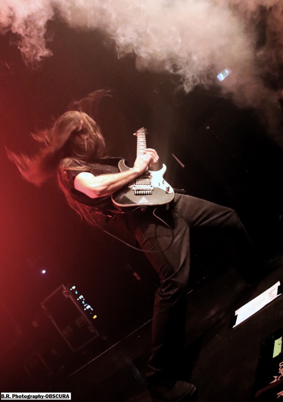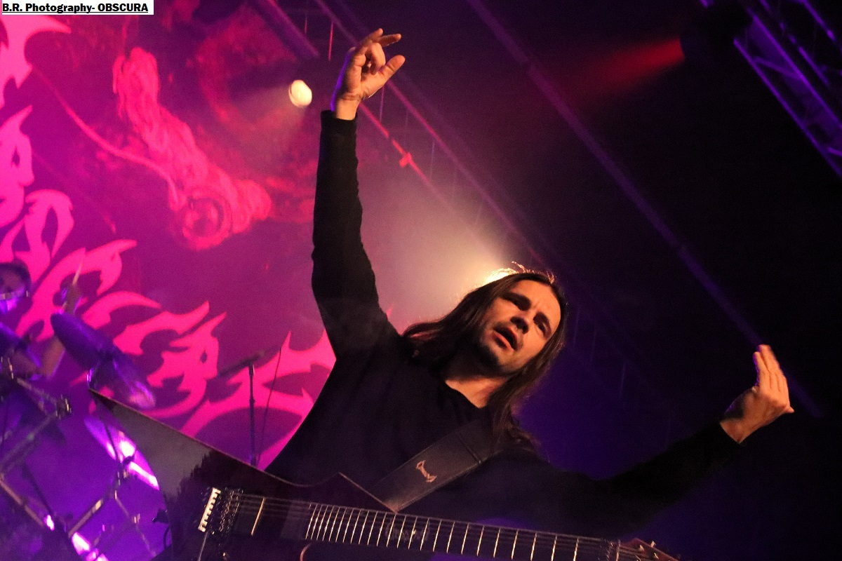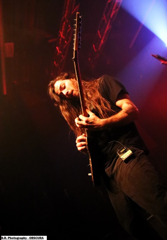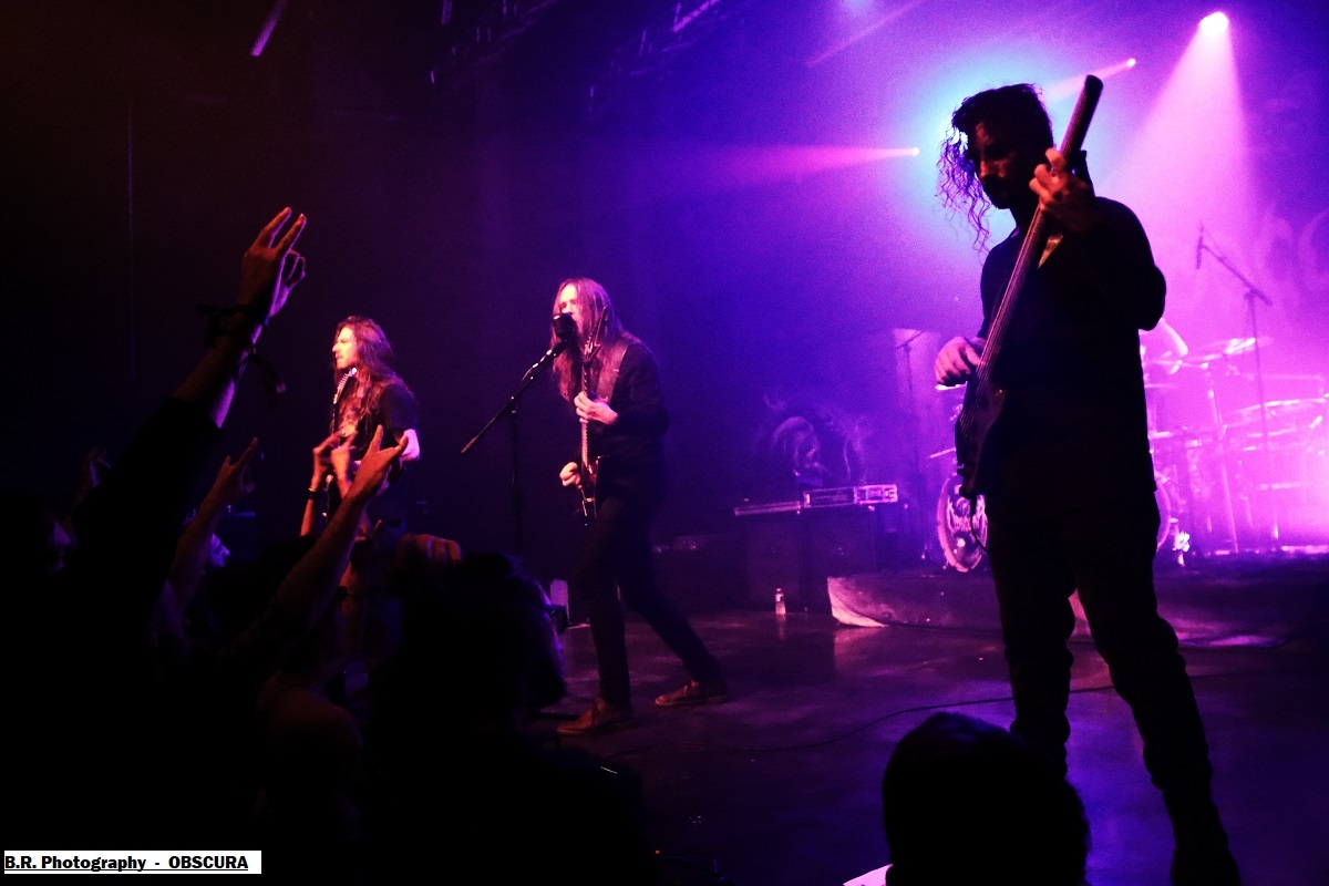 Bon , vous allez me dire encore une soirée typée death-mertal après la Rayonne il y a deux jours de cela. OK, mais cette fois-ci ce sera plutôt du death technique qui devrait remplir notre matière grise. Il est 20 heures à l'horloge de Rillieux et l'on débute avec SKELETAL REMAINS de Los Angeles, qui vont envoyer du lourd, du très lourd même avec en fond d'écran un batteur hors norme il fallait le signaler. Ce groupe nous offre des titres de leur 5ème opus intitulé « Fragments of the Ageless » mais pas que ! Leur death-metal nous rappelle quelque part celui pratiqué par Asphyx, Death et autre Pestilence, du classique donc mais avec des déviances sinistres et mortuaires où les guitares arrivent à nous ciseler la cervelle. Ambiance donc, dans ce Totem attentif à leur prestation, certains se rappelant leur prestation donnée au Hellfest en 2016. Alors nous avons apprécié leur venue en terres Lyonnaises et ce fus un très bien. Avec les Bordelais de GOROD ce sera des envolées à la Coroner voire Carcass mais en plus diversifié. Je m'explique, Gorod n'a pas peur de naviguer dans une galaxie particulière où la technicité se fourvoie dans des envies inspirées par le jazz par exemple ou par le black et le thrash. Alors en live ça part dans tous les sens, dans le public aussi, garez-vous ! Mais Gorod c'est quand même du brutal ne vous méprenez pas, inutile de résister à ses assauts. Cette formation qui a de la « bouteille » avec plus de 20 années d'existence et une imposante discographie à son actif va nous emmener illico sur ses chemins tortureux, œuvre de fous furieux carrément. Mission accomplie ce soir, je pense que le groupe a apprécié sa prestation de cinglés, nous aussi d'ailleurs ! Ce 7 Février 2025 est la date de sortie du nouvel opus « A Sonication » de nos cousins Germains Bavarois OBSCURA, mais c'est aussi la date de ce concert donné O Totem de Rillieux ce Vendredi bien métallique. On ne présente plus ces maîtres du death technique qui maîtrisent à fond leur sujet depuis 7 albums parus en 20 ans d'existence qui ont marqué de leur empreinte indélébile la scène extrême Européenne entre autre. Et ce soir la démonstration sera hors norme avec un sens du riff incroyable dans des soli monstrueux où viennent s'incruster une mouvance thrash accrocheuse et une déviance post-balack metal de circonstance. Bref, de « Forsaken » à « Septuagint » en passant par « Akroasis, « The Sun Eater » et « A Valediction » nos oreilles ont été saturées de sons venus d'ailleurs, d'une planète où résident notamment Meshuggah, Cynic ou encore Necrophagist, amen ! Merci encore une fois à Sounds Like Hell Production pour son invitation et merci aux 3 formations en lice qui ont transformé le Totem pour un soir en temple du metal extrême ! |
