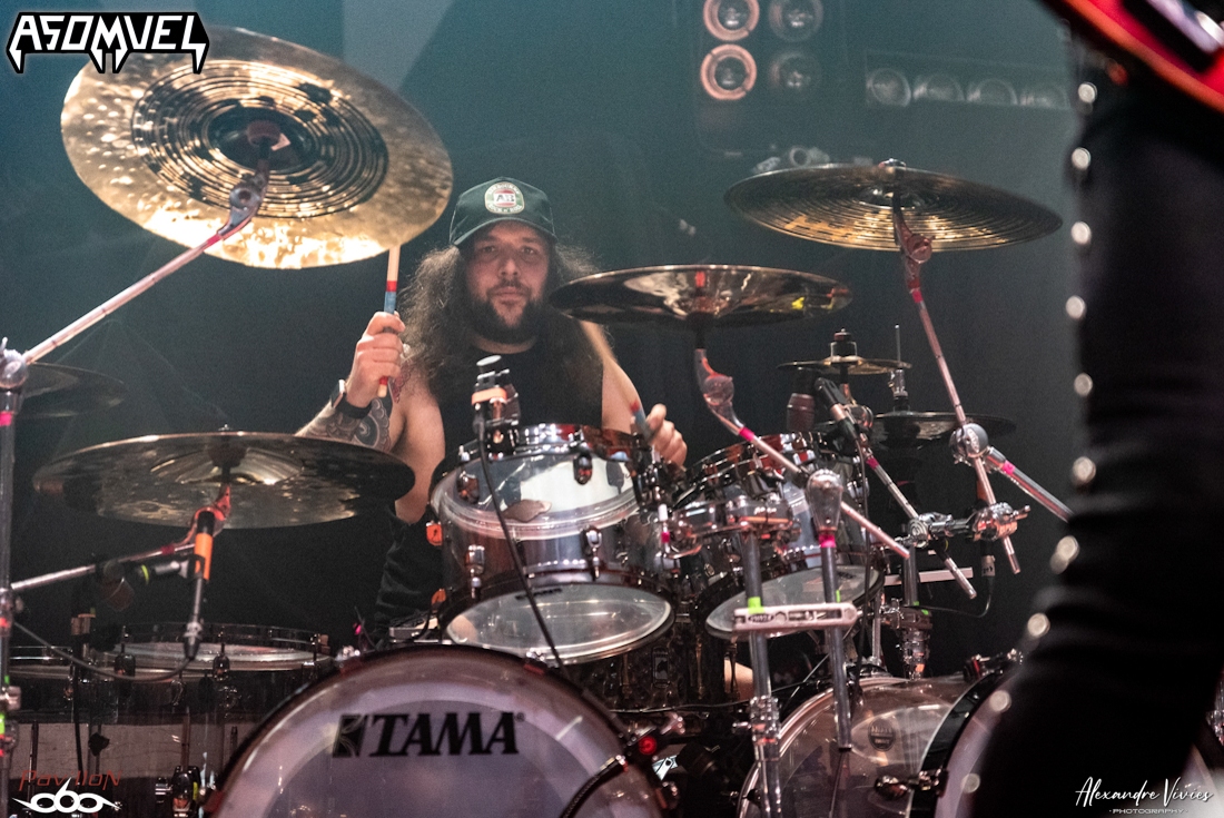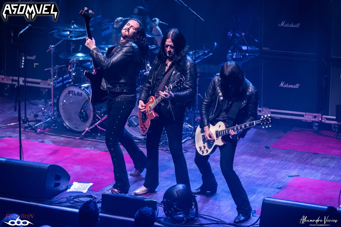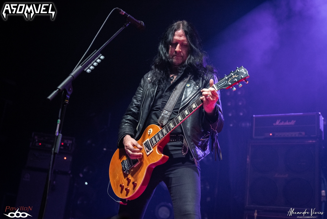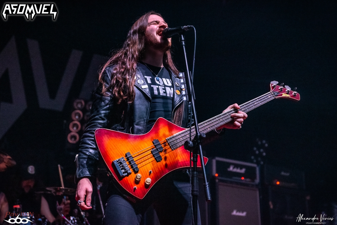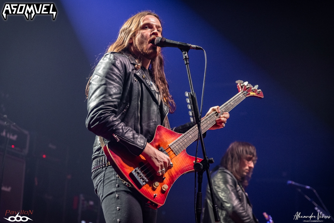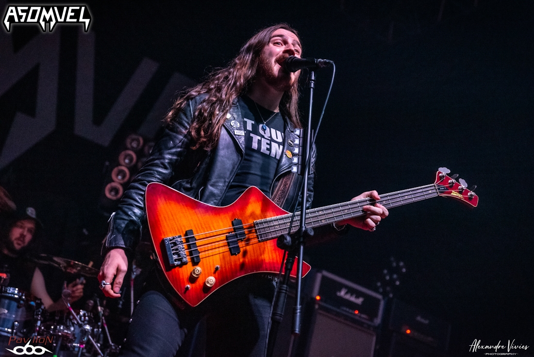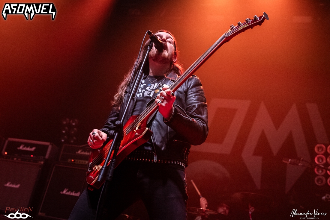 C'est aux britanniques d'Asomvel qu'est confiée la mission de chauffer tout ce beau monde, assoiffé de gros son et qui trépigne d'impatience. Le groupe joue un speed metal à la Motörhead bon pour affoler le compteur de décibels ! Forts de leur nouvel album « Born to Rock’n’Roll » paru l’année dernière et auquel la part belle sera faite ce soir, les quatre musiciens ne mettent pas longtemps à susciter l’adhésion d’un public qui ne demande qu’à se décrasser les oreilles à coups de riffs gras et lourds. On est en plein dans le mille avec ce set hargneux et sans temps mort qui nous fait passer un super moment. Voilà la salle échauffée avec la manière et maintenant prête pour la tête d’affiche du soir ! Setlist Asomvel : - Louder & Louder - Born to Rock’n’Roll - Beware the Full Moon - Payback’s a Bitch - Outside the Law - Into the Fire - Stone Cold Stare - World Shaker - Luck if for Losers - Light ‘Em Up - The Nightmare Ain’t Over C’est dans la joie et la bonne humeur que le public attend l’entrée en scène des Australiens alors que résonnent dans la salle Iron Maiden et autres classiques, dont les refrains repris à tue-tête déclenchent déjà quelques mini pogos et vols de gobelets. La tension monte lorsque les lumières s’éteignent et le show démarre à toute allure avec « Ready to Rock » ! Les musiciens sont, comme à leur habitude, surexcités et bourrés d’énergie ; ça court et ça saute partout, y compris dans la fosse, immédiatement transcendée ! De « Runnin’ Wild » à « Boneshaker » sorti en 2019, tous les albums sont représentés et il n’est laissé place à aucun flottement. La communion avec le public est totale et la sécurité a fort à faire avec les flots de crowdsurfers qui déferlent incessamment vers la scène. Le frontman Joel O’Keeffe honorera sa traditionnelle traversée de la foule à dos de roadie sur « Girls in Black », offrant par la même à ses fans et pour leur plus grand plaisir l’indémodable douche à la bière. Classique, certes, mais toujours du plus bel effet ! Toujours dans le volet rafraichissements, « It’s All for Rock’n’Roll » est l’occasion pour Joel de sortir le « Lemmy’s bar » et la bouteille de Jack pour servir au groupe et au public quelques whisky-cocas en hommage à la légende. Les titres s’enchainent avec une énergie et une bonne humeur toujours intacte, côté musiciens comme côté fans ; c’est une véritable messe du hard rock qui est donnée devant des fidèles en liesse qui entonneront en chœur le fameux riff de « Ready to Rock » alors que le groupe s’éclipse quelques instants, histoire de nous offrir le plaisir de scander un rappel. Et c’est reparti ! « Live It Up » est une dernière occasion d’arroser la foule en faisant voler quelques gobelets à travers la salle sous de festives acclamations, avant de conclure cette superbe soirée avec l’hymne « Runnin’ Wild » et un parterre en délire. Quel concert ! Setlist Airbourne : - Ready to Rock - Too Much, Too Young, Too Fast - Back in the Game - Burnout the Nitro - Girls in Black - Cheap Wine & Cheaper Women - Breakin’ Outta Hell - It’s All for Rock’n’Roll - Stand Up for Rock’n’Roll - Live It Up - Runnin’ Wild Un très grand merci à Éloïse et RIFF X Regarts pour l’organisation du concert et la possibilité donnée de le couvrir, ainsi qu’au Bikini et à ses équipes toujours au top ! |